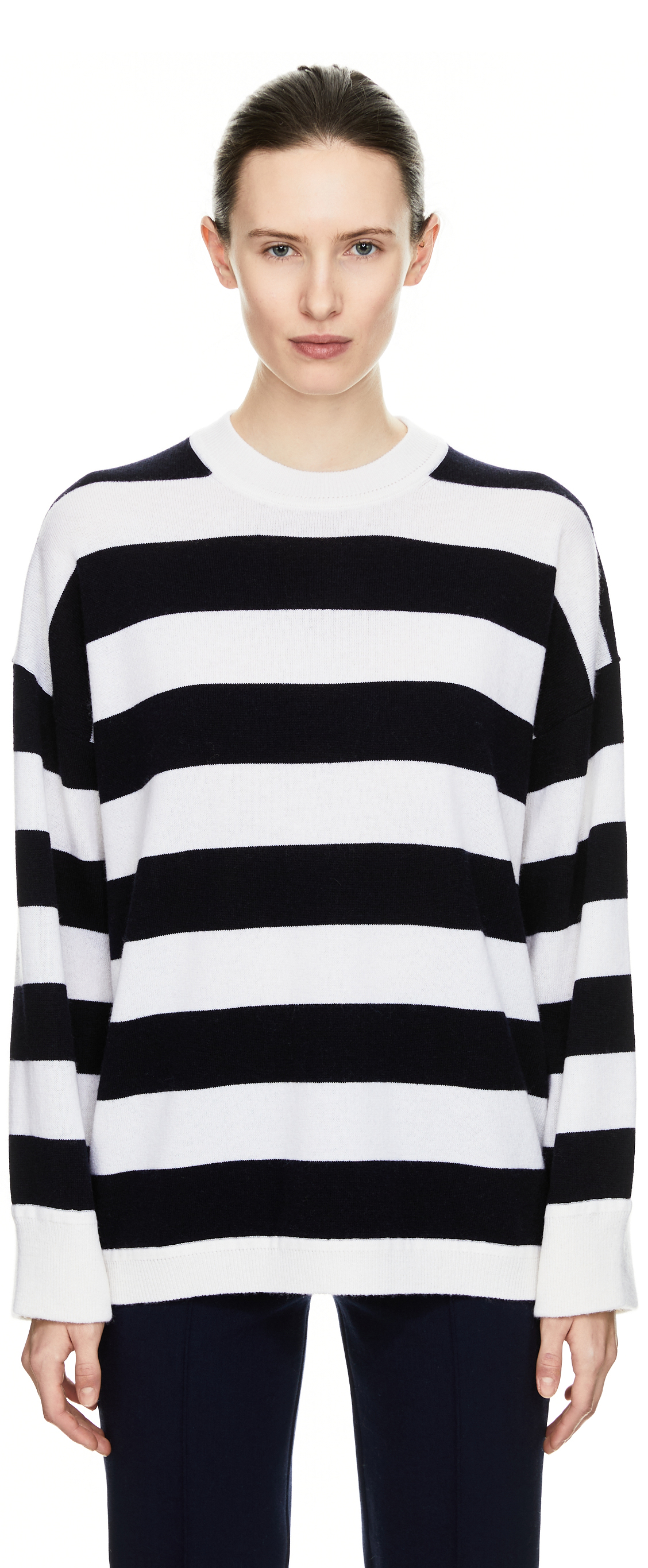 Dieser Pullover in Marineblau von Allude wurde aus einer hochwertigen Woll-Cashmere-Mischung gefertigt und besticht durch die Oversize Passform. Der Rundhalsausschnitt, die Rippstrickbündchen und die weiche Haptik vollenden dieses Modell.