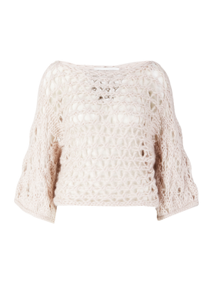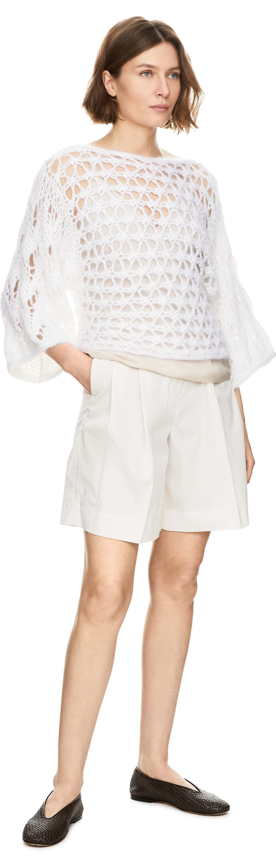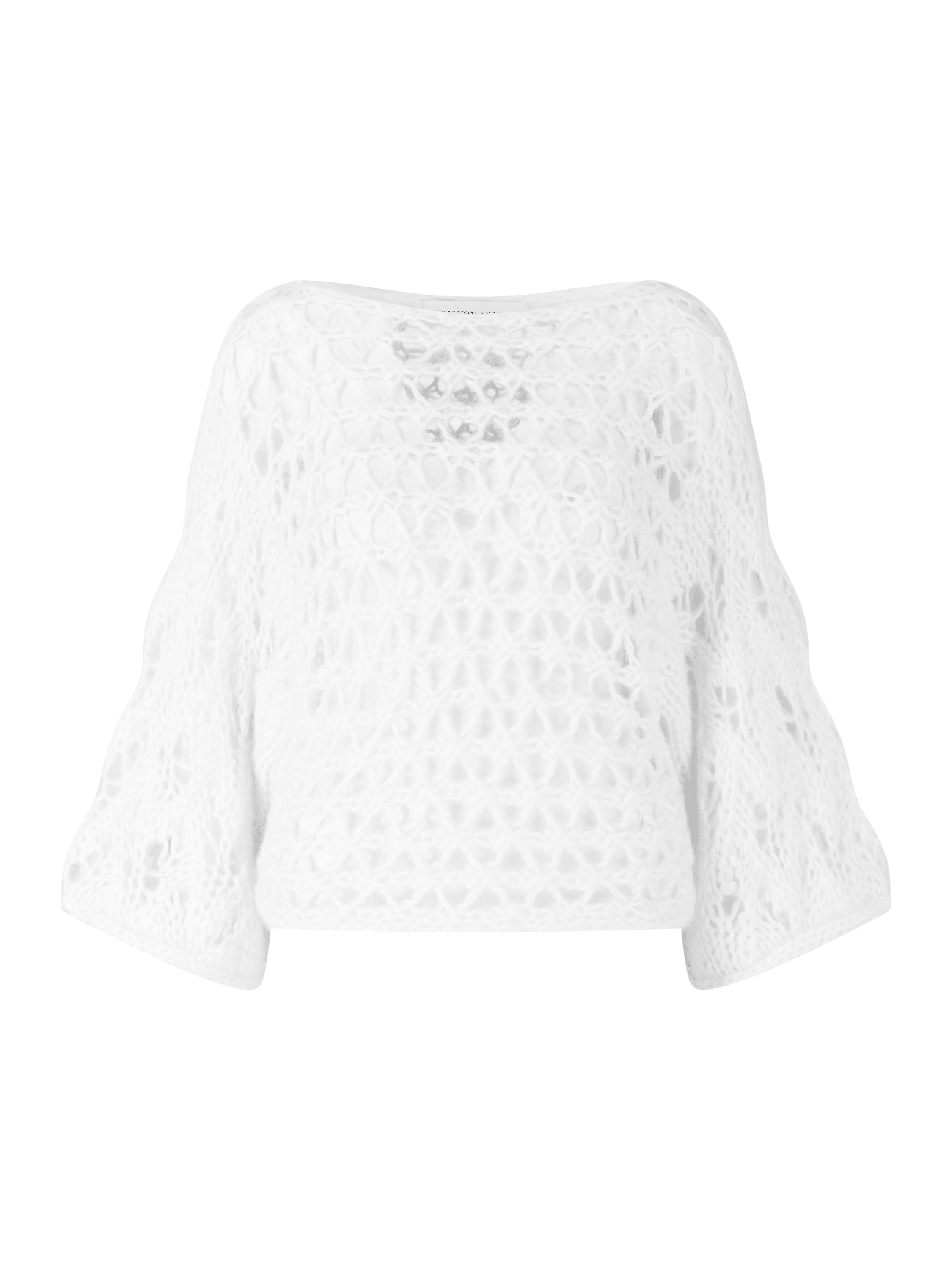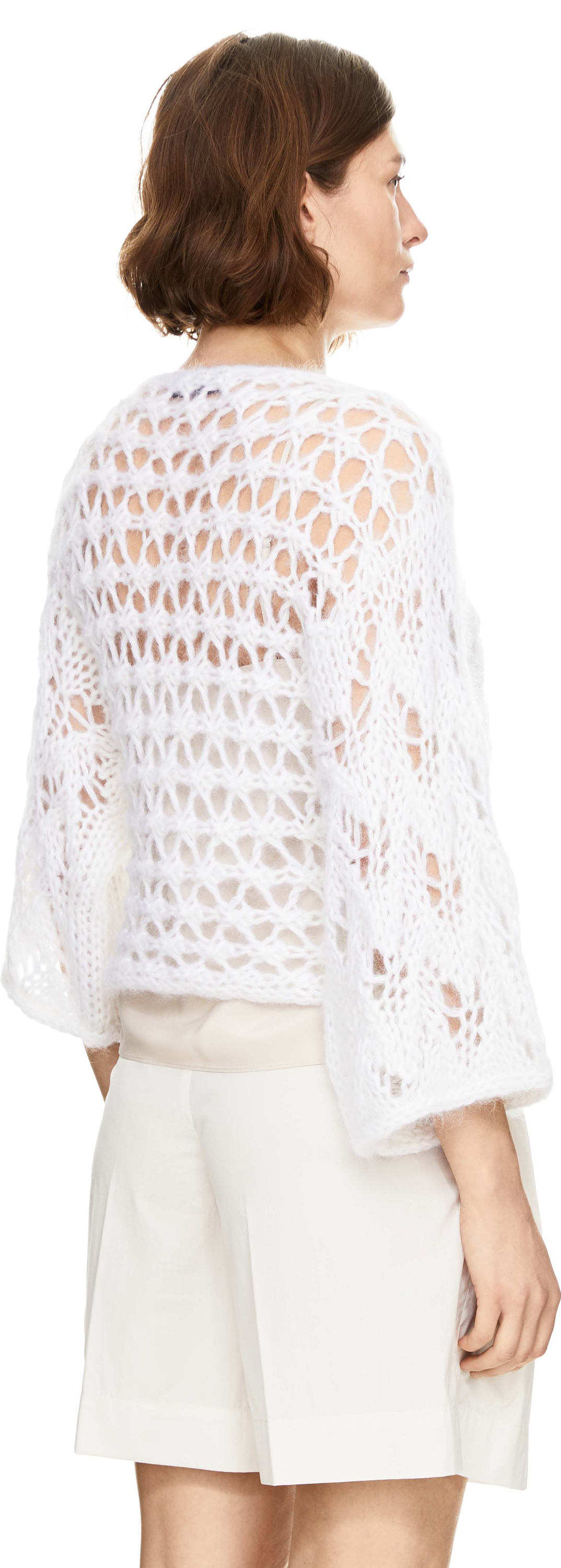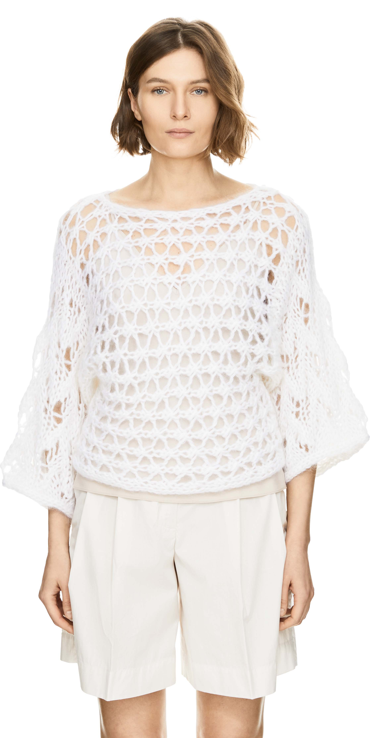 Der Pullover 'Levanto' in Off White von Iris von Arnim wurde aus einer hochwertigen Mohair-Seidenmischung gefertigt und besticht durch den verkürzten Schnitt. Der feine Handstrick, der Rundhalsausschnitt, der raffinierte Lockstruktur-Mix und die Raglanärmel verleihen dem Modell elegante Leichtigkeit und zeitlose Raffinesse.