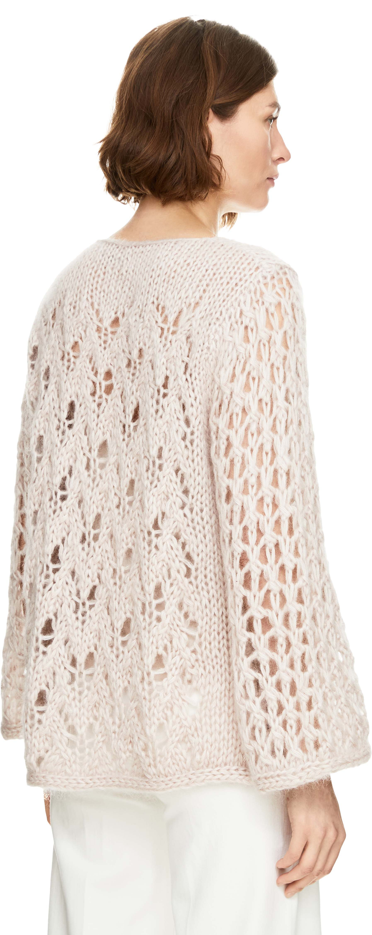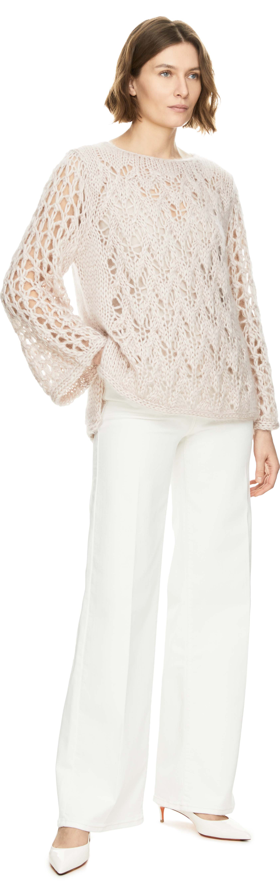 Der Pullover 'Lumeville' in Puder von Iris von Arnim wurde aus einer hochwertigen Mohair-Seidenmischung gefertigt und besticht durch die lässige Passform. Die Kombination aus Handstrick, Rundhalsausschnitt und offener, lockerer Struktur verleiht dem Modell elegante Leichtigkeit und eine besondere Textur.