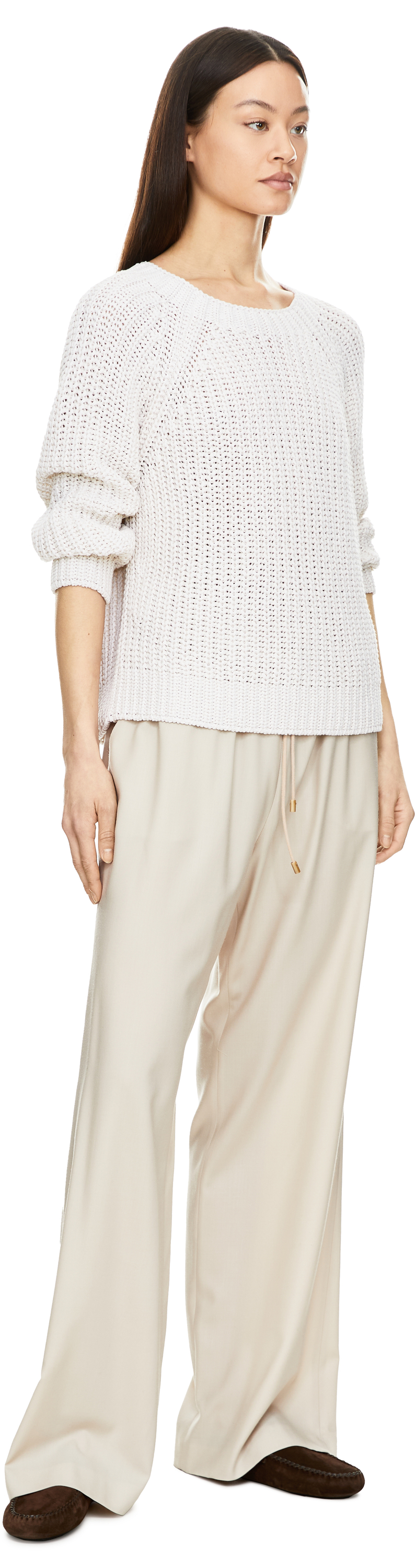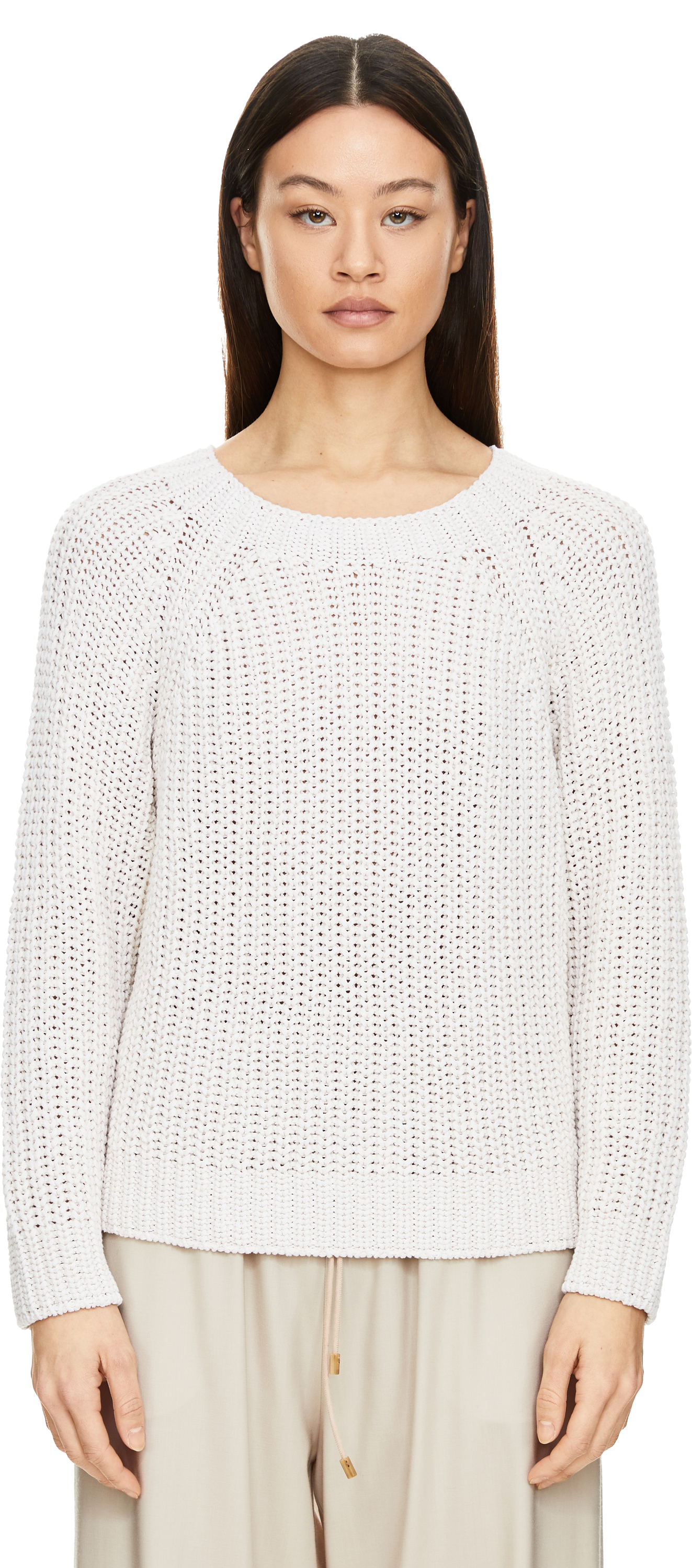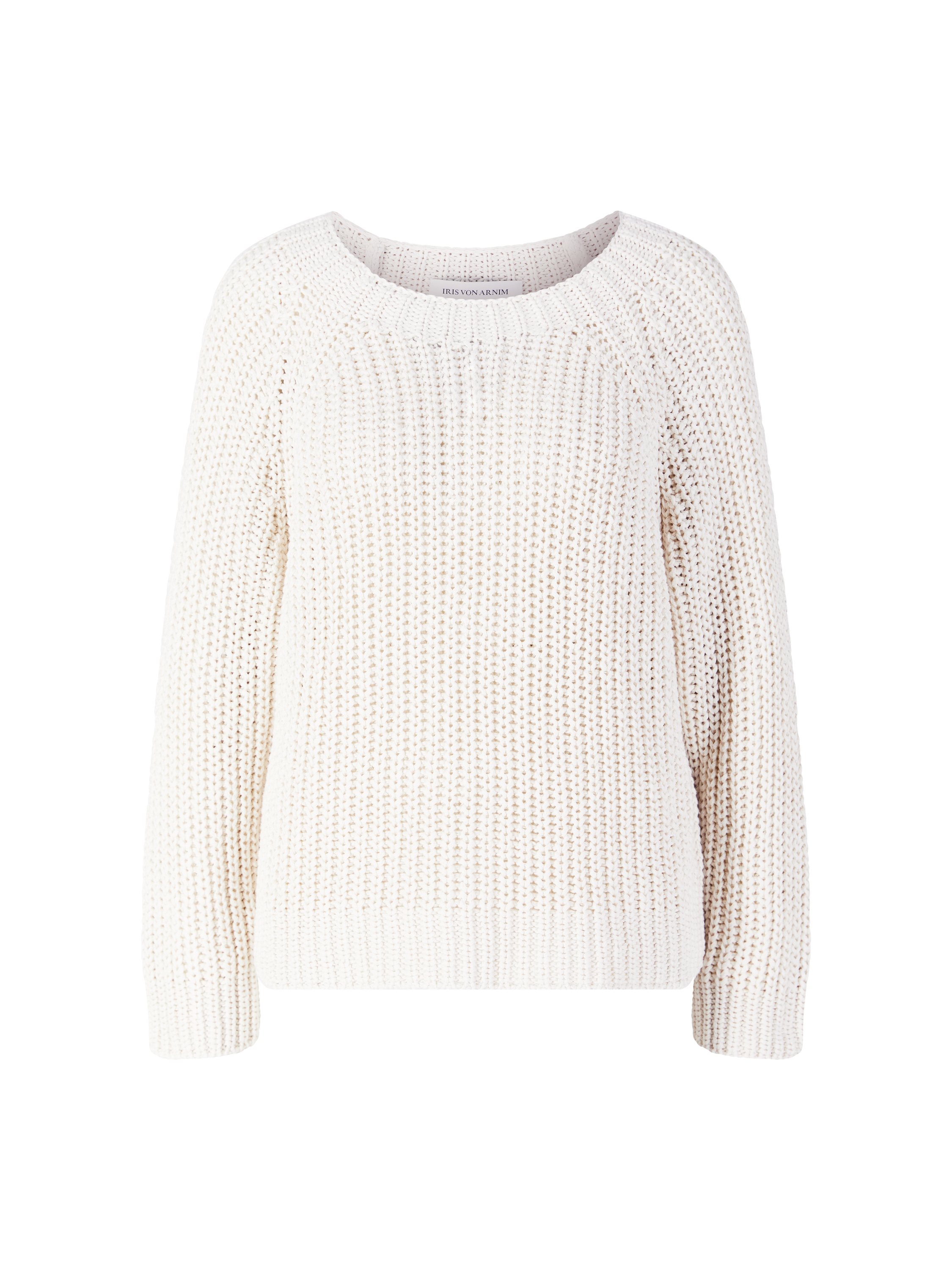 Der Pullover 'Aniva' in Off White von Iris von Arnim wurde aus einer hochwertigen Seiden-Leinenmischung gefertigt und besticht durch die weiche Haptik. Der Rundhalsausschnitt, die grobe Rippstruktur sowie der Rippbund an Saum und Ärmelabschlüssen verleihen dem Pullover eine elegante, zugleich moderne Silhouette.