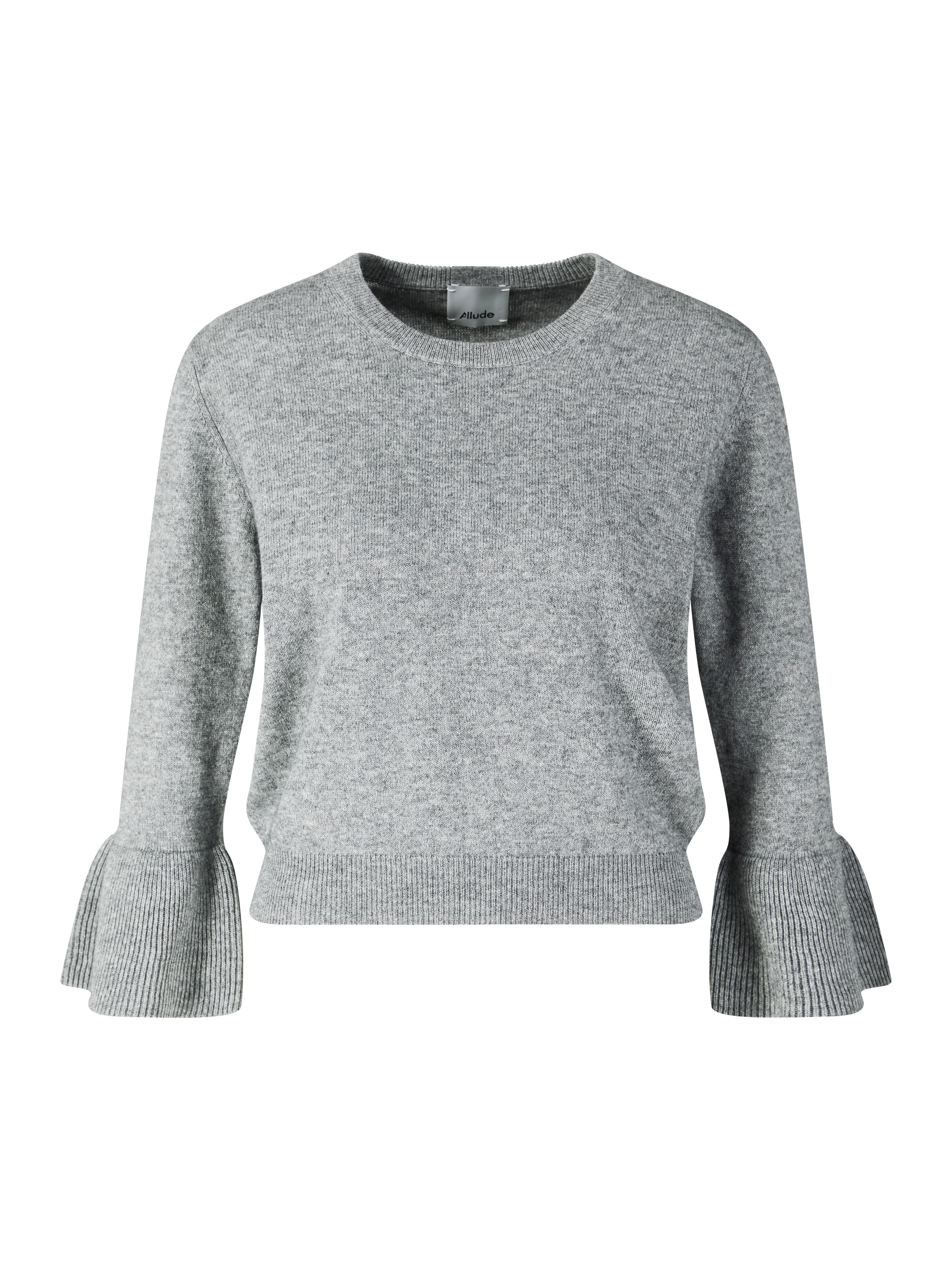 Dieser Pullover in Grau von Allude wurde aus einer hochwertigen Baumwoll-Cashmere-Mischung gefertigt und besticht durch das klassische Design. Der Rundhalsausschnitt, der Rippstrick, die weiche Haptik sowie die Glockenärmel verleihen diesem Modell seine besondere Note.