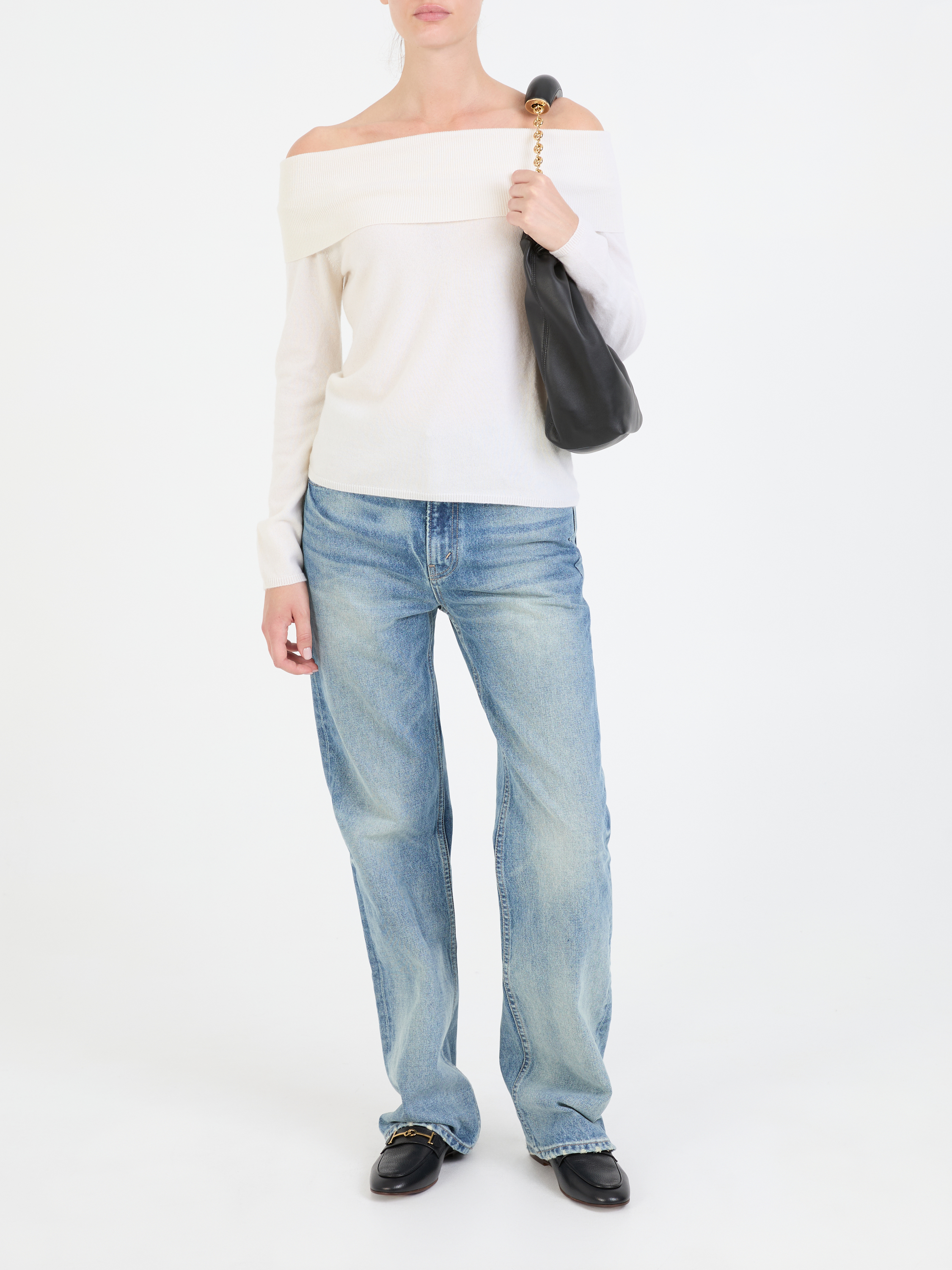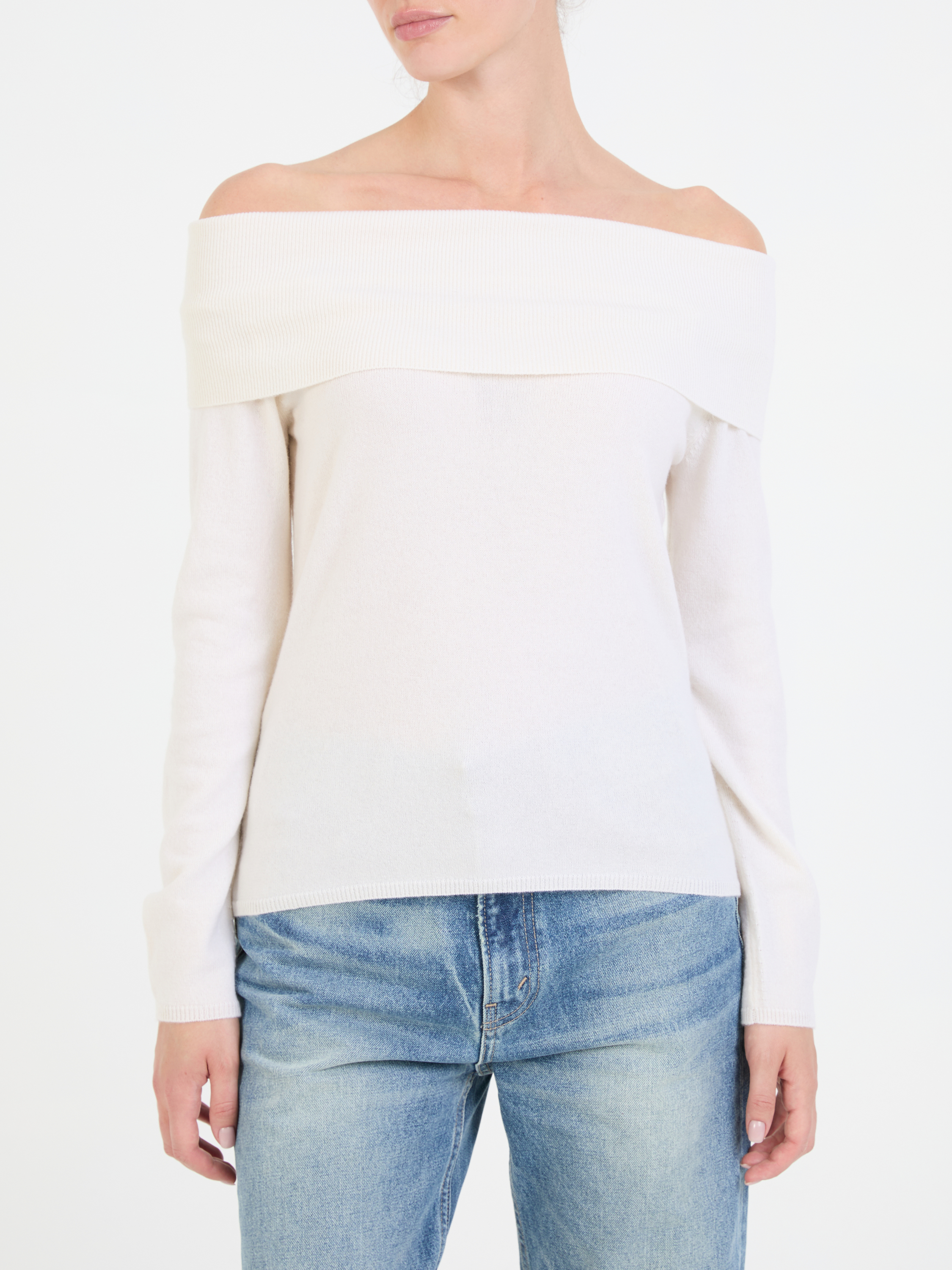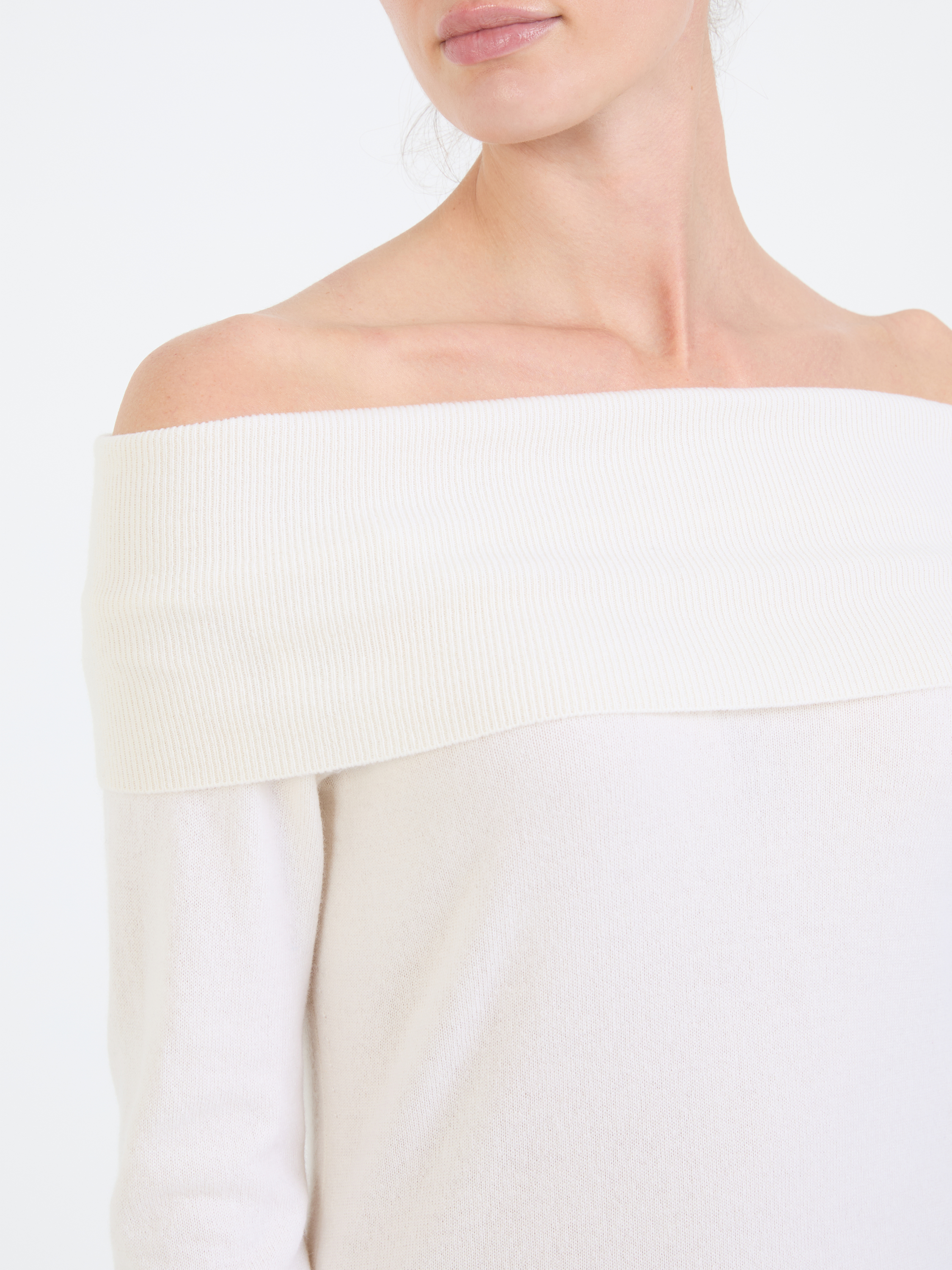 Dieser Pullover in Crème von Allude wurde aus hochwertigem Cashmere gefertigt und besticht durch den schulterfreien Ausschnitt. Die weiche Haptik und die körpernahe Passform vollenden das Design.