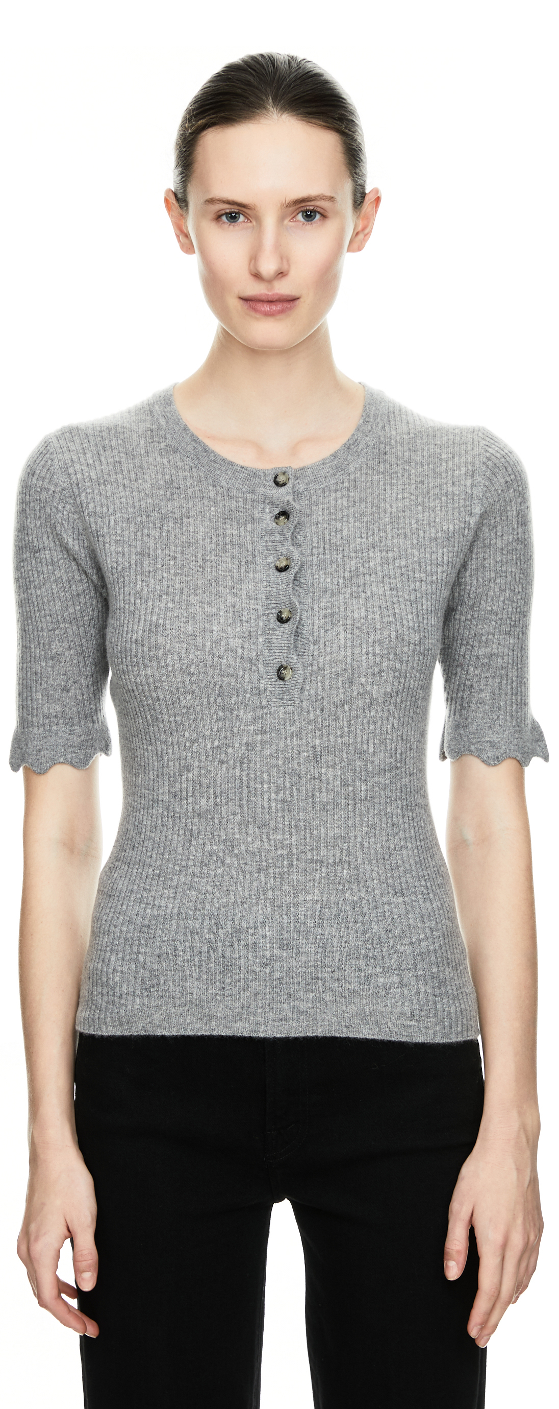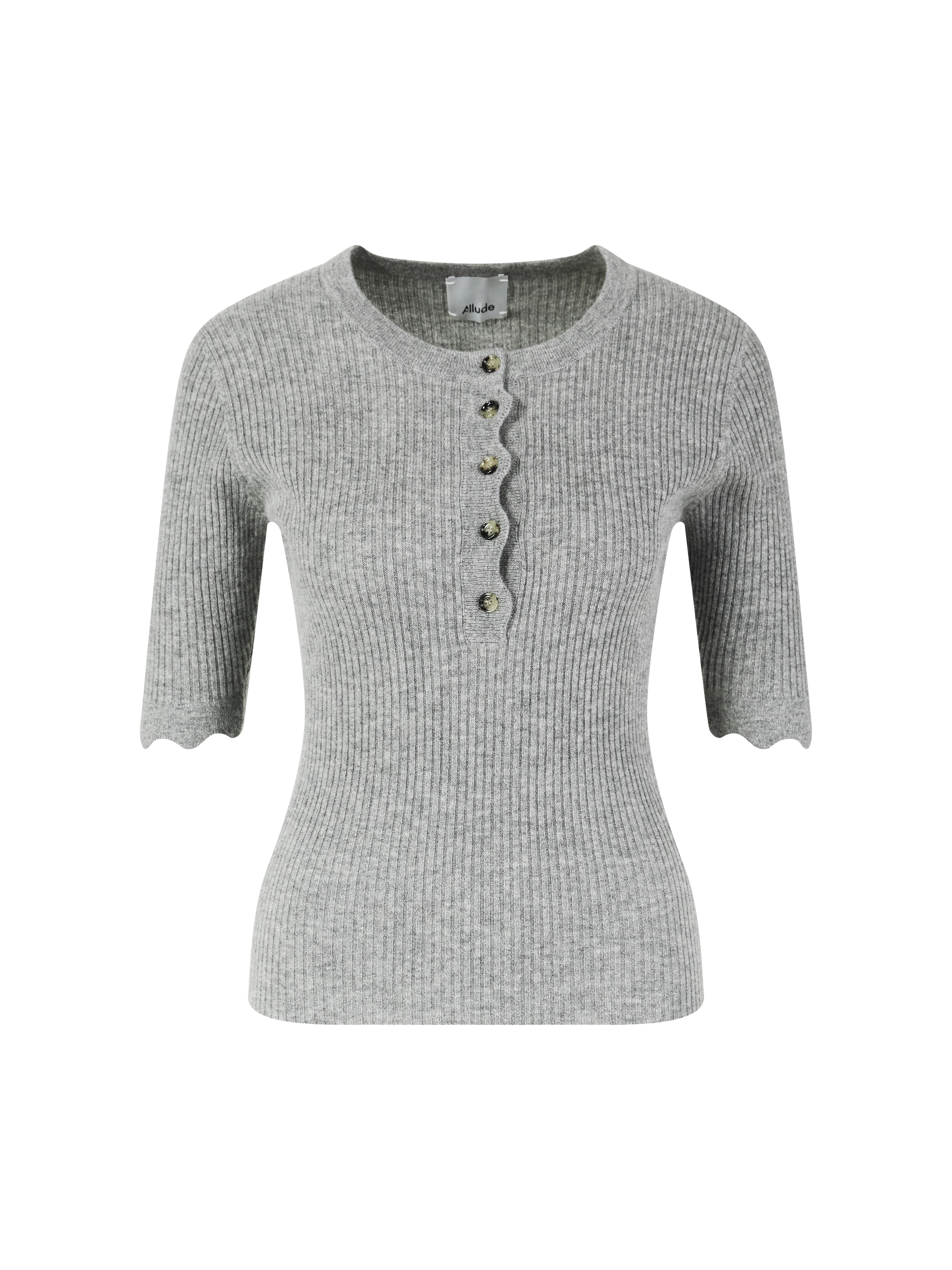 Der Pullover 'Wave' in Grau von Allude wurde aus einer hochwertigen Woll-Cashmere-Mischung gefertigt und besticht durch die weiche Haptik. Der geknöpfte Rundhalsausschnitt in welliger Optik sowie die 3/4-Ärmel zeichnen dieses Modell aus.