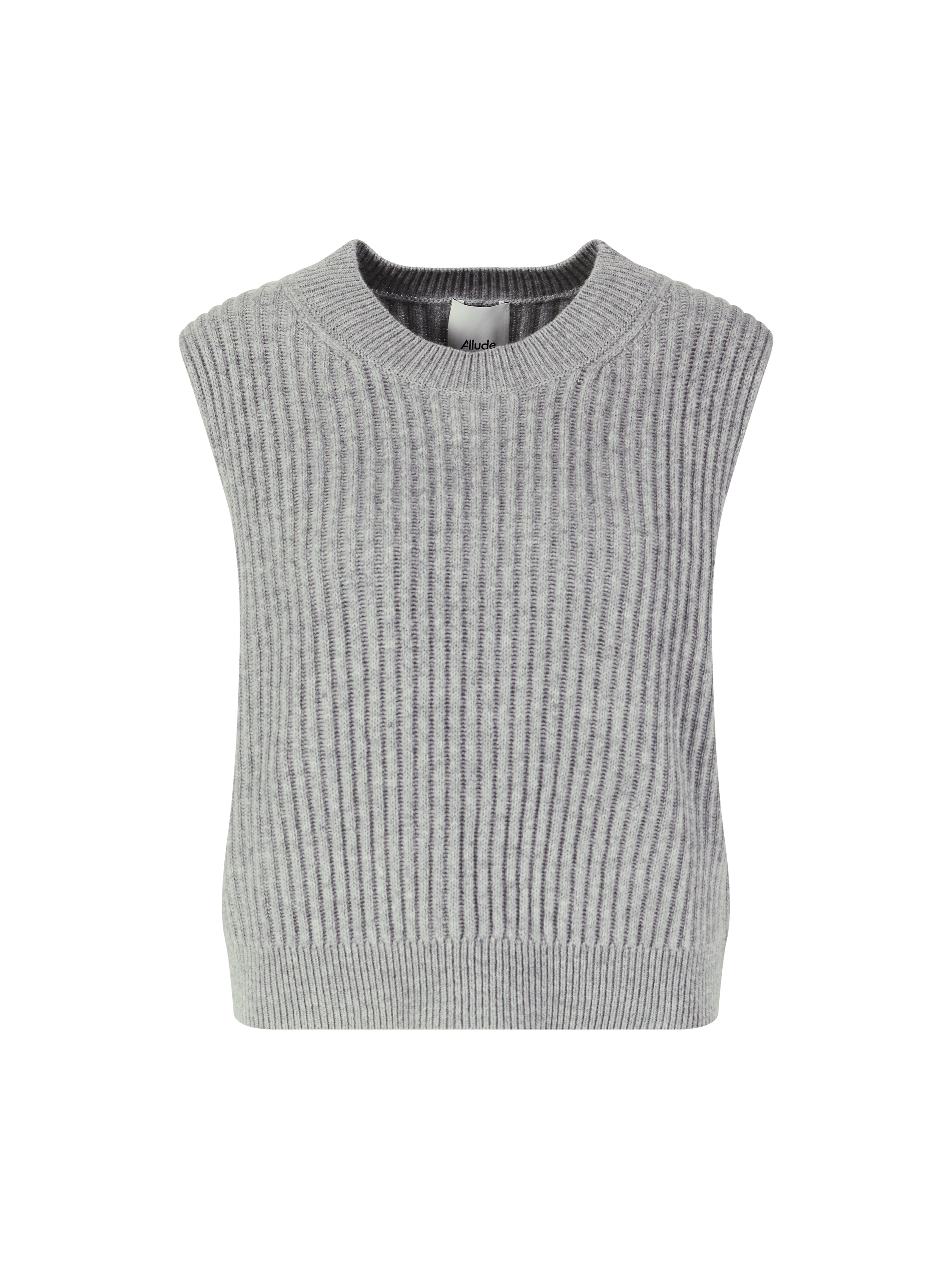 Dieser Pullunder in Grau von Allude wurde aus einer hochwertigen Woll-Cashmere-Mischung gefertigt und besticht durch den Rundhalsausschnitt. der Rundhalsausschnitt, die weiche Haptik sowie die oversized Passform sorgen für einen angenehmen Tragekomfort.