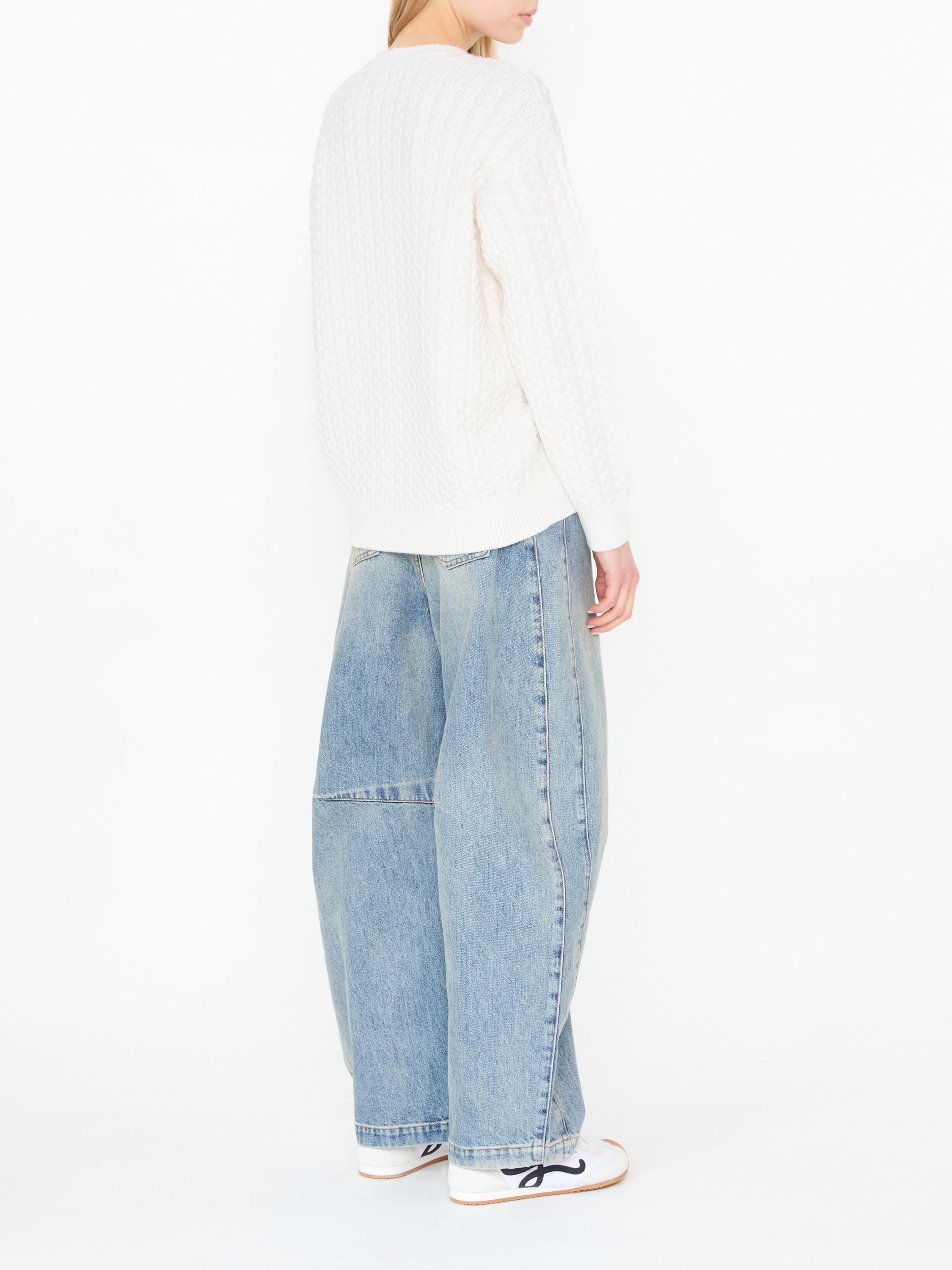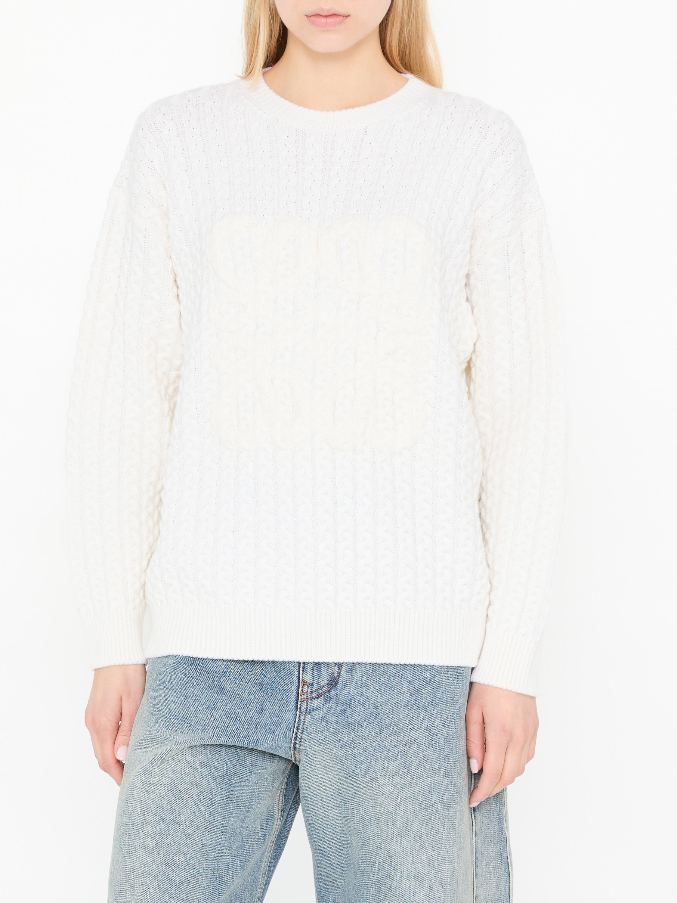 Dieser Pullover in Crème von LOEWE wurde aus hochwertiger Wolle gefertigt und besticht durch das ikonische Anagram auf der Vorderseite. Das zeitlose Zopfmuster in Kombination mit der lässigen Passform sorgt für einen angenehmen Tragekomfort.