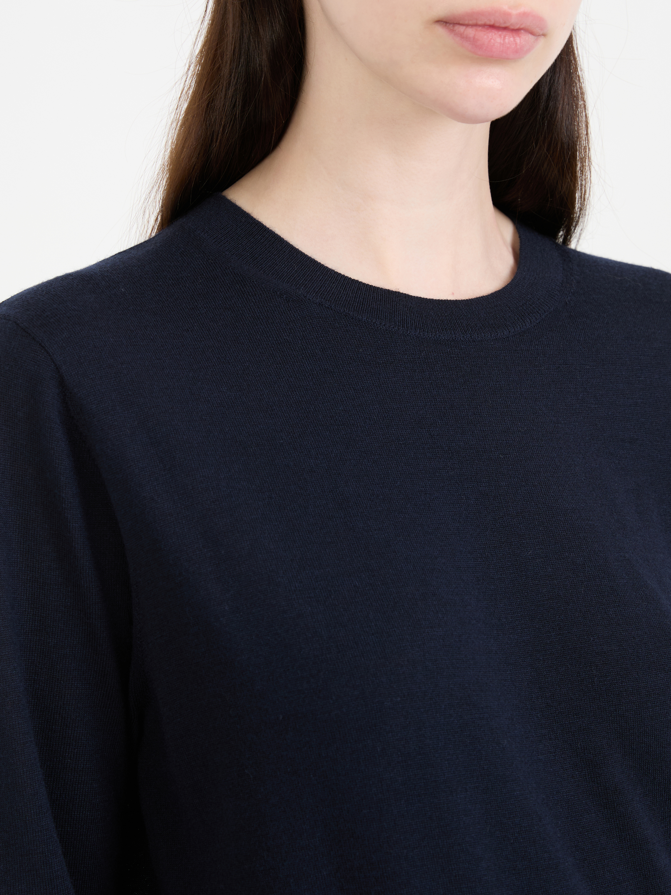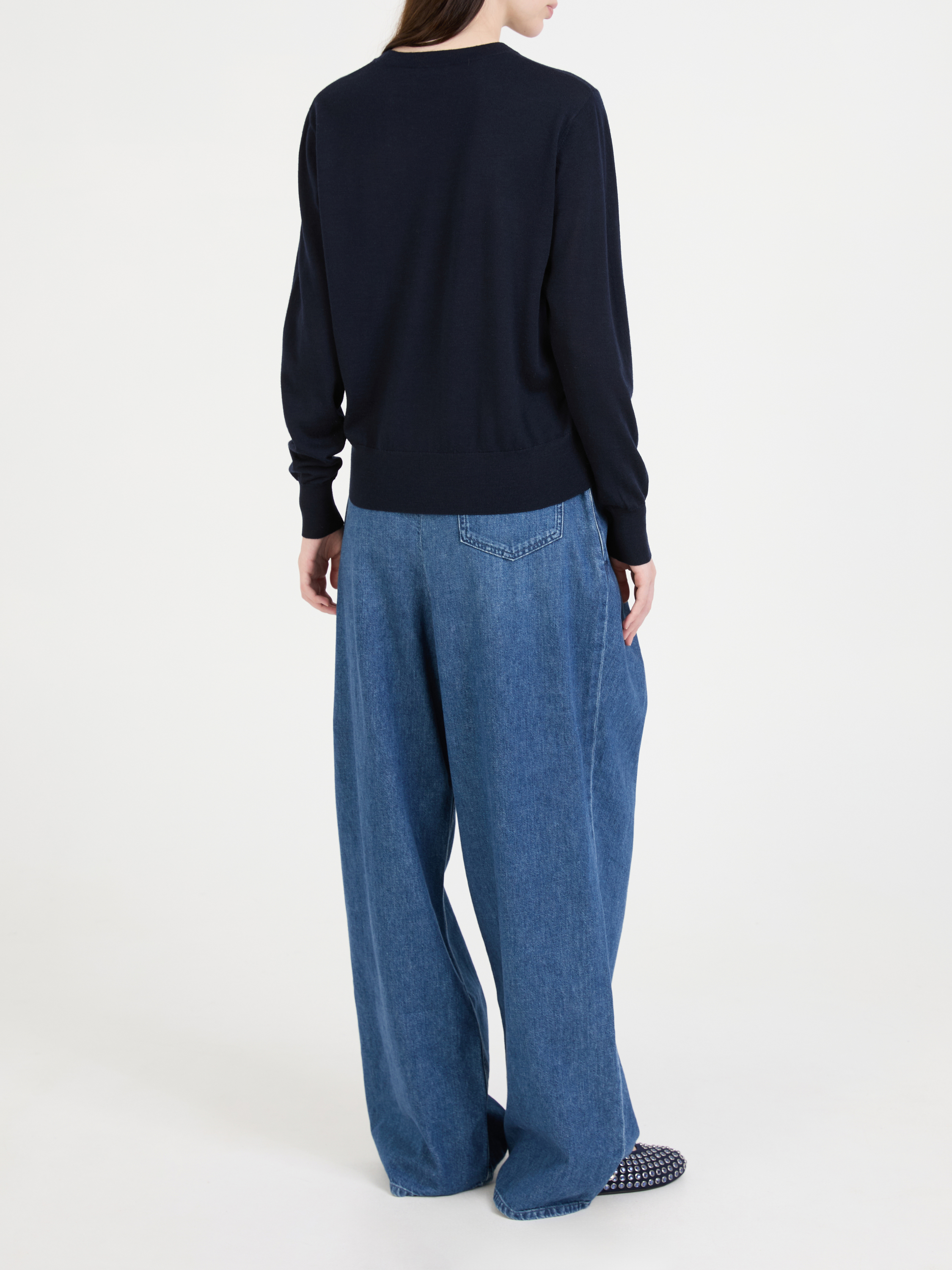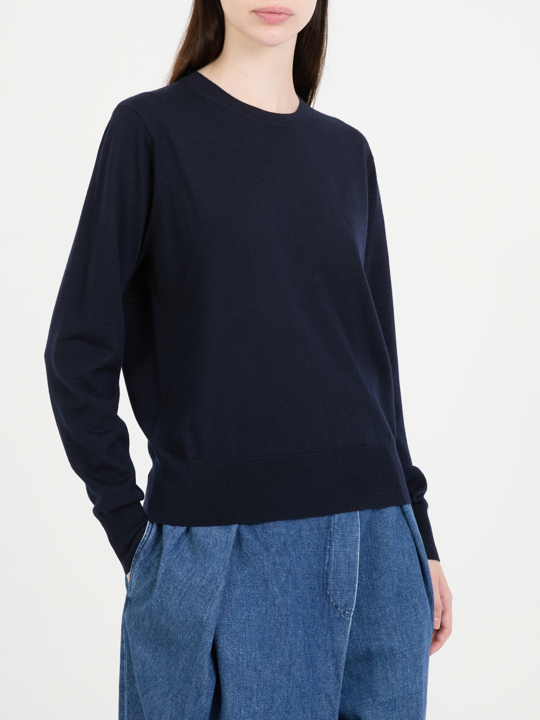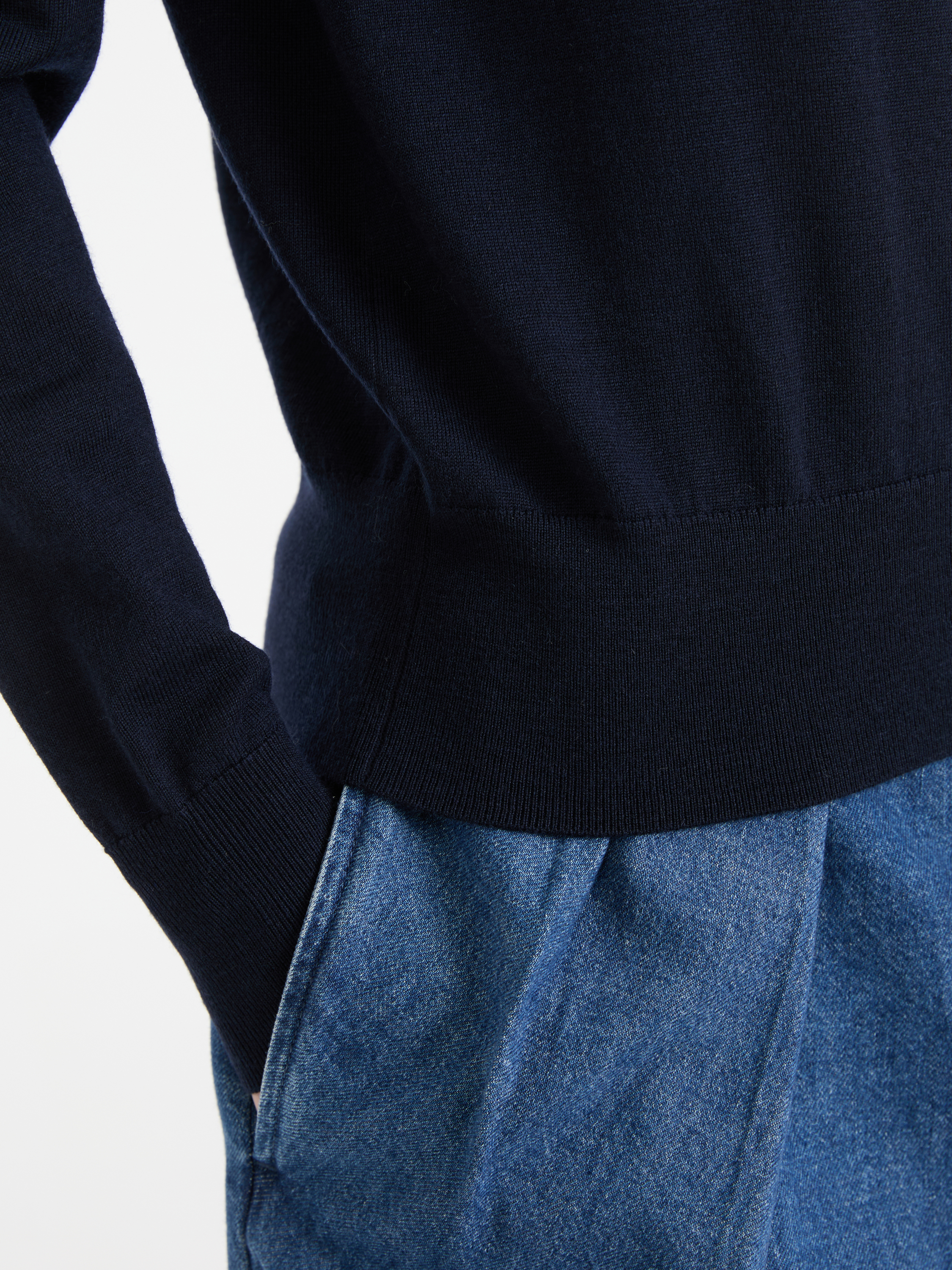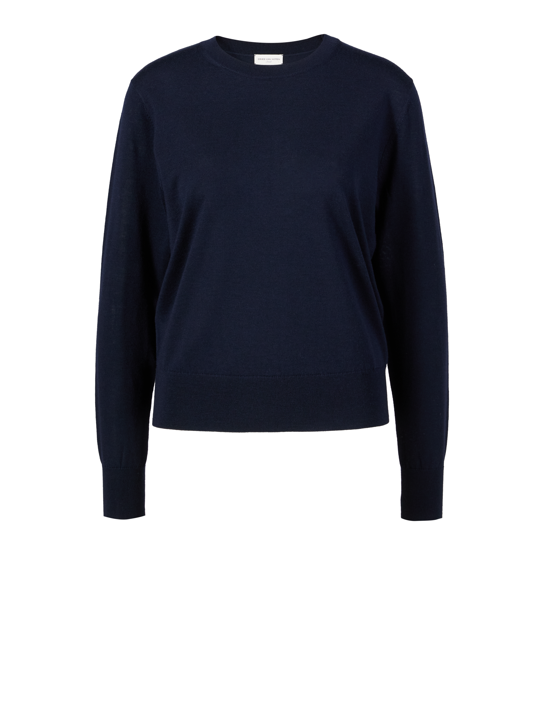 Der Pullover 'Tunetta' in Marineblau von Dries van Noten wurde aus hochwertiger Wolle gefertigt und besticht durch eine schmale Silhouette. Die weiche Haptik und das semitransparente Material rundet dieses Design stilvoll ab.