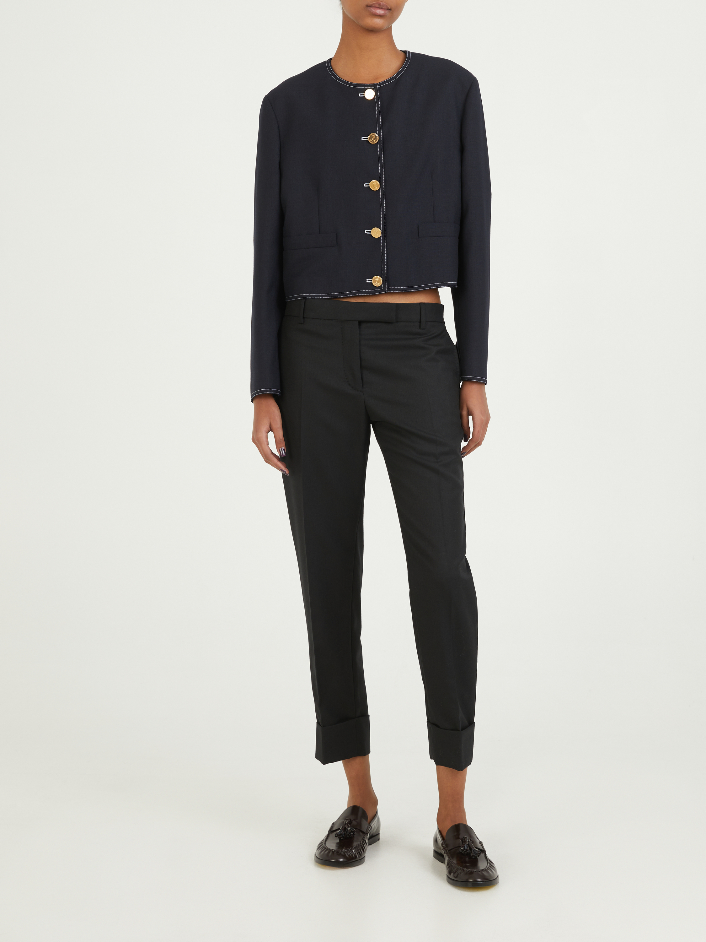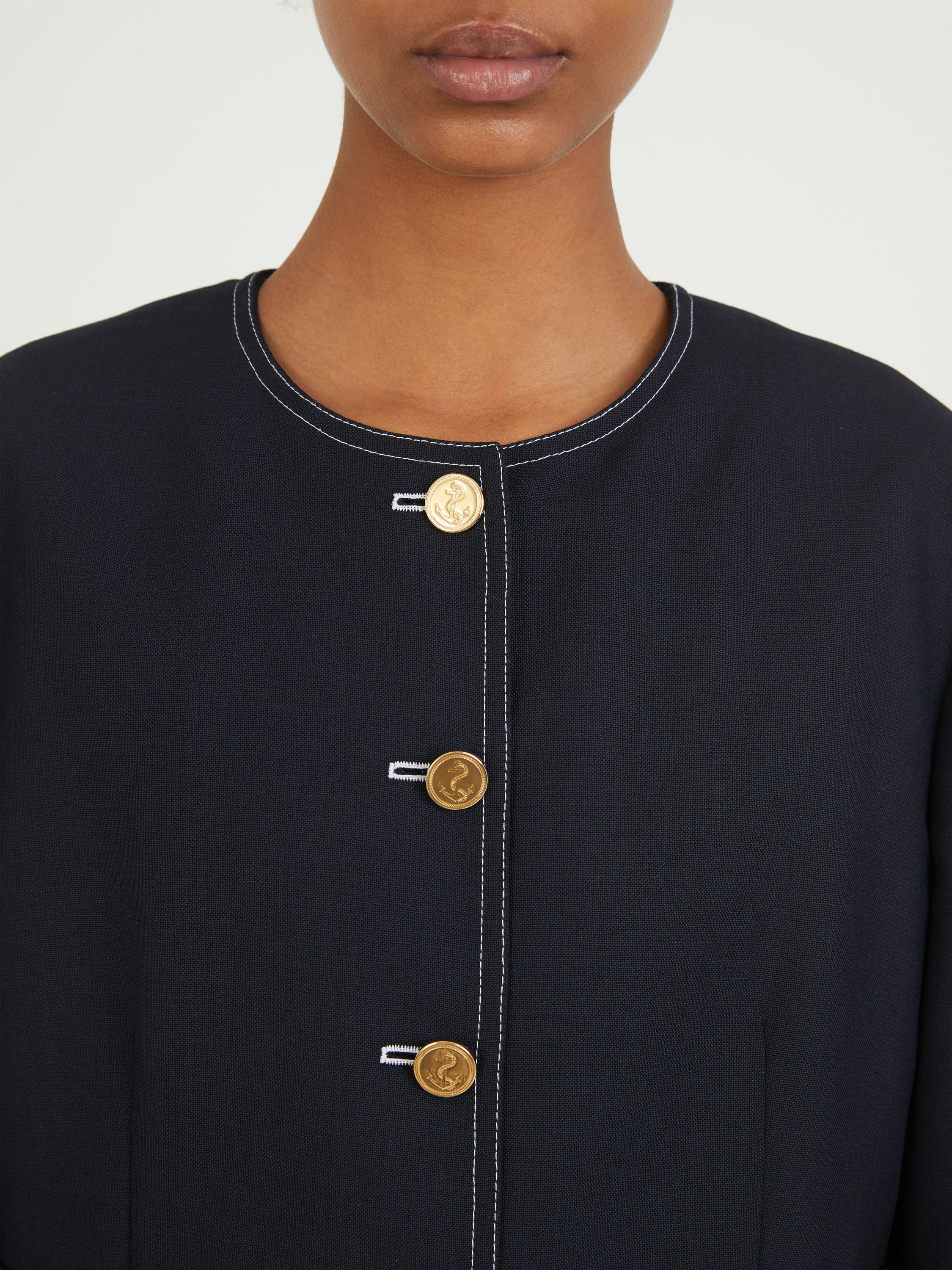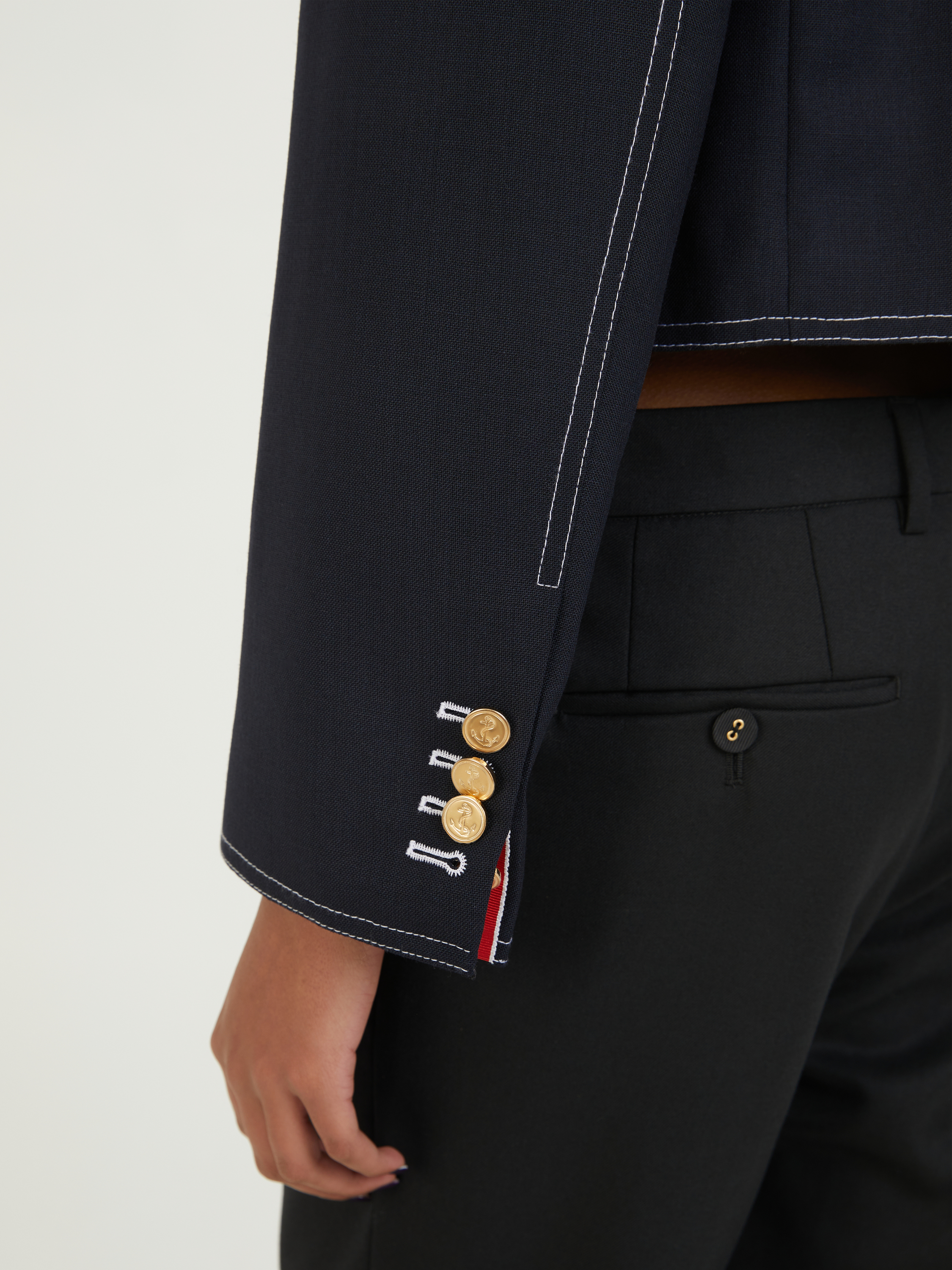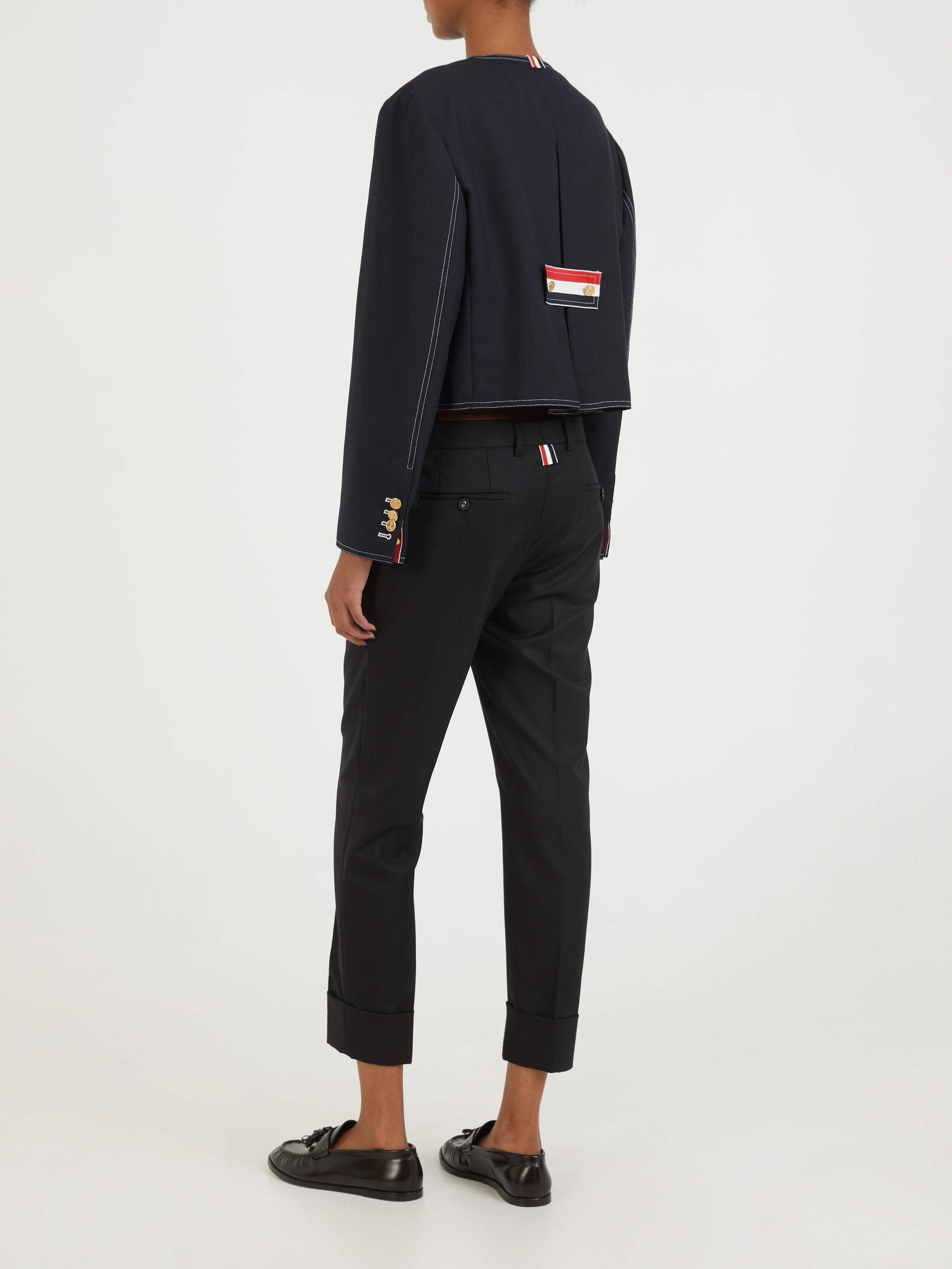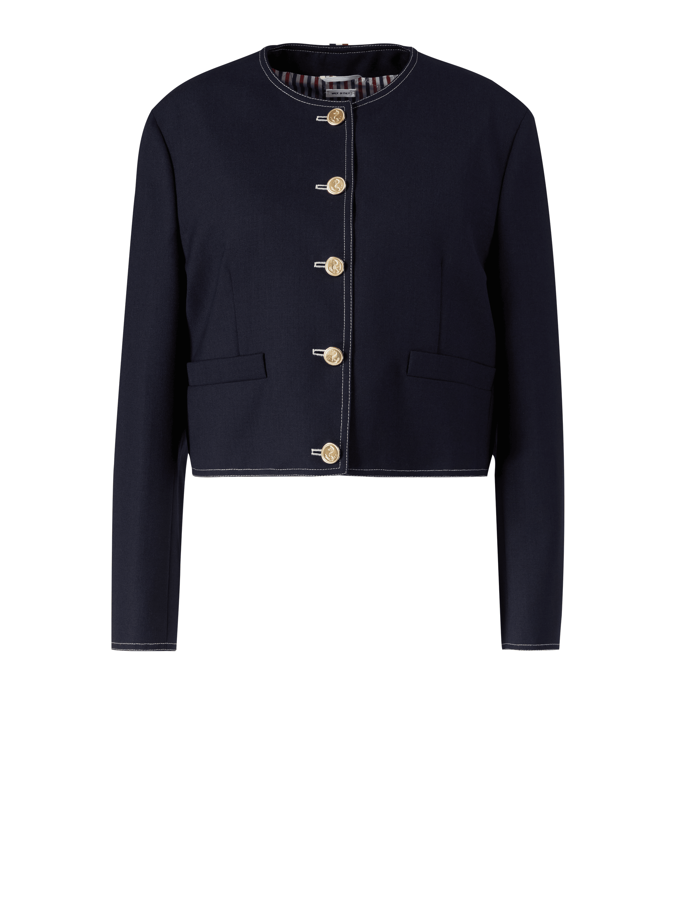 Dieser Cardigan in Marineblau von Thom Browne wurde aus reiner Wolle gefertigt und besticht durch die geknöpfte Manschetten mit charakteristischem gestreiften Ripsbandbesatz. Der Rundhalsausschnitt, die Rückenlasche aus Ripsband und die gerade Passform vervollständigen das stilvolle Modell.