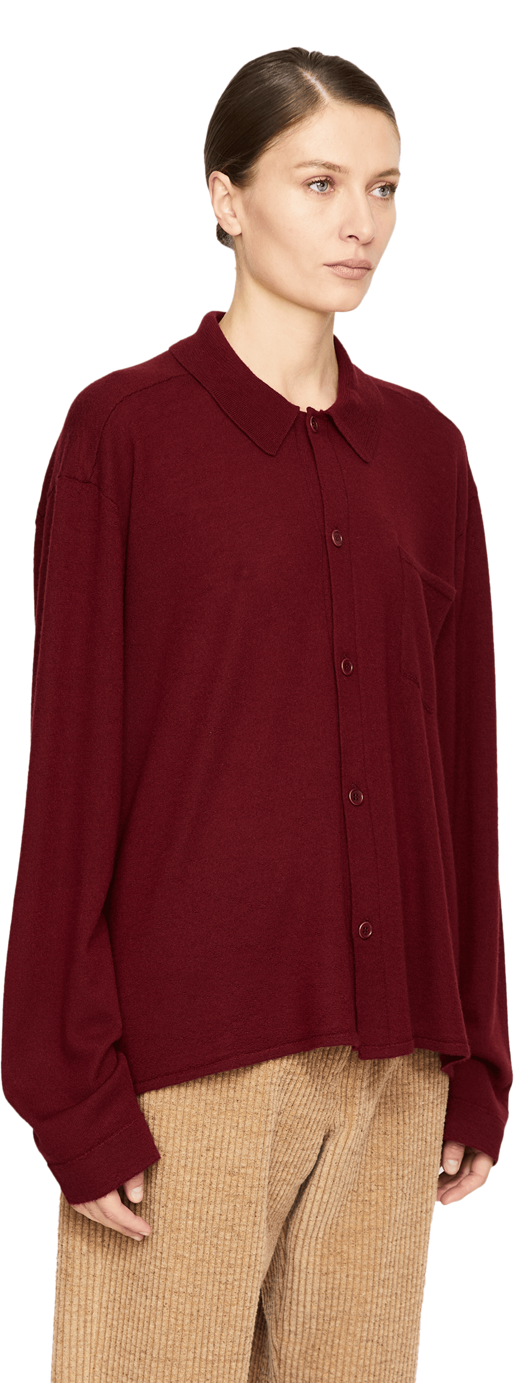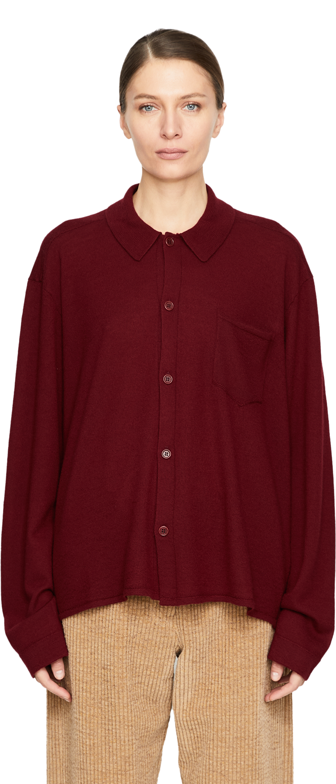 Diese Strickjacke in Bordeaux von META CAMPANIA COLLECTIVE wurde aus hochwertigem Cashmere gefertigt und besticht durch die weiche Haptik. Der Polokragen, die durchgehende Knopfleiste und die aufgesetzte Brusttasche zeichnen dieses Modell aus.