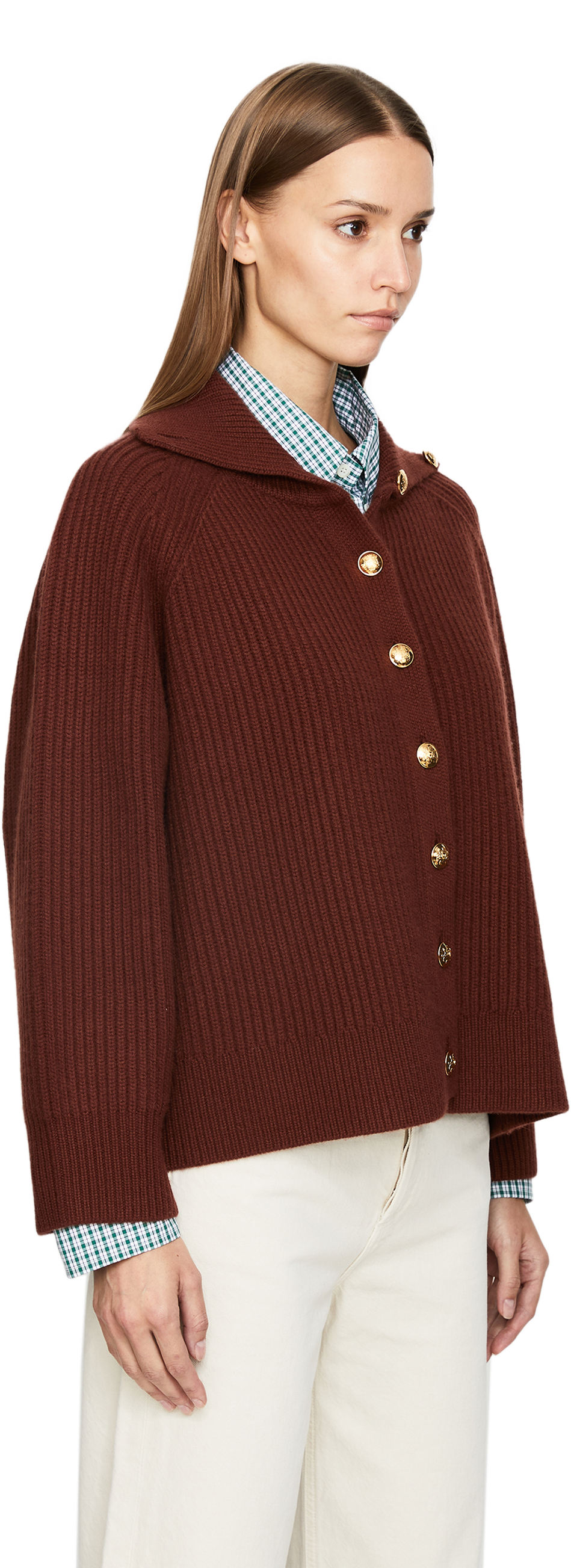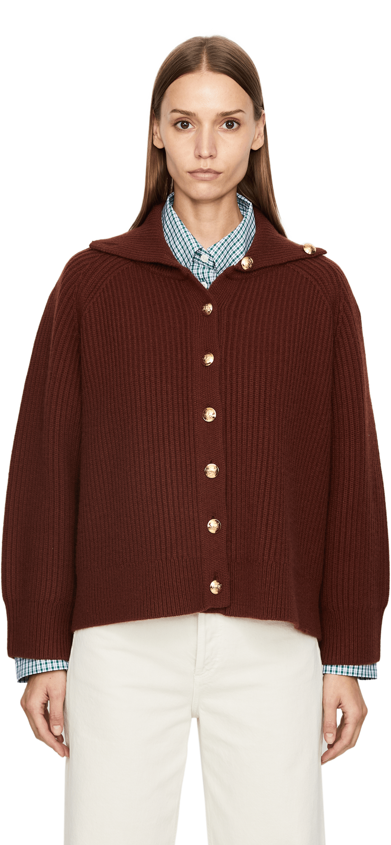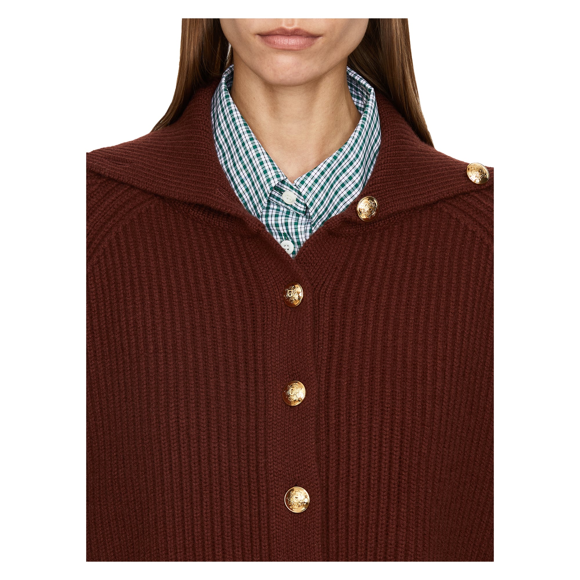 Die Strickjacke 'Deryl' in Bordeaux von NILI LOTAN wurde aus reinem Cashmere gefertigt und besticht durch die weiche Haptik. Die kastige Silhouette und die goldfarbenen Knöpfe definieren dieses edle Design.
