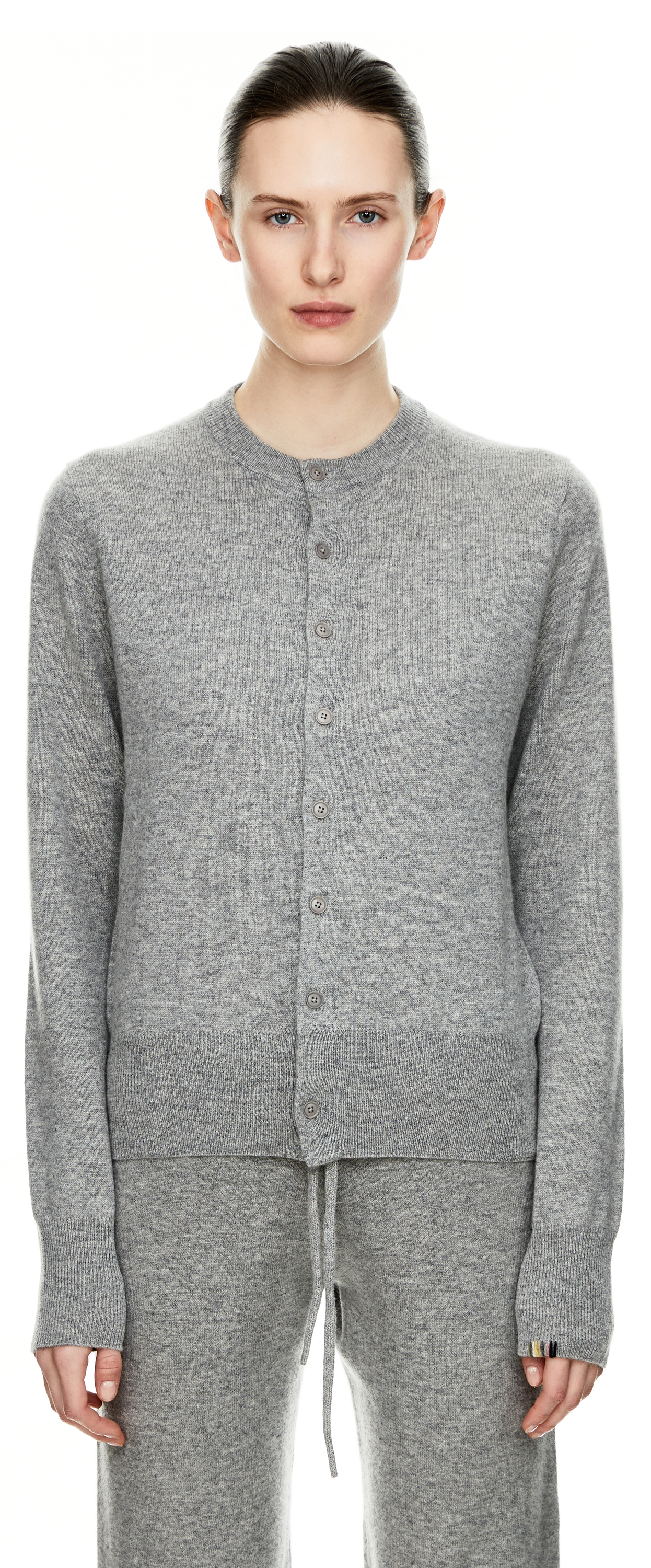 Die Strickjacke 'n°300 Little 2' in Grau von extreme cashmere x wurde aus feinstem Cashmere gefertigt und besticht durch die klassische Passform. Der Rundhalsausschnitt und die Kombination aus Ripp- und Feinstrick zeichnen dieses Modell aus. Die tonale Knopfleiste und die weiche Haptik runden dieses Design stilvoll ab.