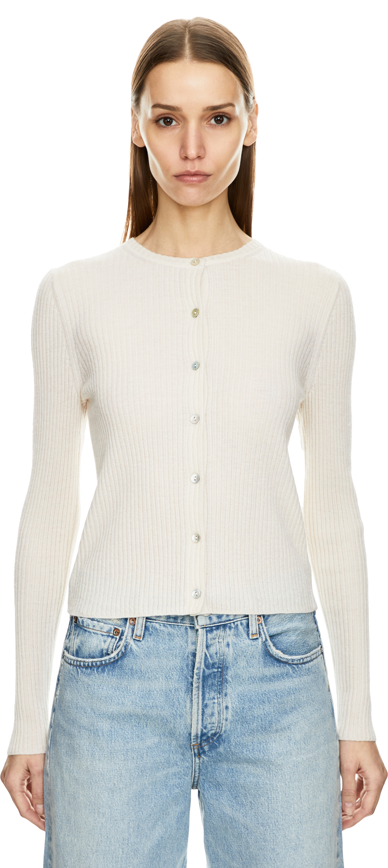 Gerippte Cashmere-Seidenstrickjacke Crème
