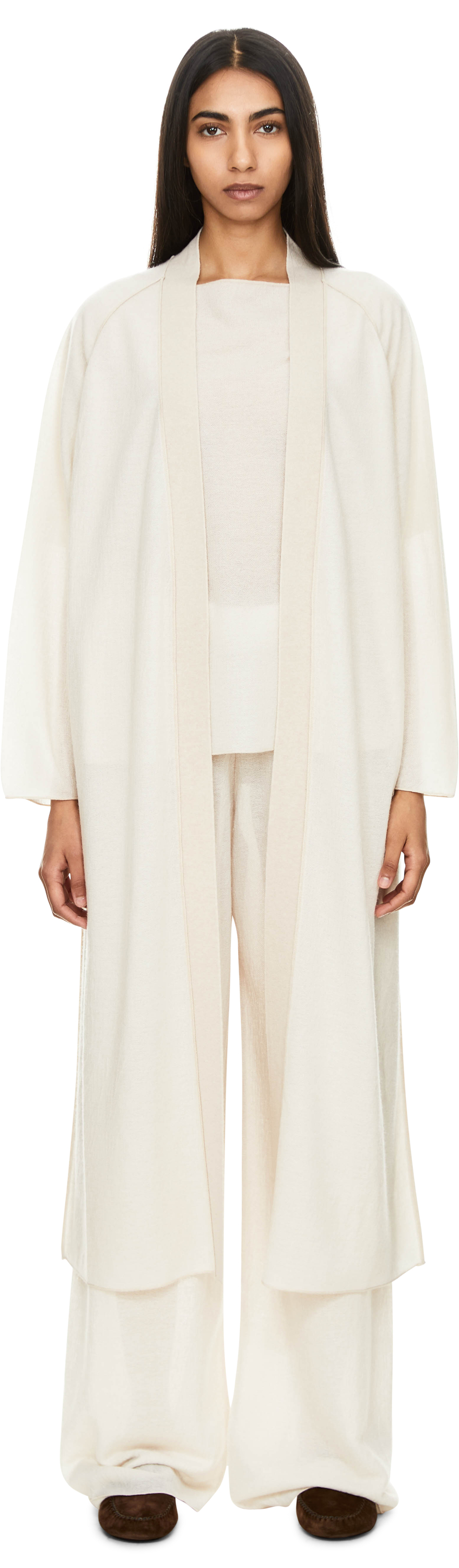 Lange Cashmere-Strickjacke Beige