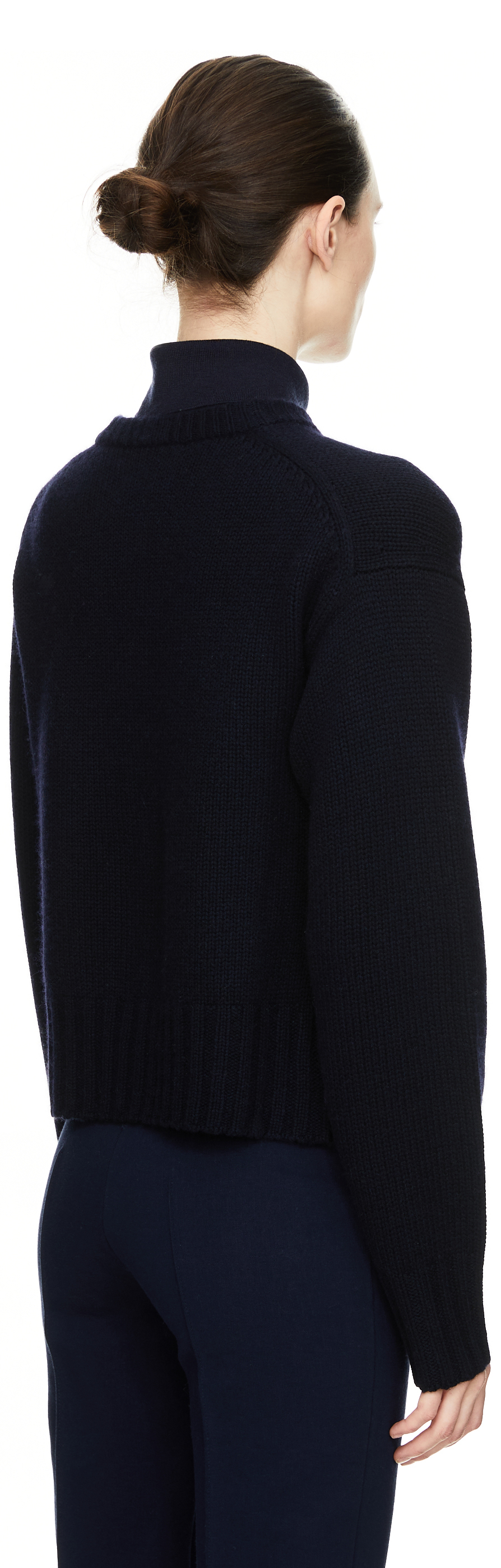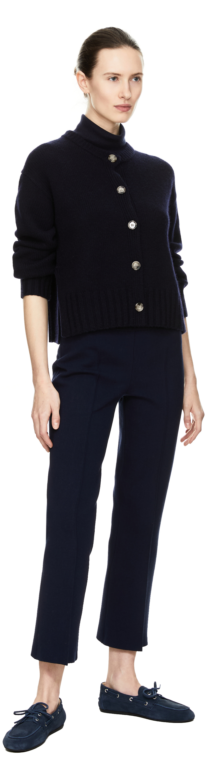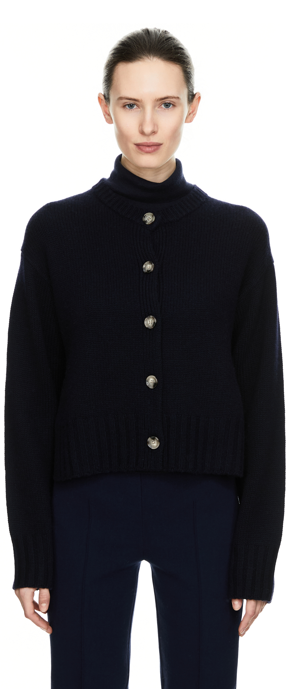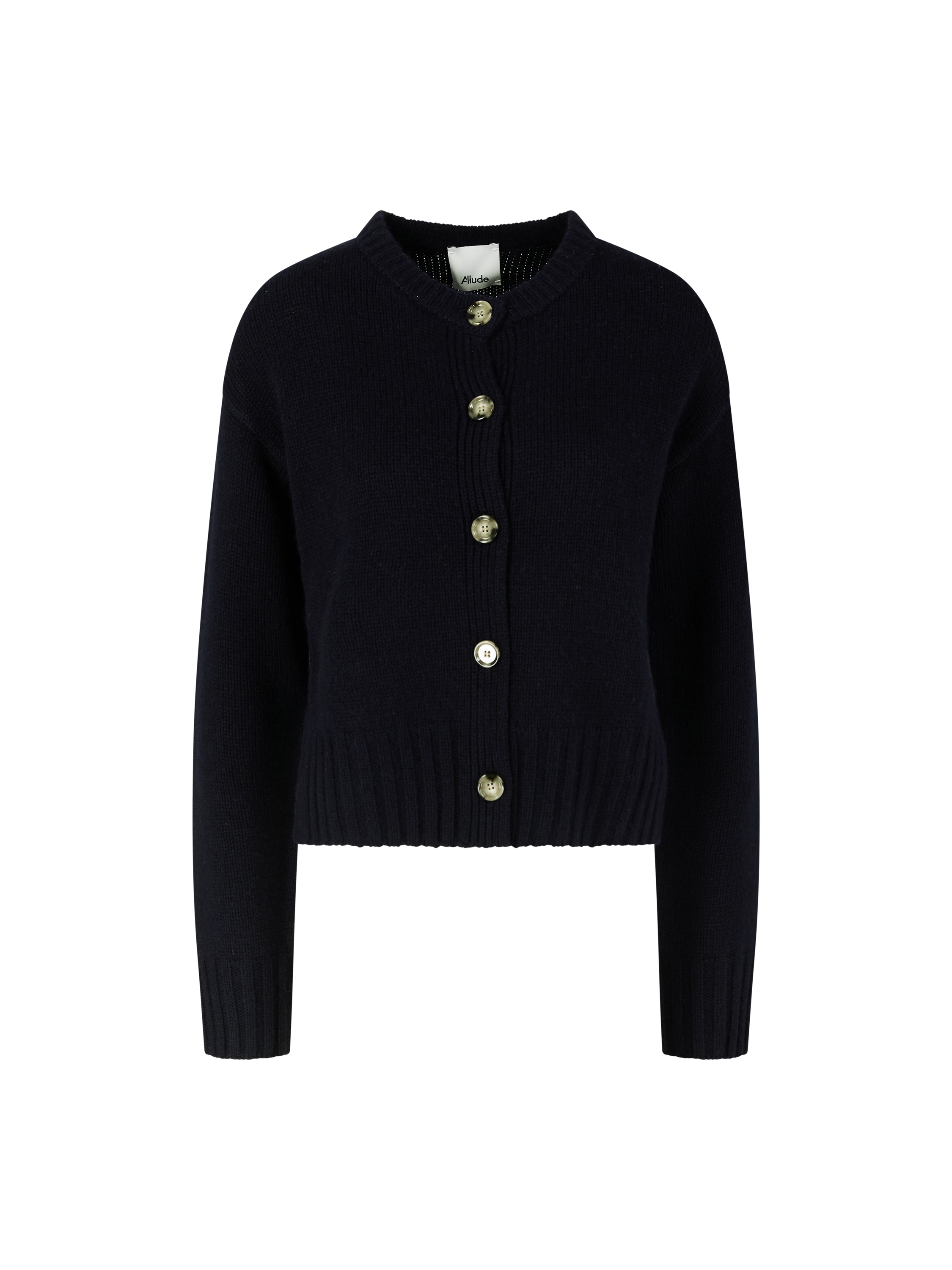 Diese Strickjacke in Marineblau von Allude wurde aus einer hochwertigen Woll-Cashmere-Mischung gefertigt und besticht durch die weite Silhouette. Der Rundhalsausschnitt, der Rippstrick und die überschnittenen Schultern zeichnen dieses Design aus. Die Seitenschlitze ergänzen das lässige Modell.
