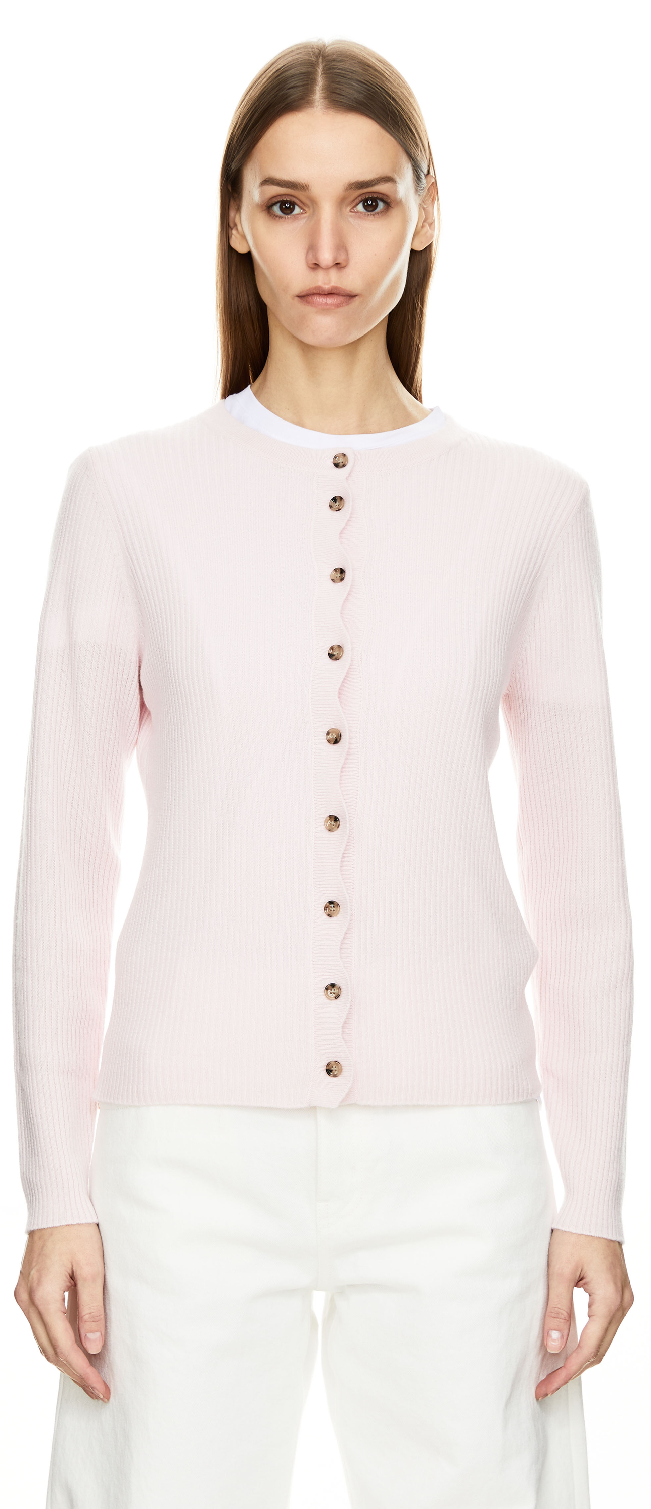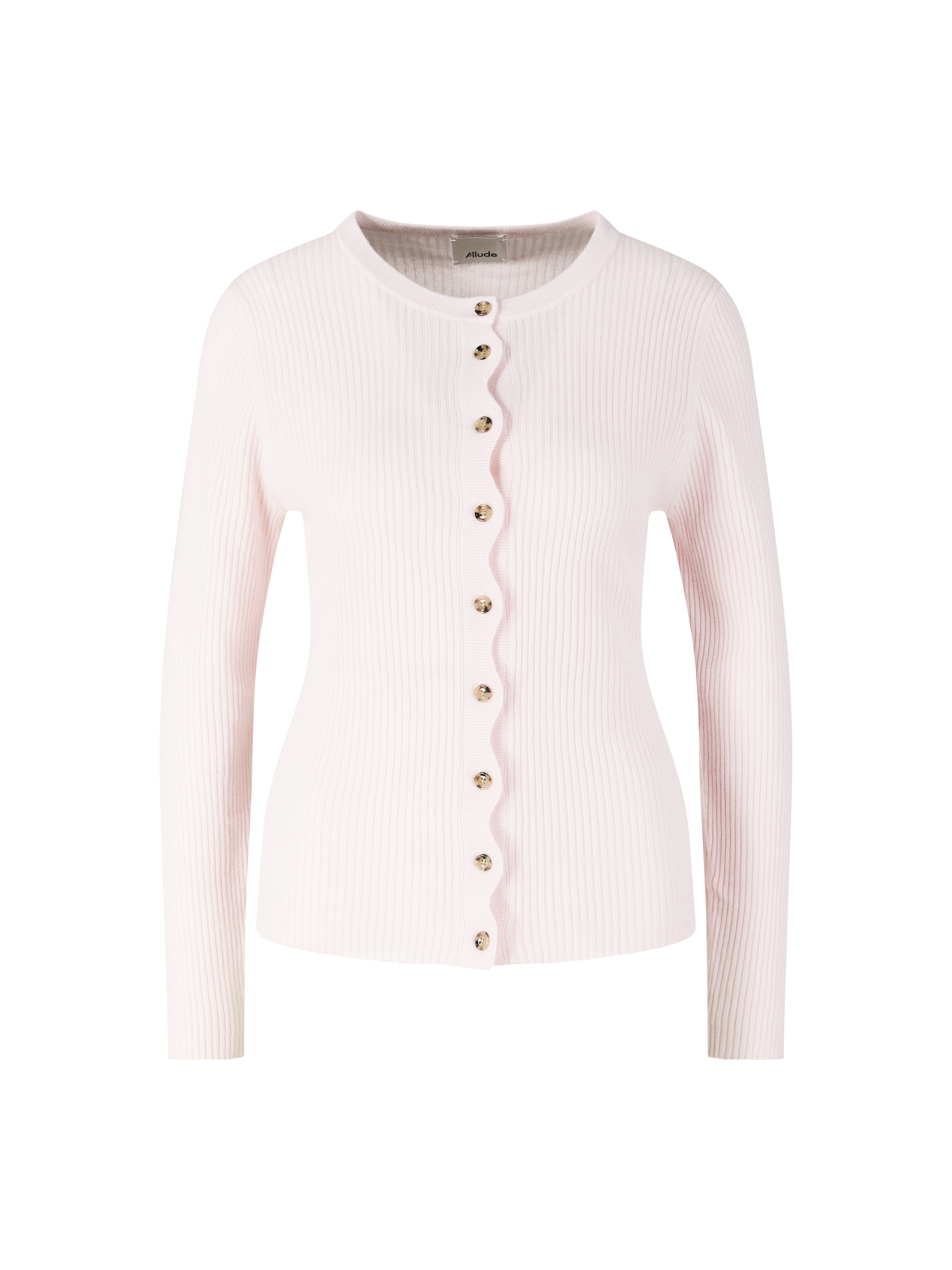 Die Strickjacke 'Wave' in Rosé von Allude wurde aus einer hochwertigen Woll-Cashmere-Mischung gefertigt und besticht durch die weiche Haptik. Die durchgehende Knopfleiste in welliger Optik, der Rundhalsausschnitt sowie die langen Ärmel zeichnen dieses Modell aus.