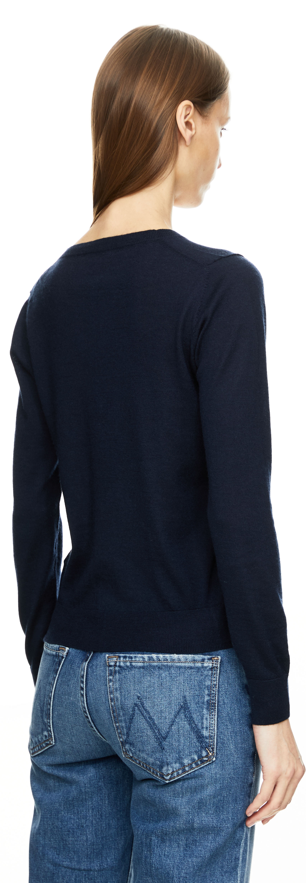 Dieser Pullover in Marineblau von Allude wurde aus reinem Cashmere gefertigt und besticht durch seinen feinen, weichen Strick sowie das zeitlose Design. Der V-Ausschnitt, die langen Ärmel und der Rippstrick am Saum vollenden diesen Klassiker.