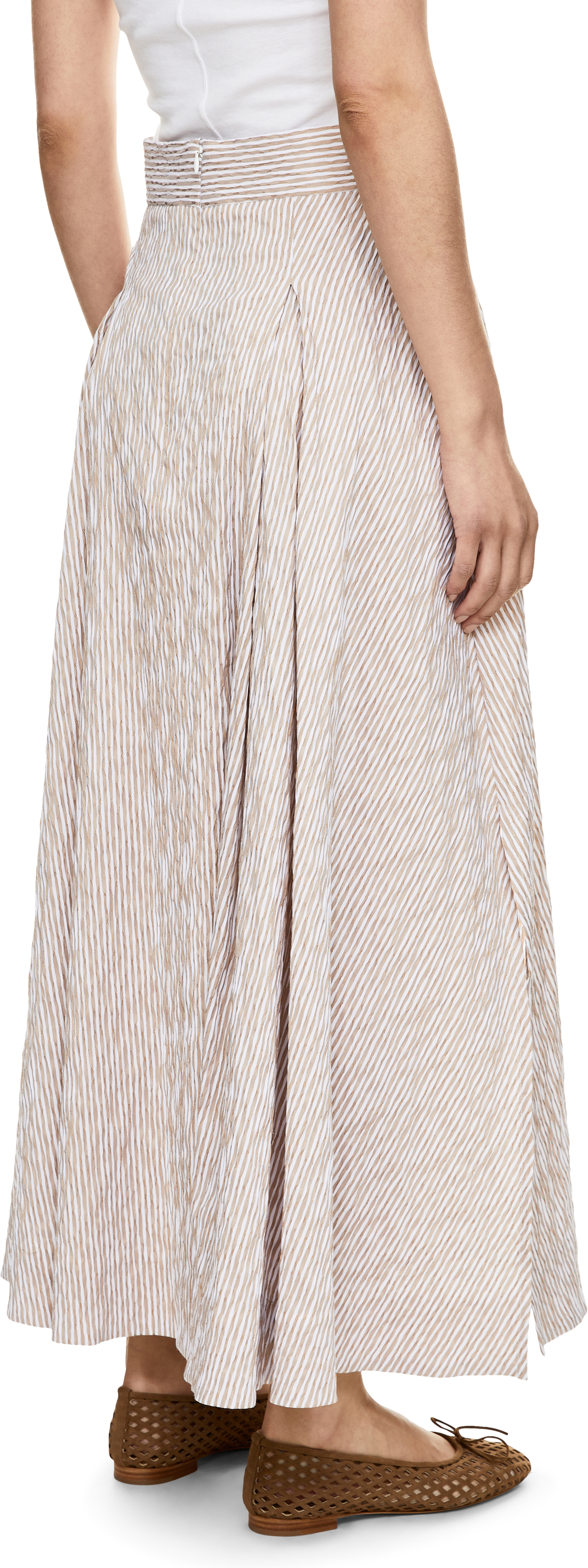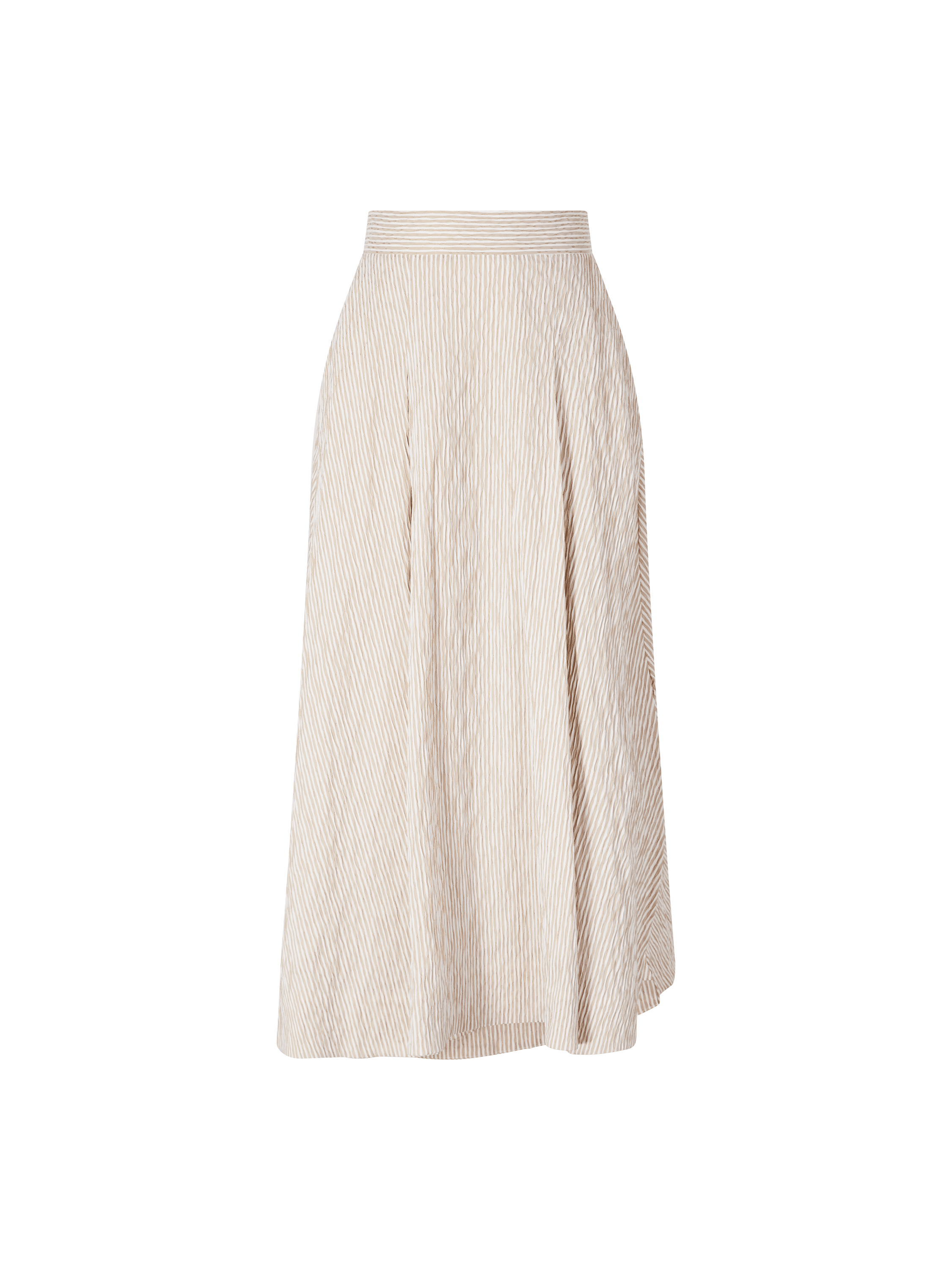Gestreifter Midirock mit Seersucker-Optik Beige