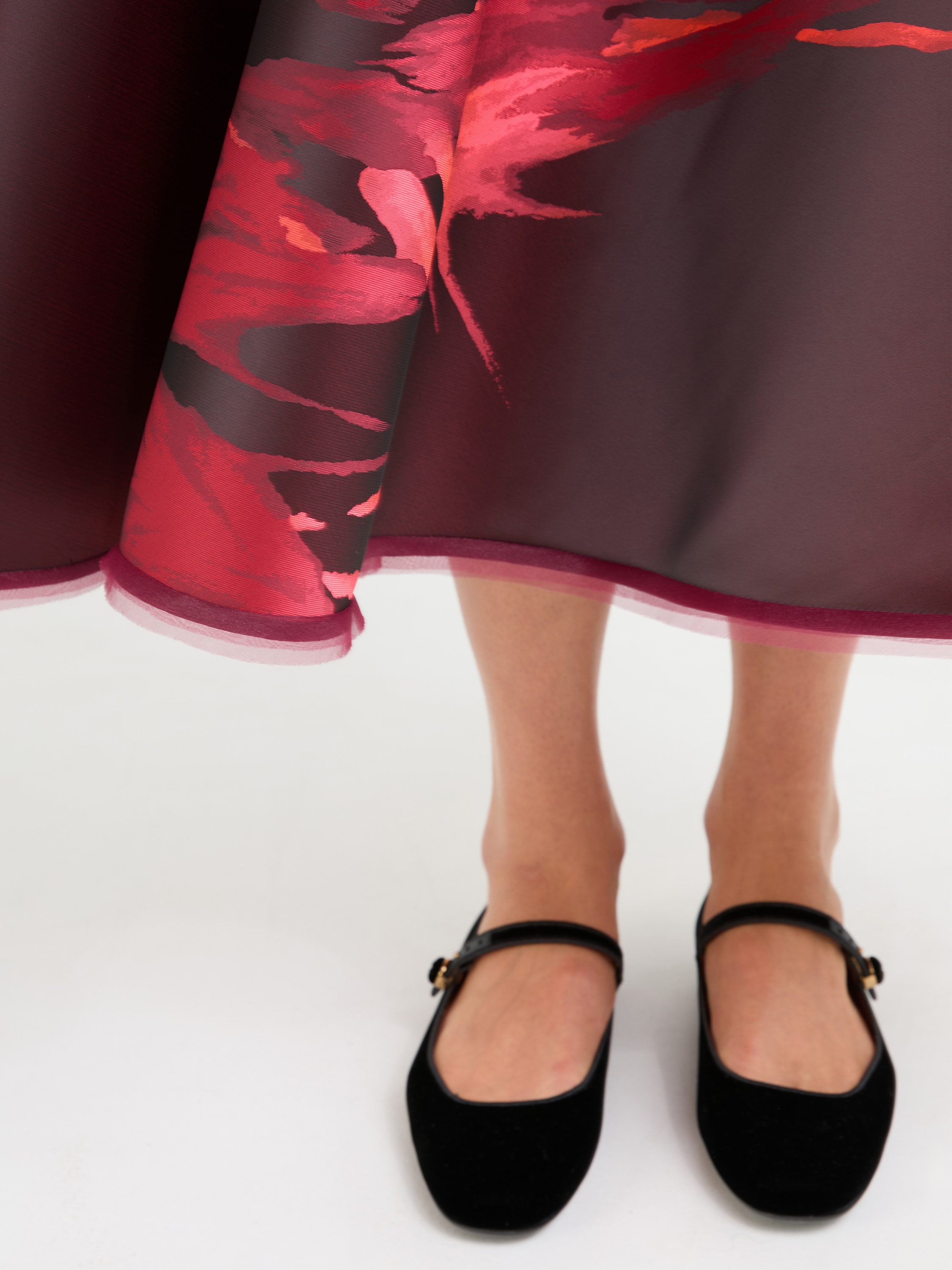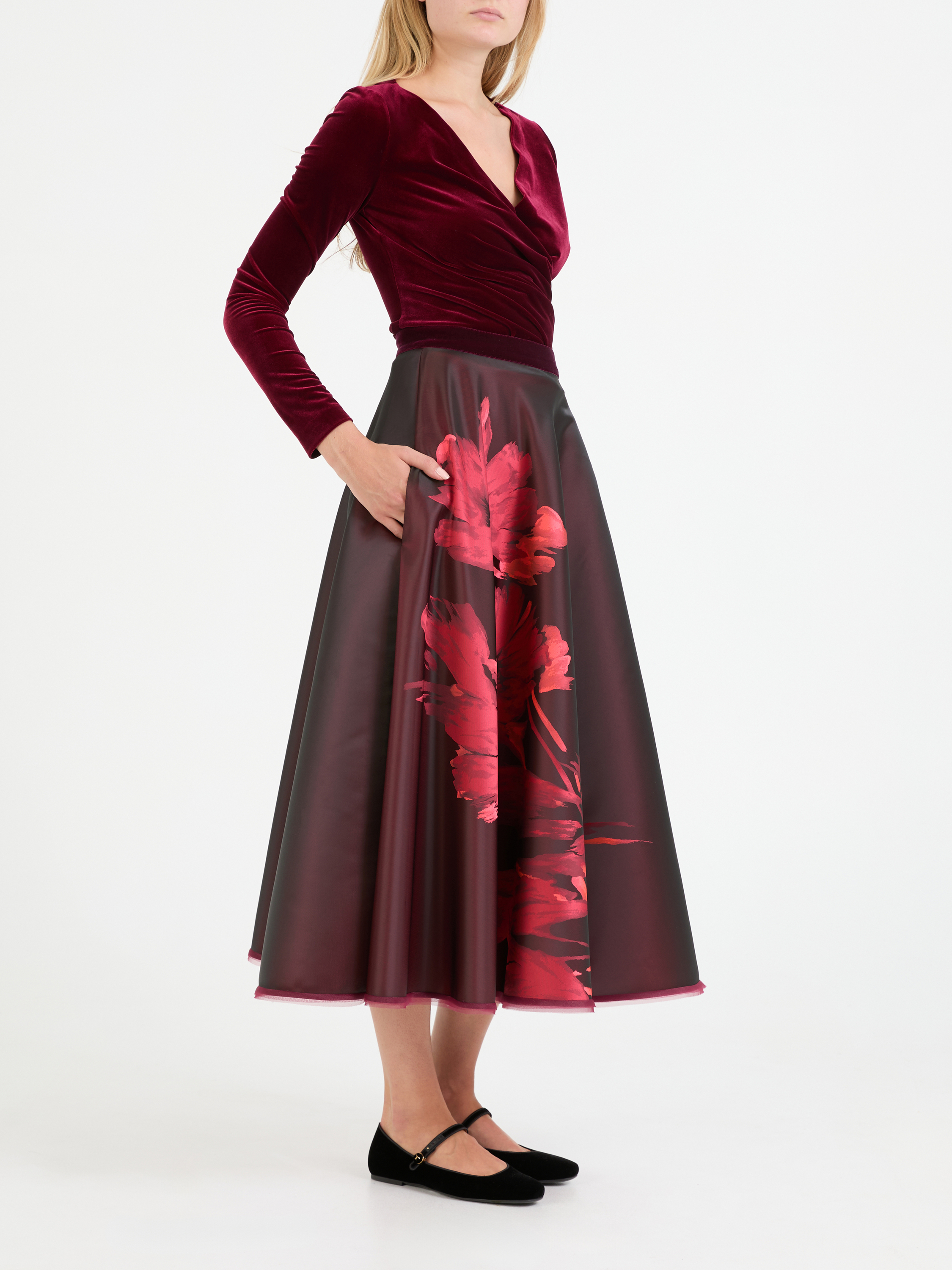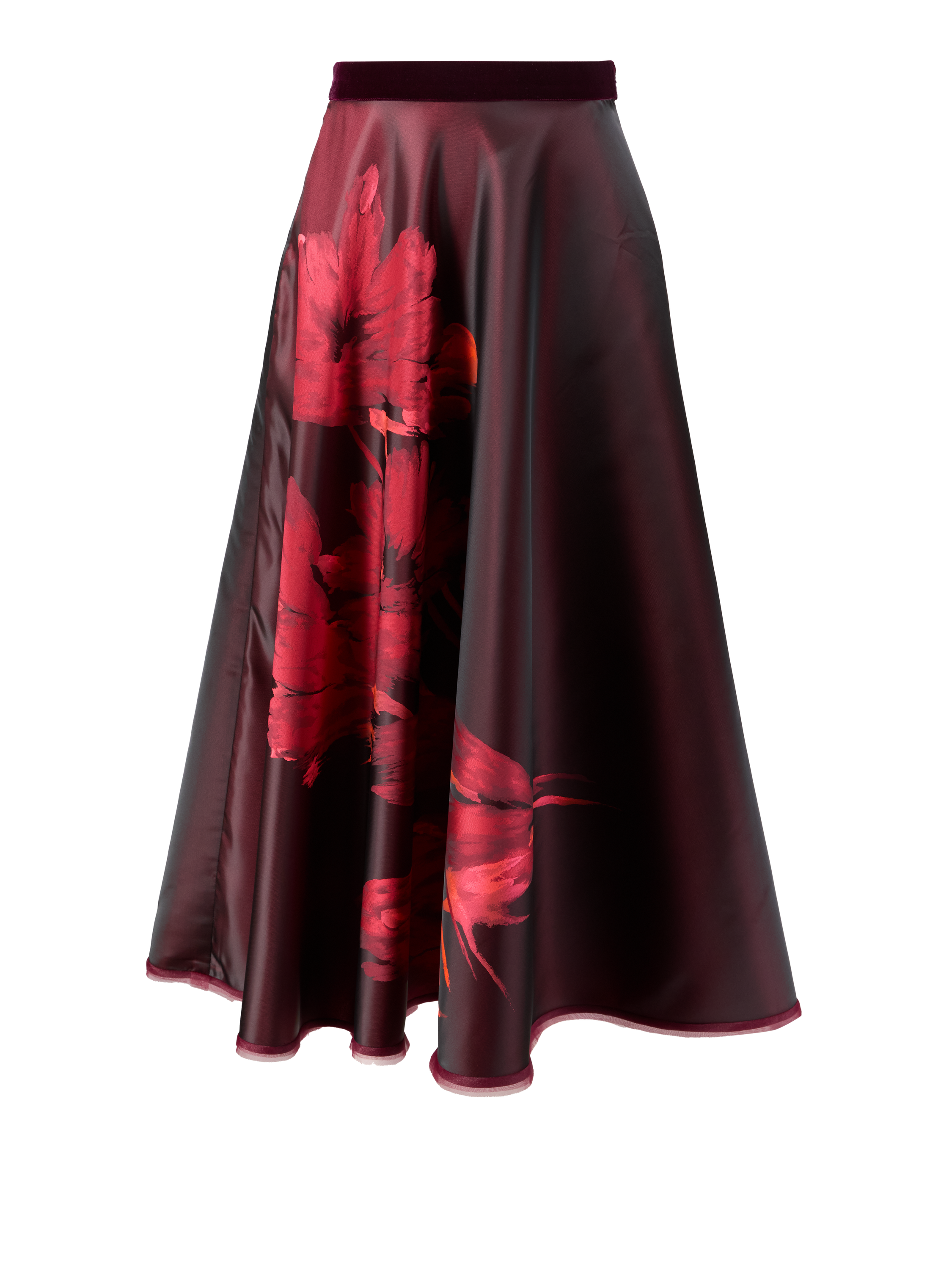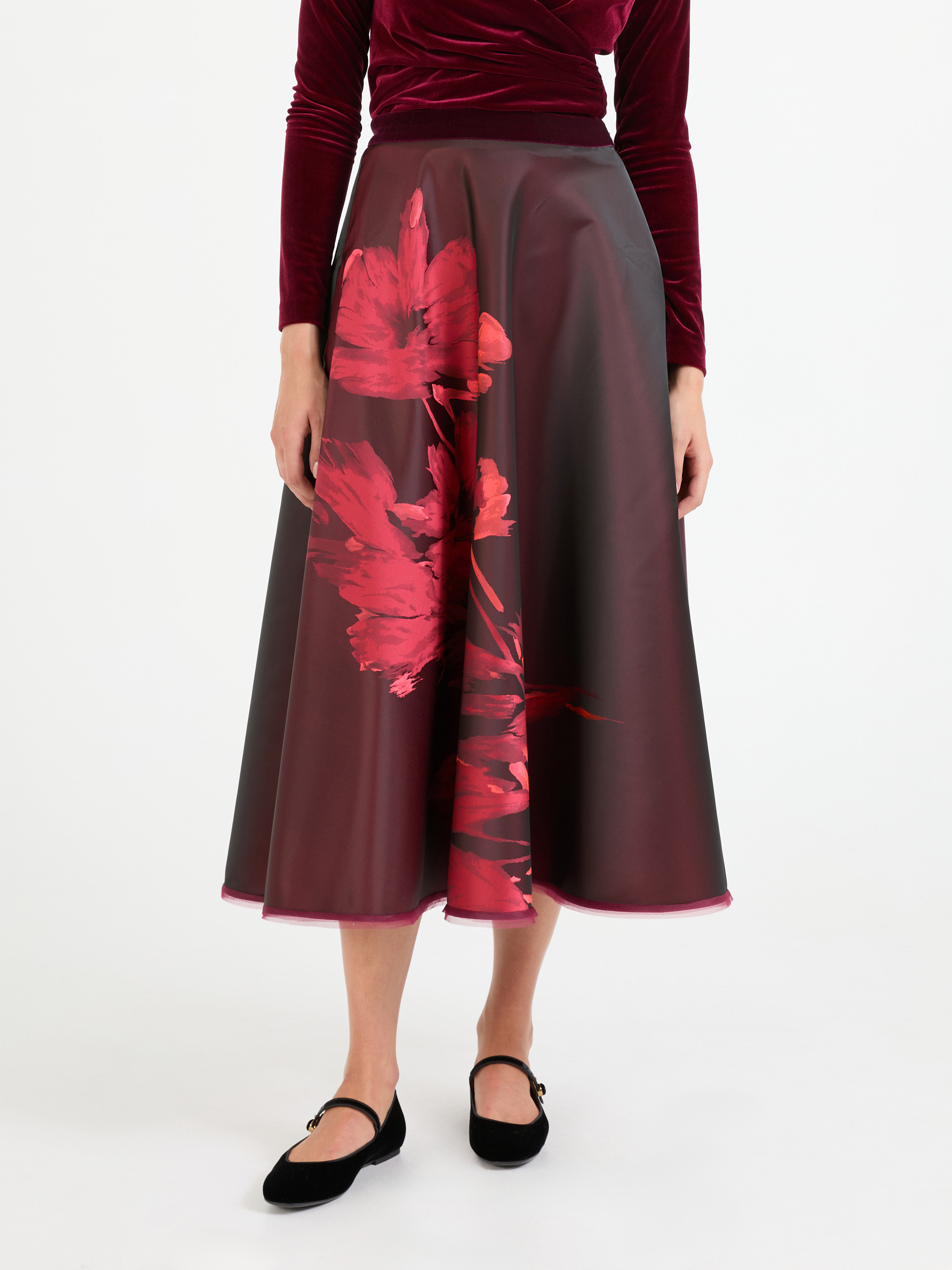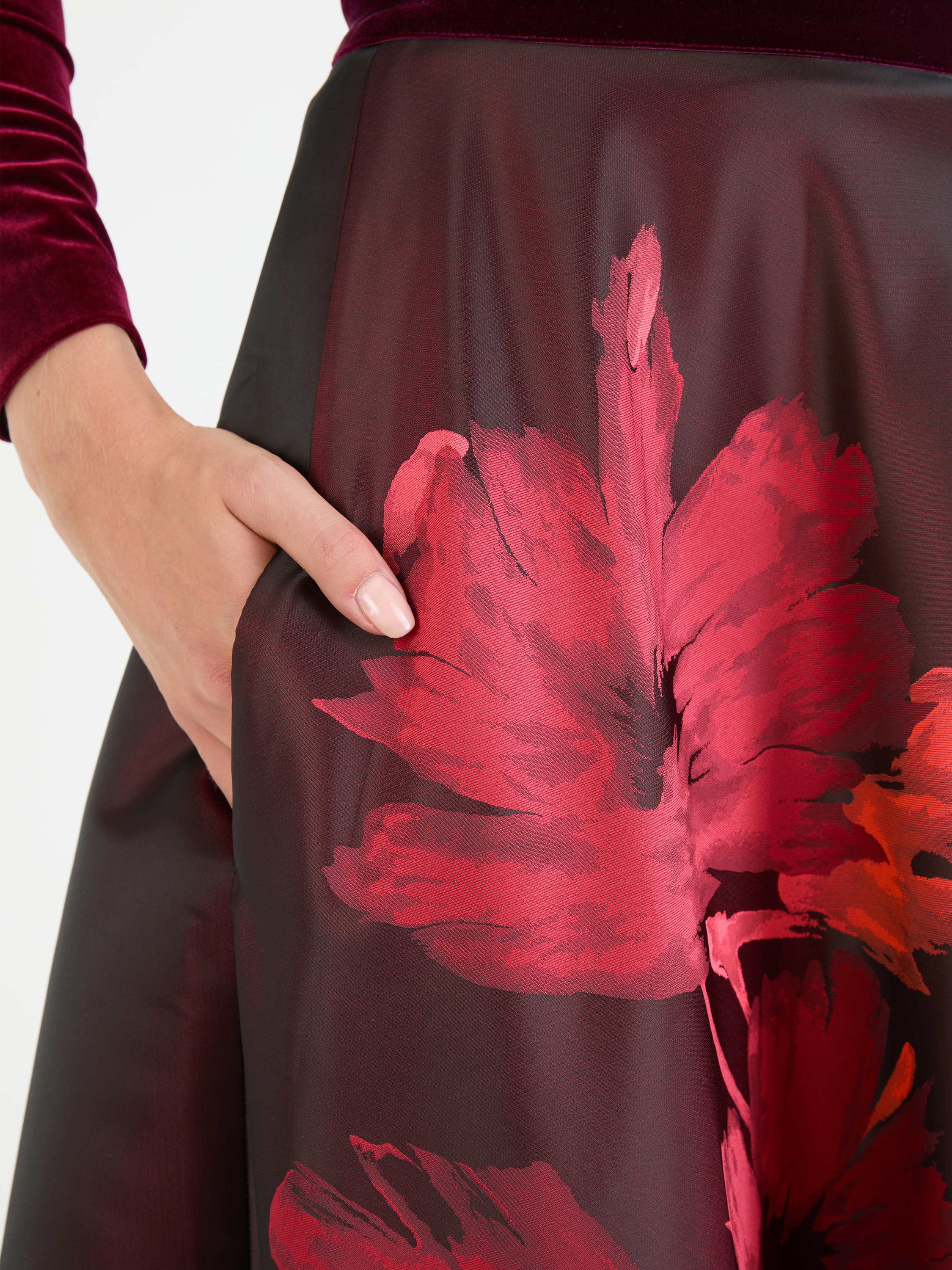 Midirock aus Floral Bouquet Jacquard Rubino Red