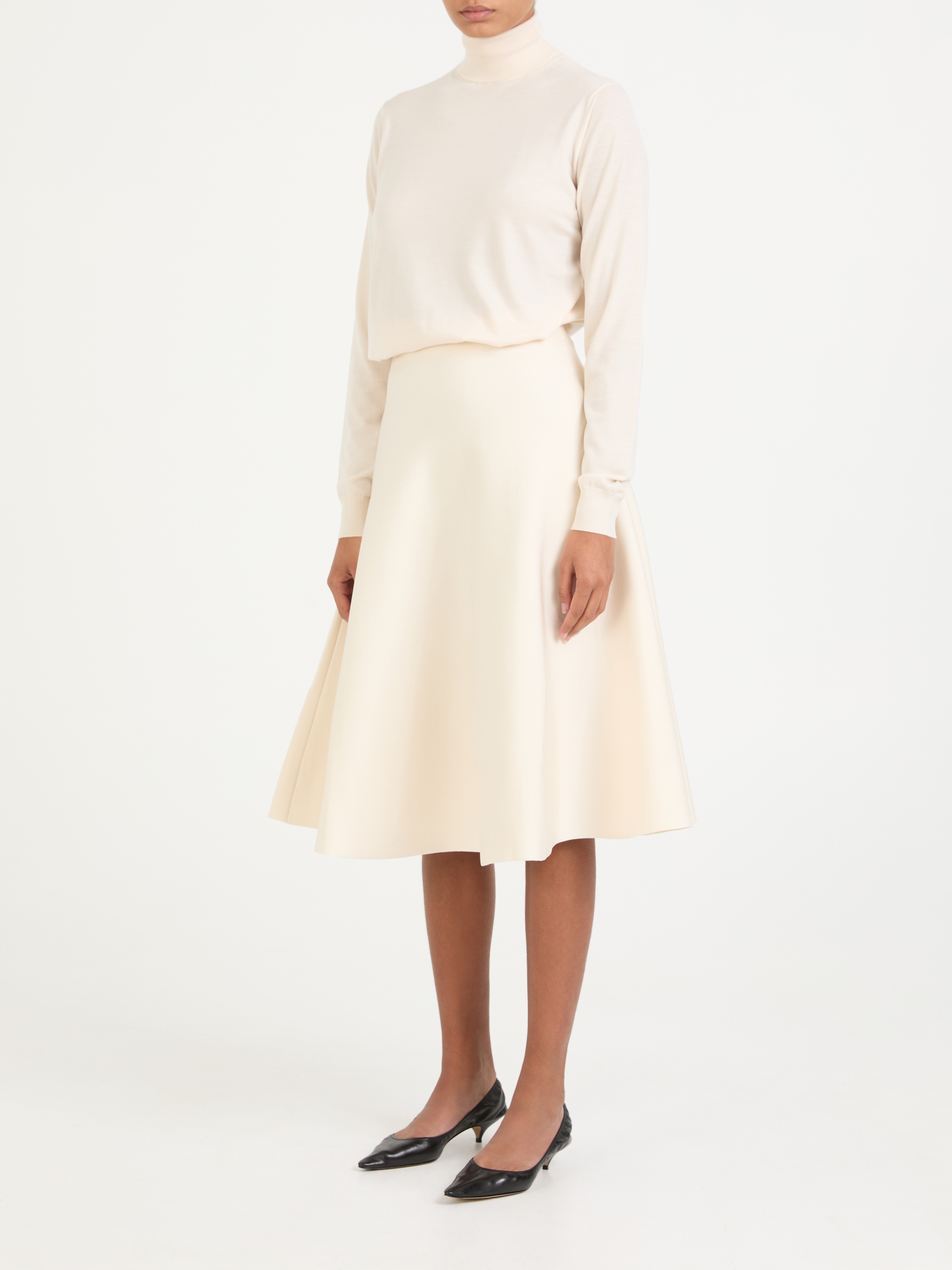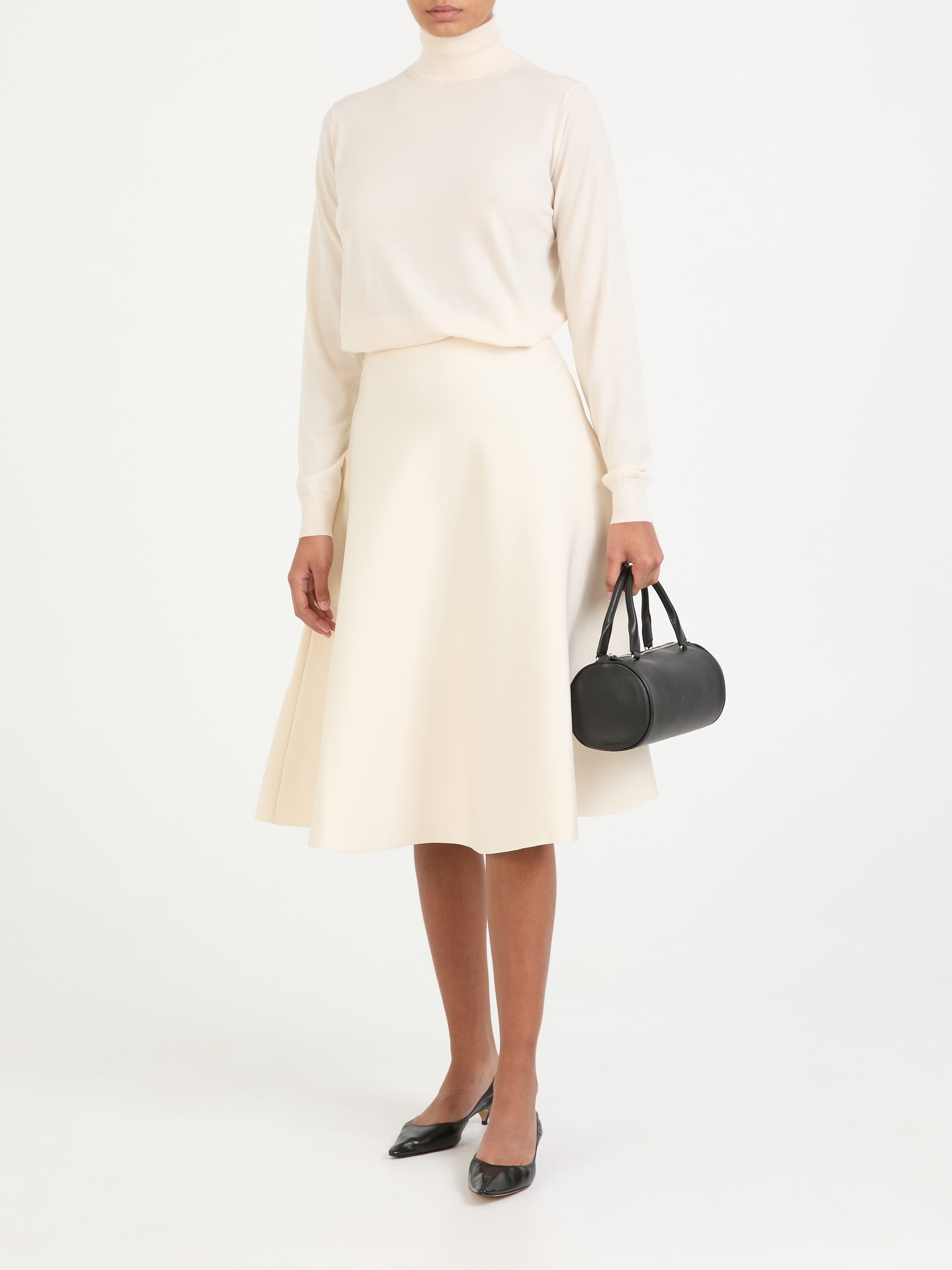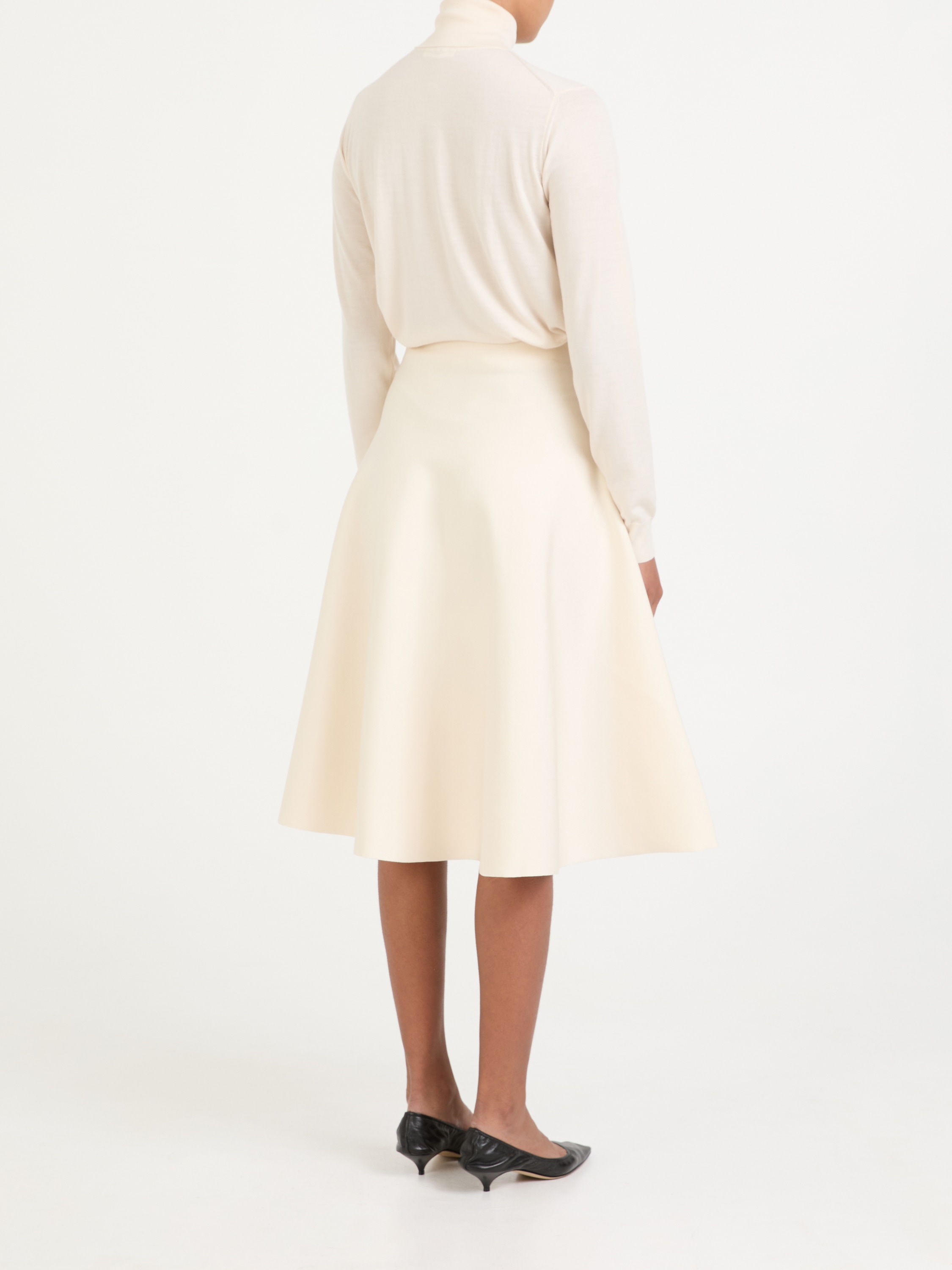 Der Rock 'Harley' in Crème von The Row wurde aus einem hochwertigen Viskose-Gemisch gefertigt und besticht durch die Midilänge. Die hohe Leibhöhe und die ausgestellte Silhouette zeichnen dieses feminine Modell aus. Abgerundet wird dieser Look durch das elastische Bündchen.