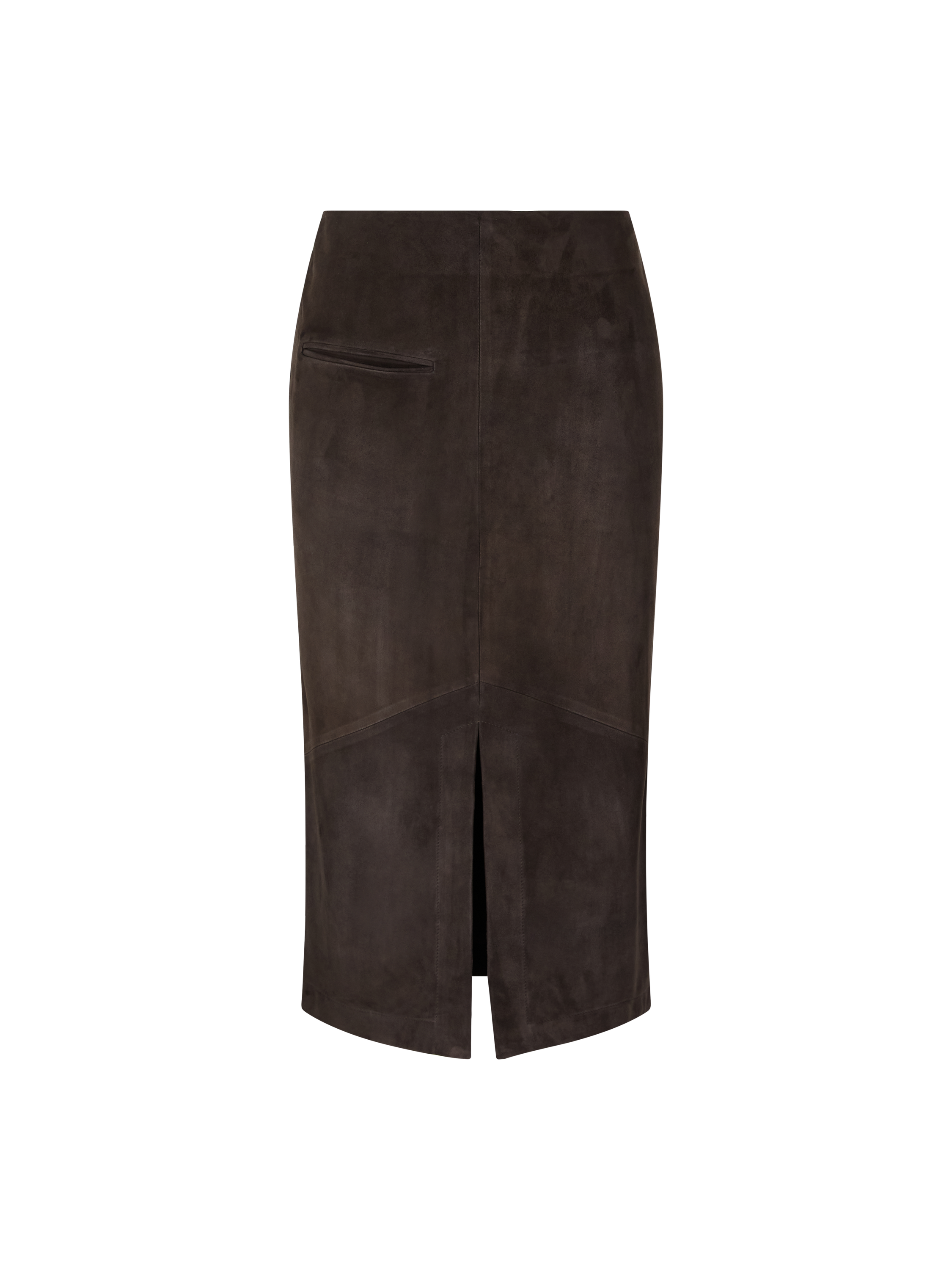 Bleistiftrock 'Niki' aus Lammveloursleder Dunkelbraun