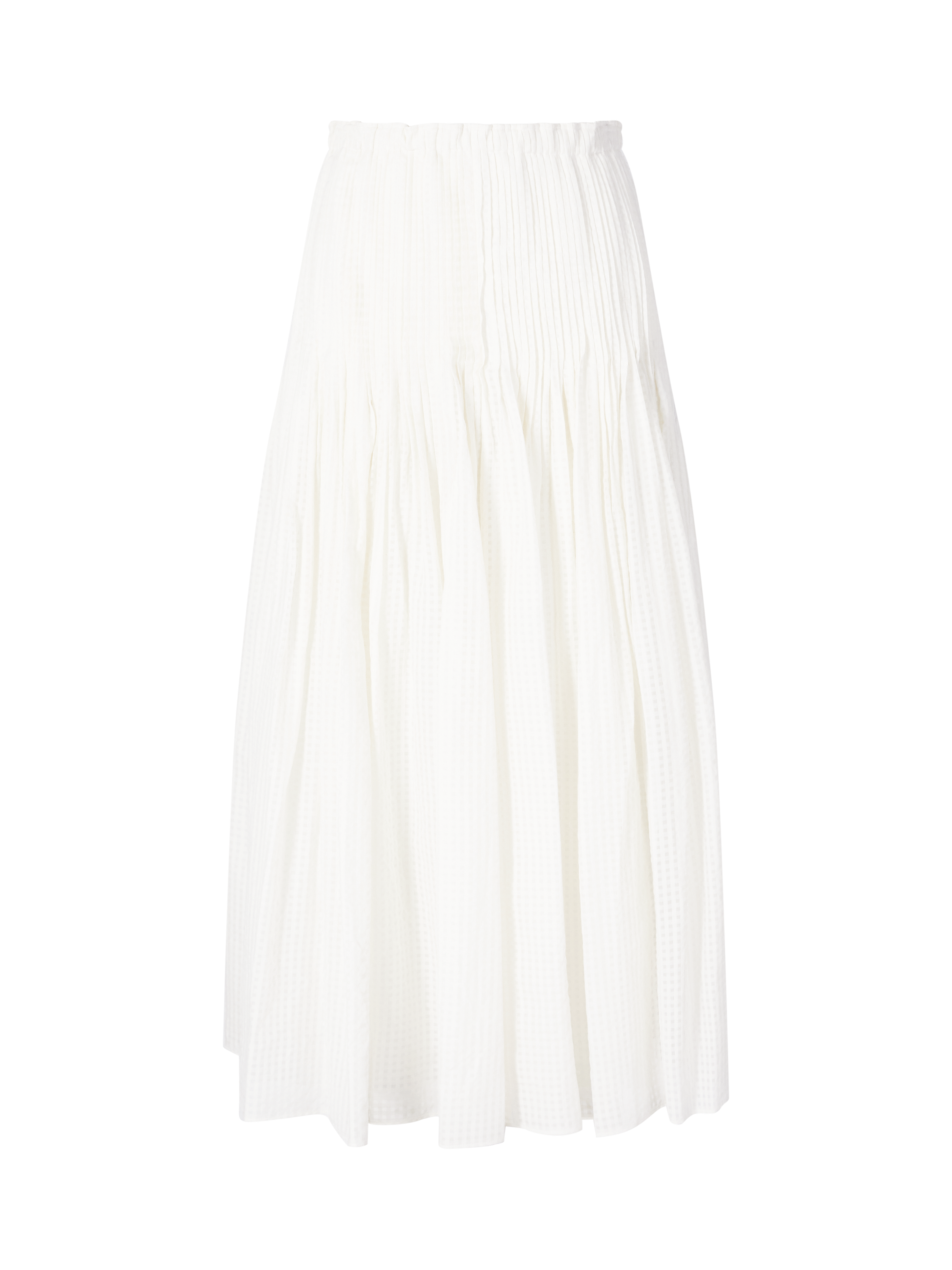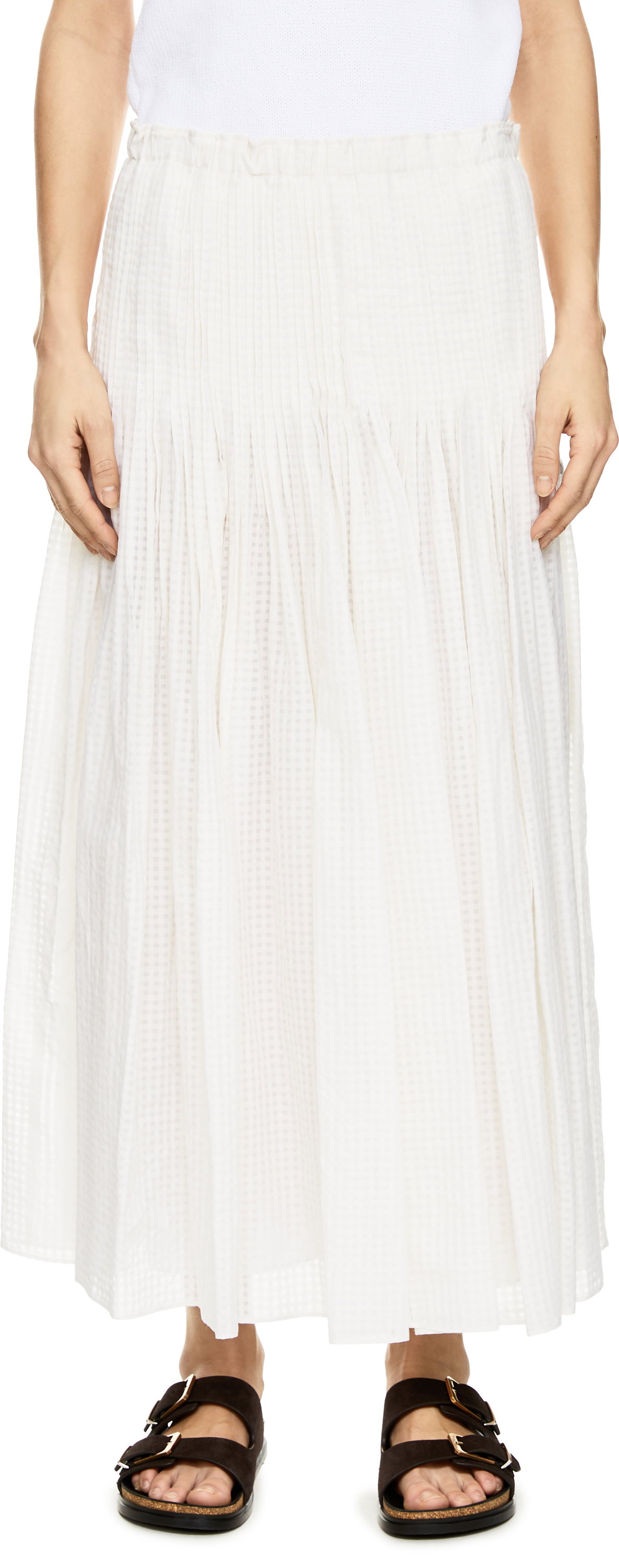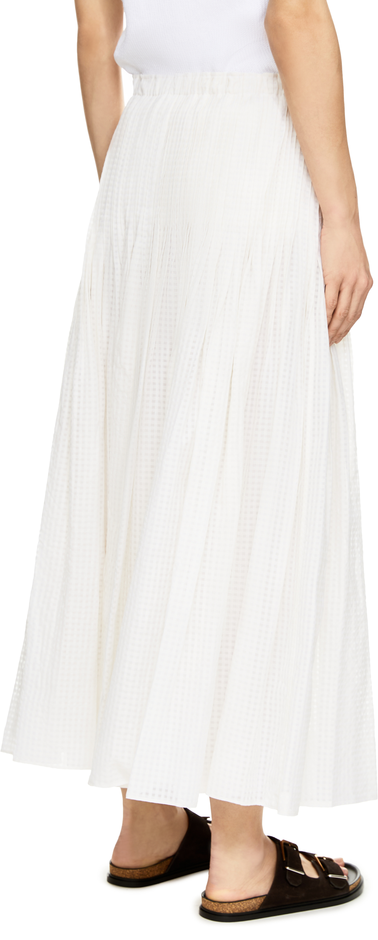 Der Rock 'Vania' in Bianco von Iris von Arnim wurde aus einer hochwertigen Baumwoll-Seidenmischung gefertigt und besticht durch die Midilänge. Die hohe Leibhöhe, der seitliche Reißverschluss, der elastische Bund sowie der Unterrock zeichnen dieses feminine Modell aus, das leicht ausgestellt ist.