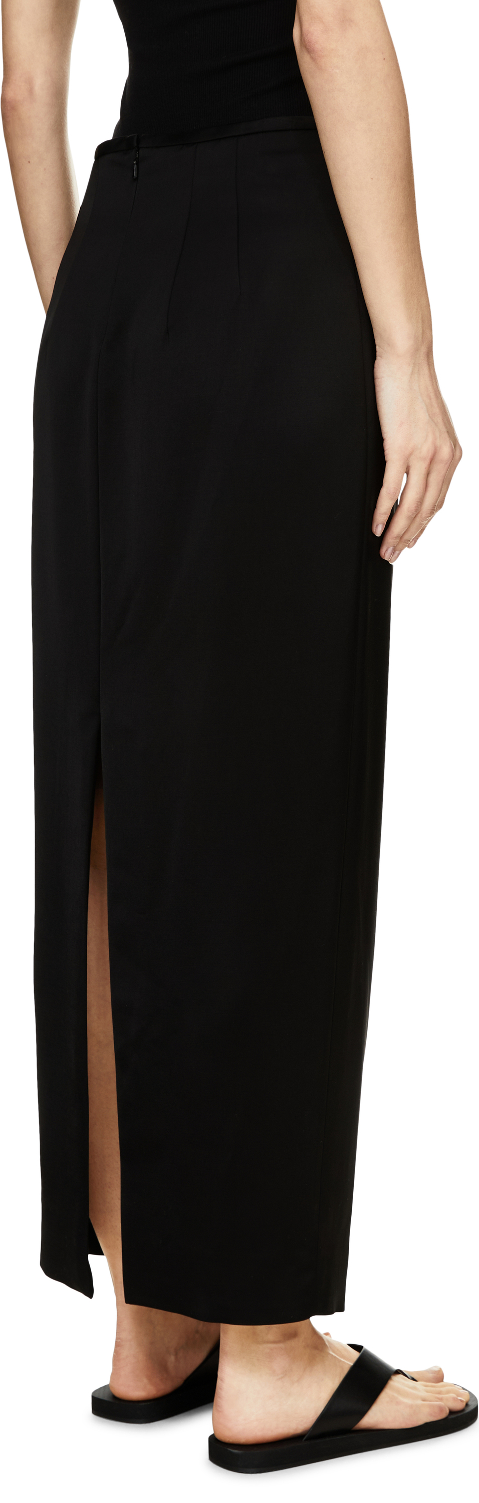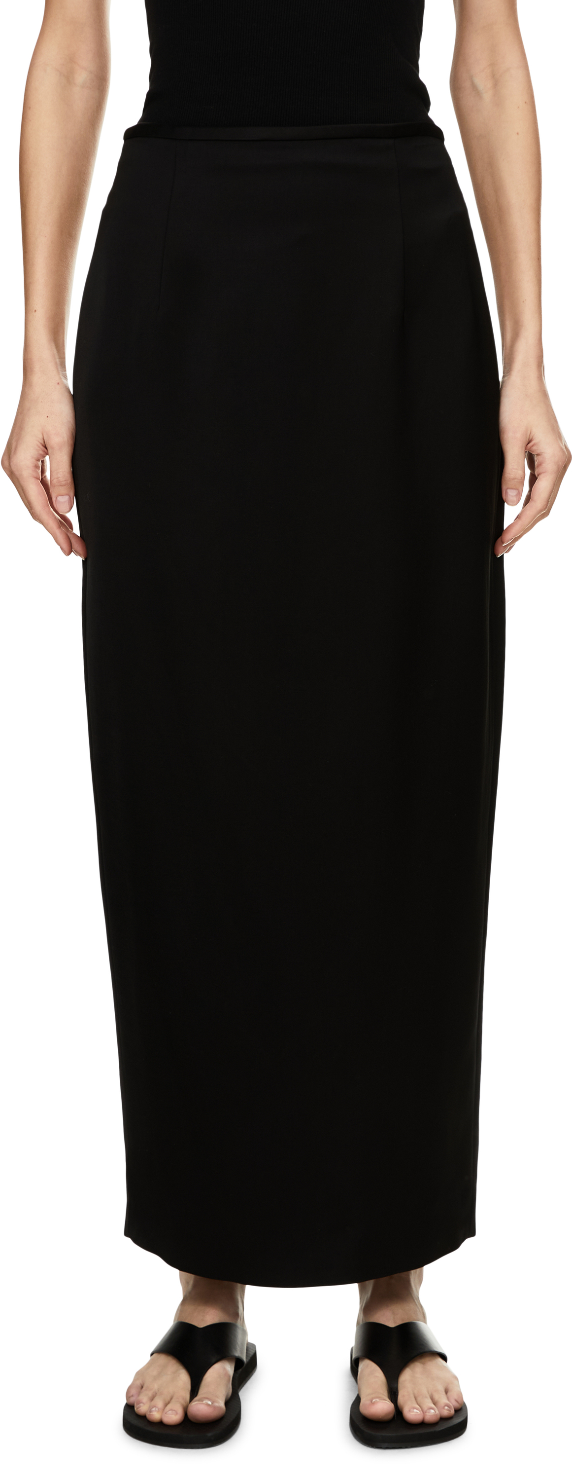 Der Rock 'Winton' in Schwarz von Khaite wurde aus Viskose gefertigt und besticht durch die Midilänge. Die hohe Leibhöhe und die taillierte Silhouette werden durch einen konturierten Bund und feine Abnäher unterstützt, die diesem femininen Modell eine perfekte Passform verleihen. Ein hinterer Schlitz sowie der verdeckte Reißverschluss runden das Design ab.