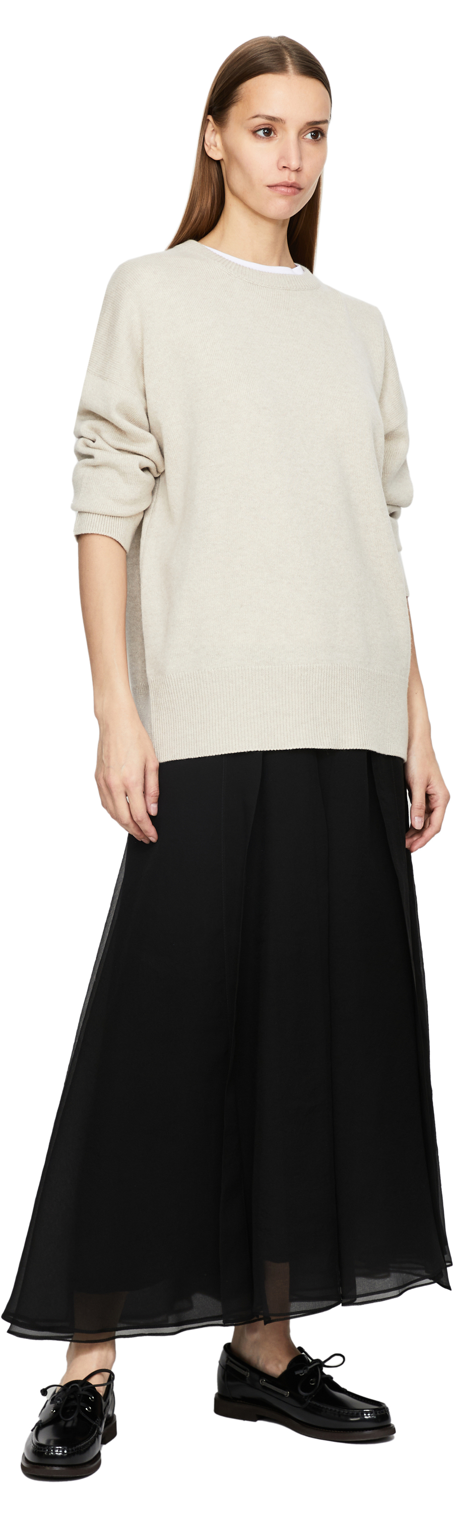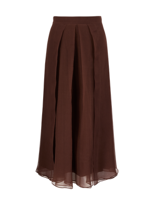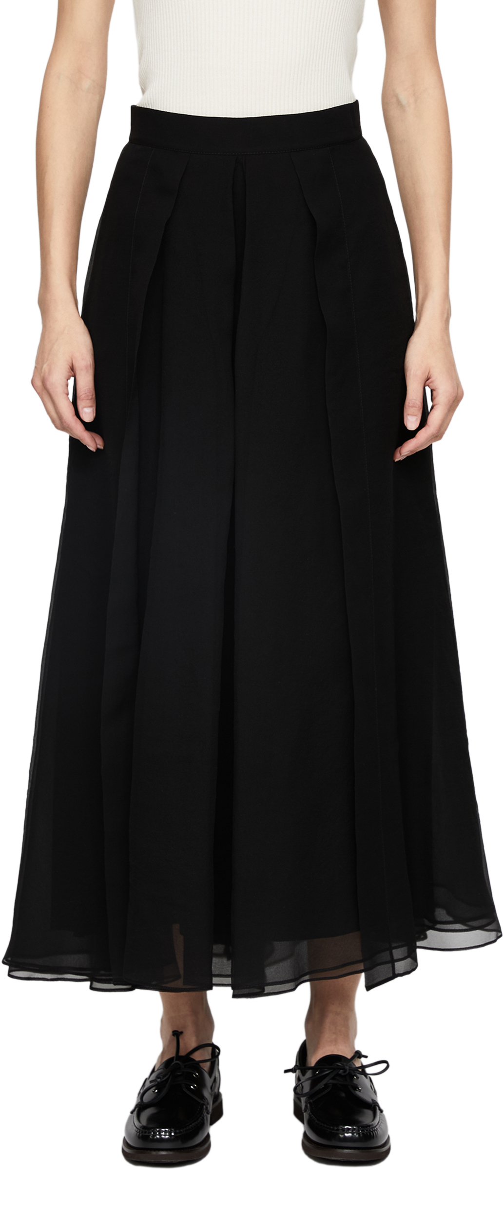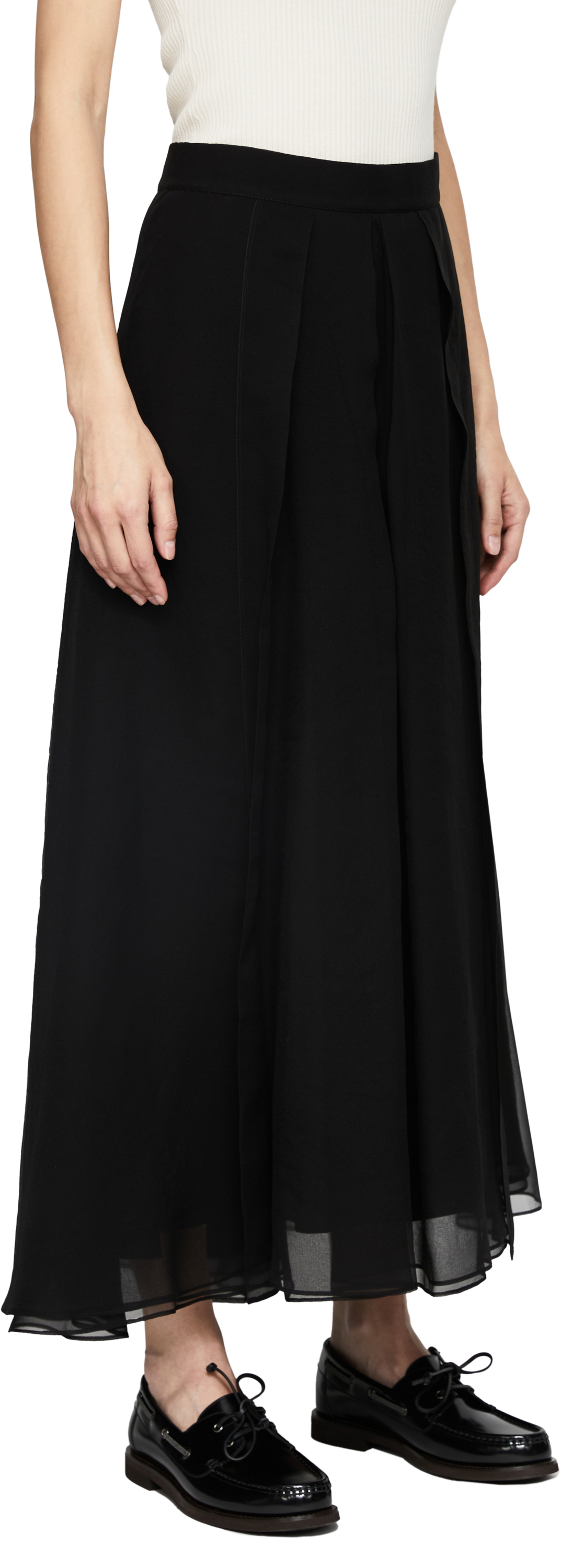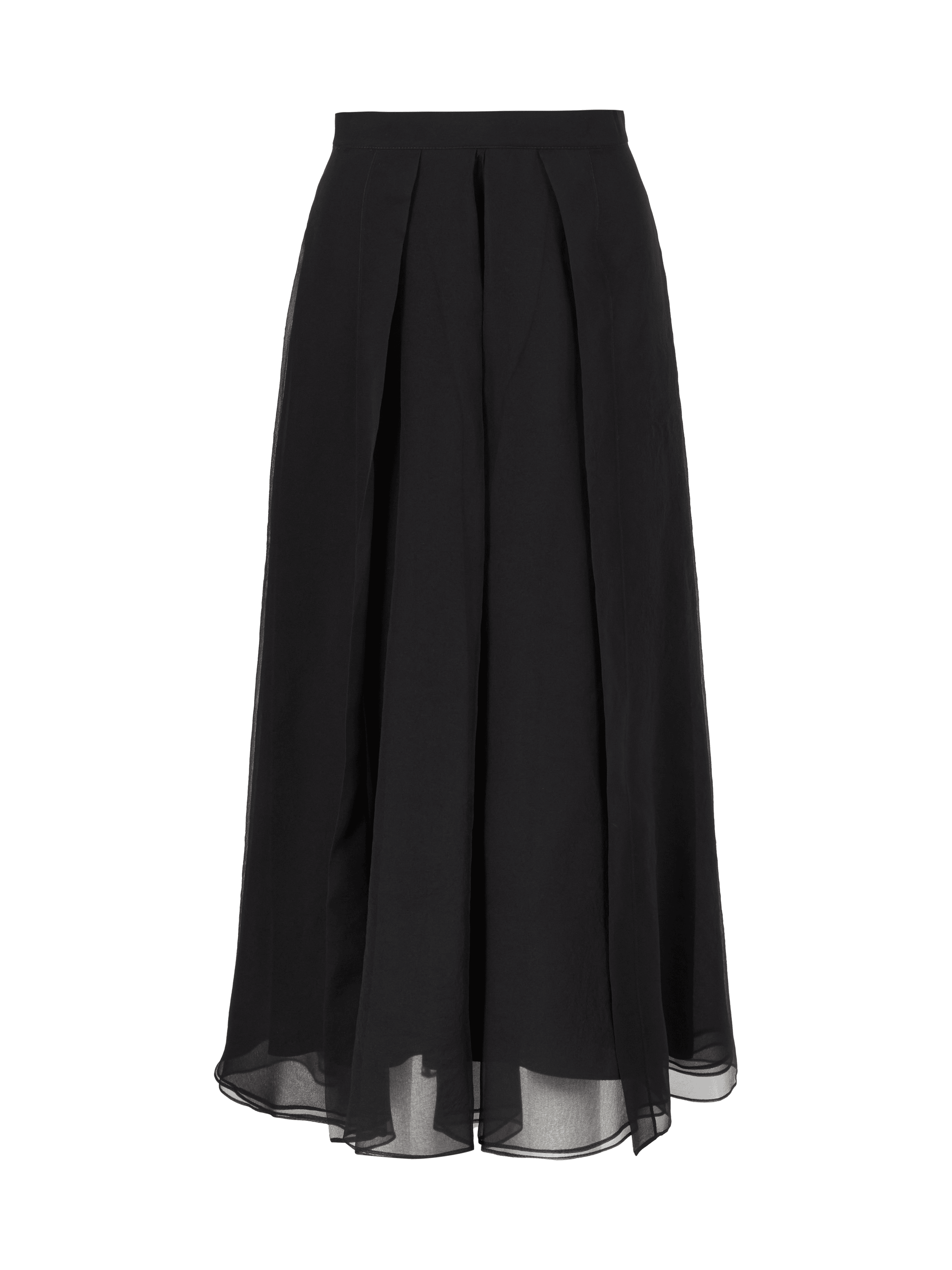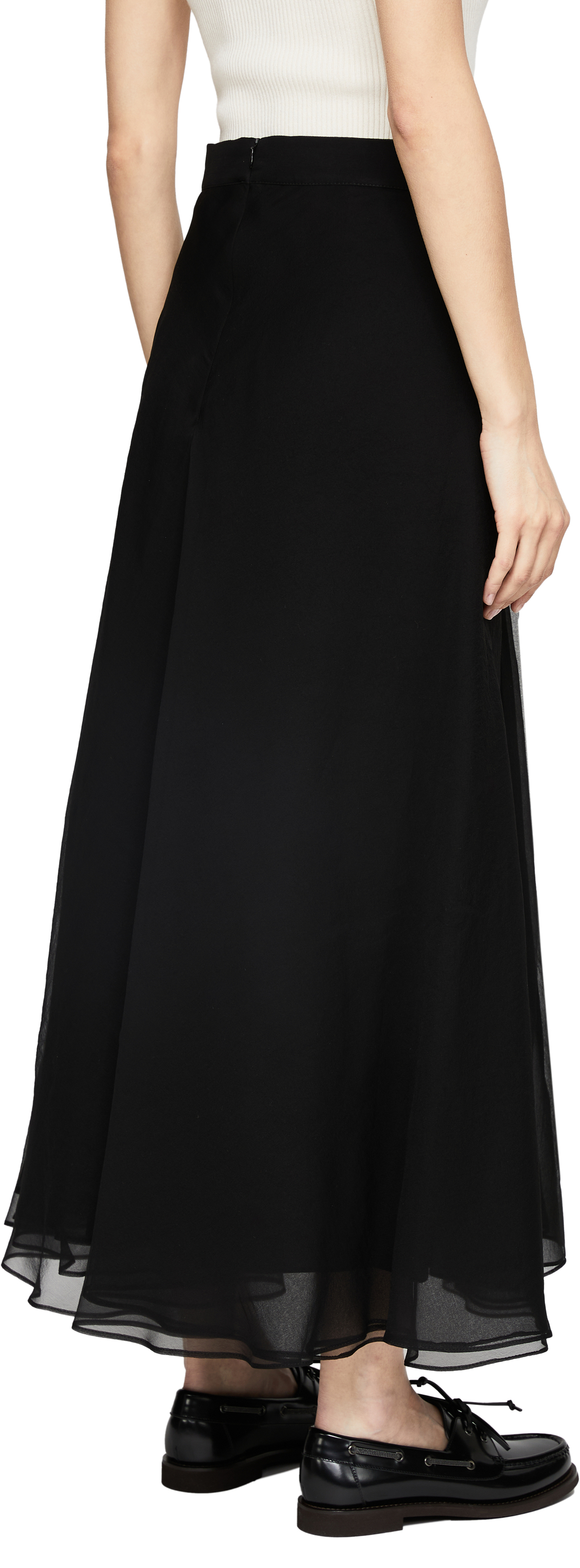 Dieser Rock in Schwarz von Brunello Cucinelli wurde aus hochwertiger Seide gefertigt und besticht durch den eleganten Lagen-Look. Die hohe Leibhöhe und die ausgestellte Silhouette zeichnen dieses feminine Modell aus. Abgerundet wird dieser Look durch den fließenden Stoff.