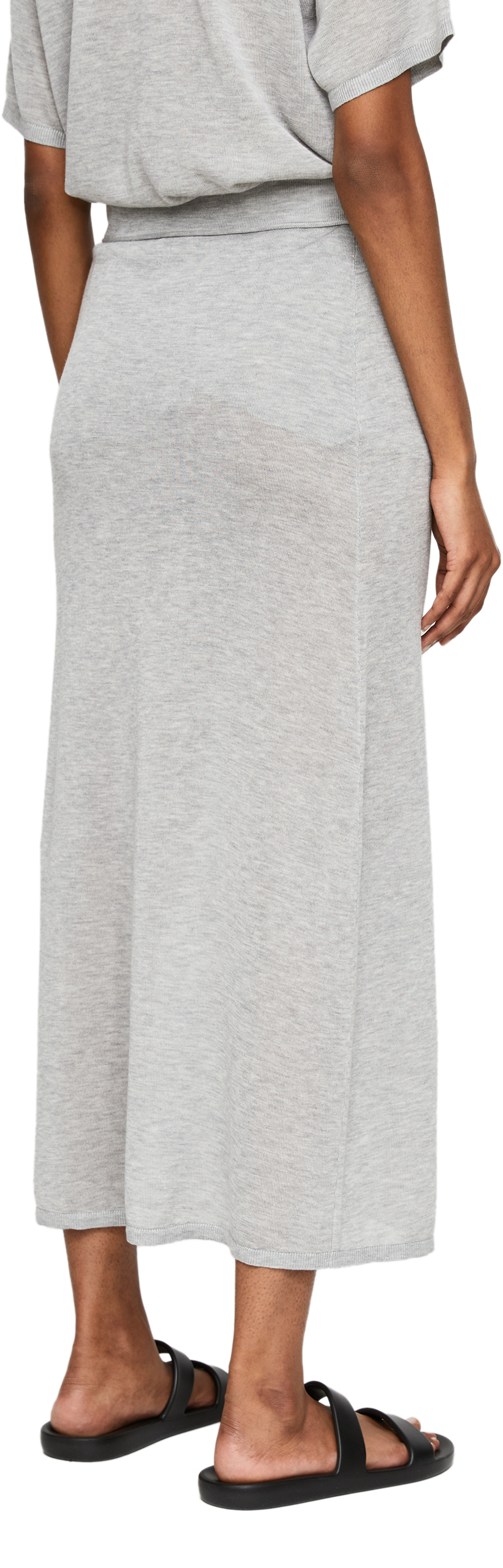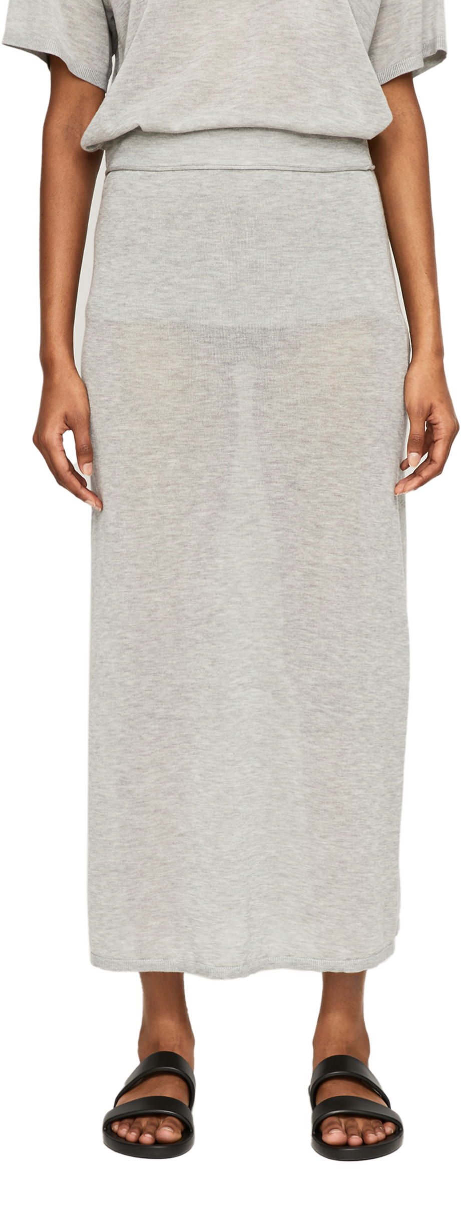 Der Rock in Grau von TOTEME wurde aus einer Lyocell-Cashmere-Mischung gefertigt und besticht durch die semitransparente Optik. Die hohe Leibhöhe und die markante Naht unterhalb des Bunds zeichnen dieses moderne Modell aus.