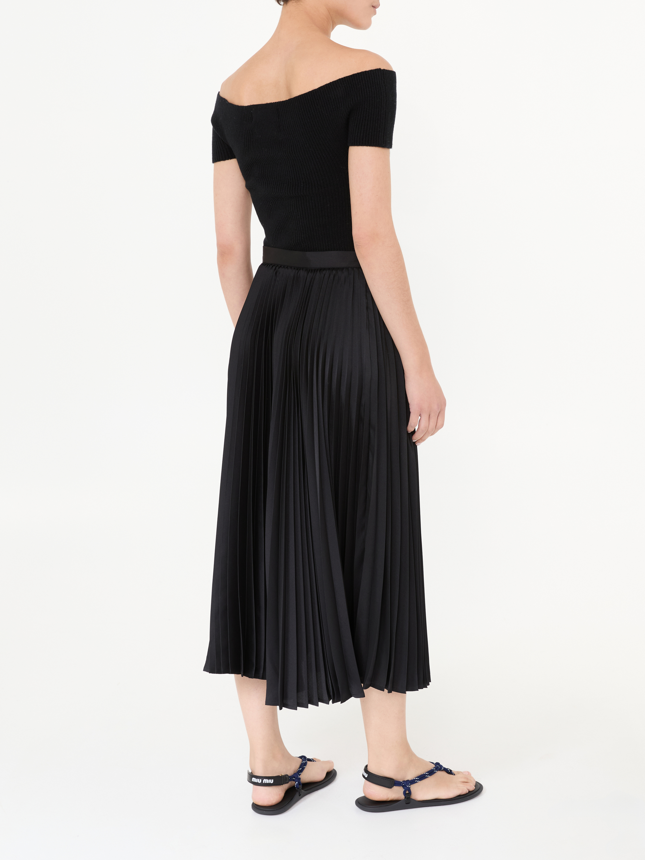 Dieser Plisseerock in Schwarz von JIL SANDER wurde aus hochwertiger Wollmischung gefertigt und besticht durch die ausgestellte Silhouette. Der leichte Stoff, der elastische Bund und die angenehme Haptik zeichnen dieses feminine Modell aus.