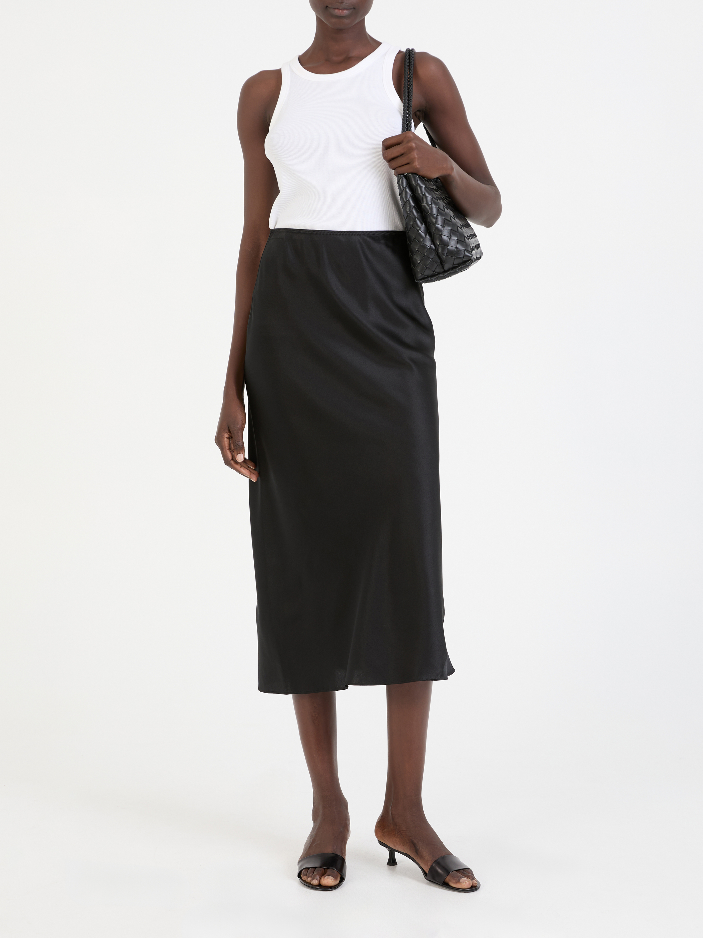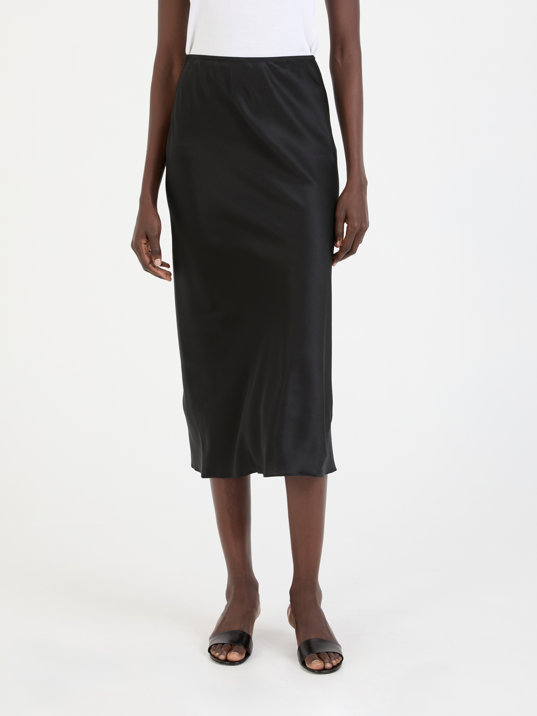 Der Rock 'Sense of Shine' in Schwarz von Dorothee Schumacher wurde aus einem hochwertigen Seidengemisch gefertigt und besticht durch die fließende Optik. Die Maxilänge und der schmale, elastische Bund betonen die feminine Silhouette.