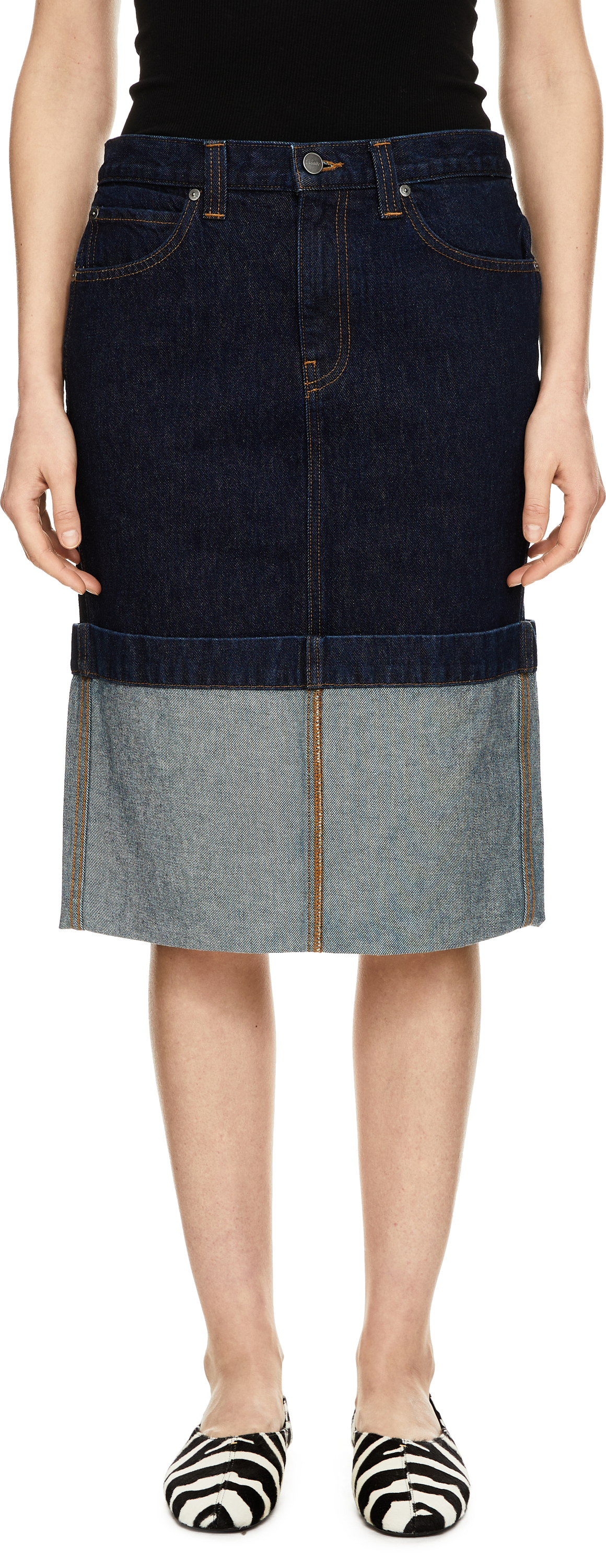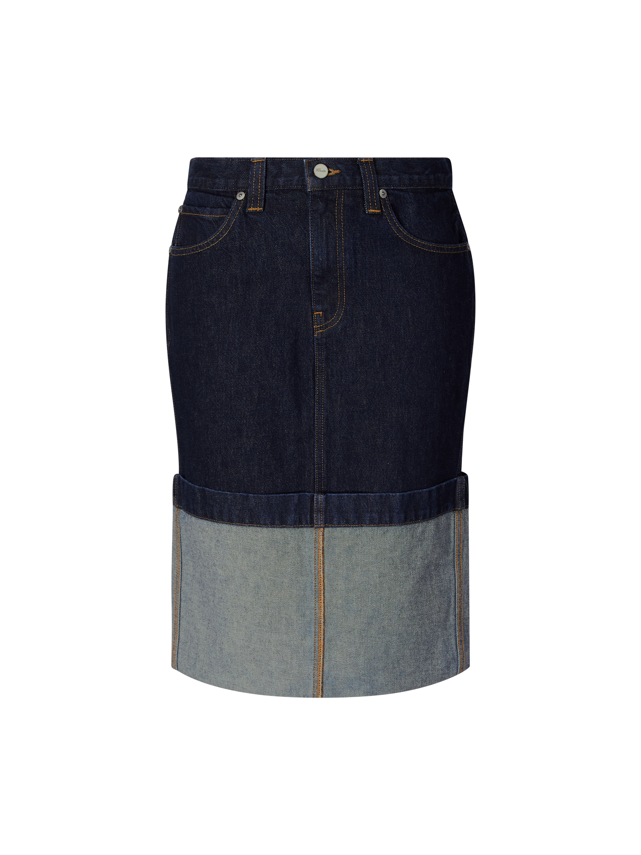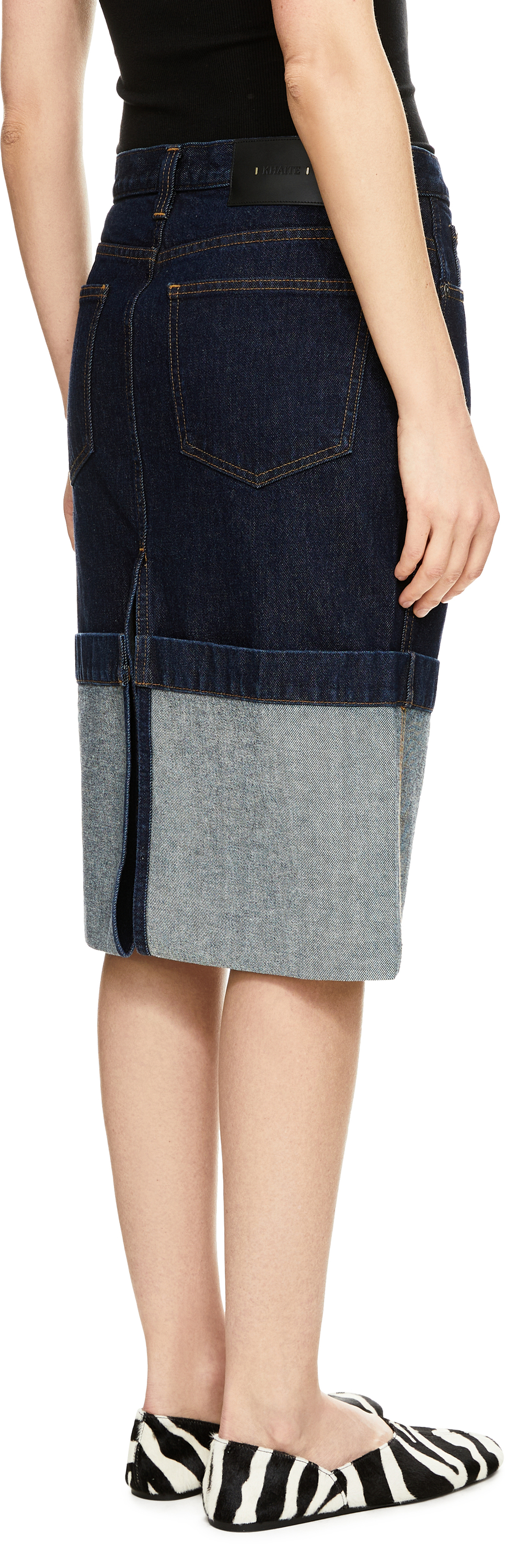 Der Rock 'Kilian' in Blau von Khaite wurde aus hochwertiger Baumwolle gefertigt und besticht durch den raffinierten Umschlagsaum. Die schmal zulaufende Silhouette verleiht dem Modell eine feminine Passform und wird durch den rückseitigen Gehschlitz für mehr Bewegungsfreiheit ergänzt. Kontrastierende Nähte setzen moderne Akzente und runden das Design harmonisch ab.