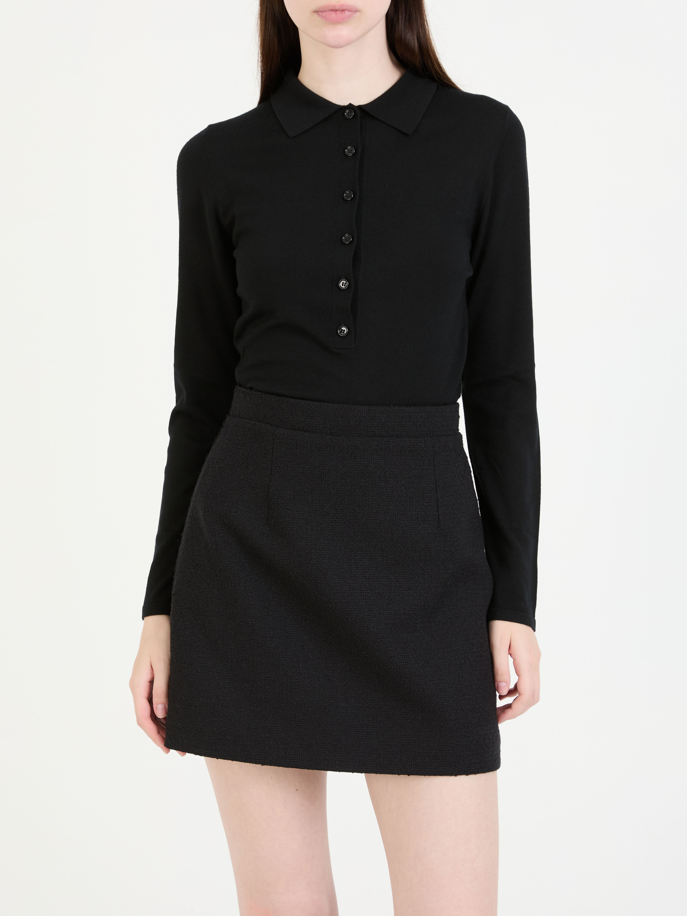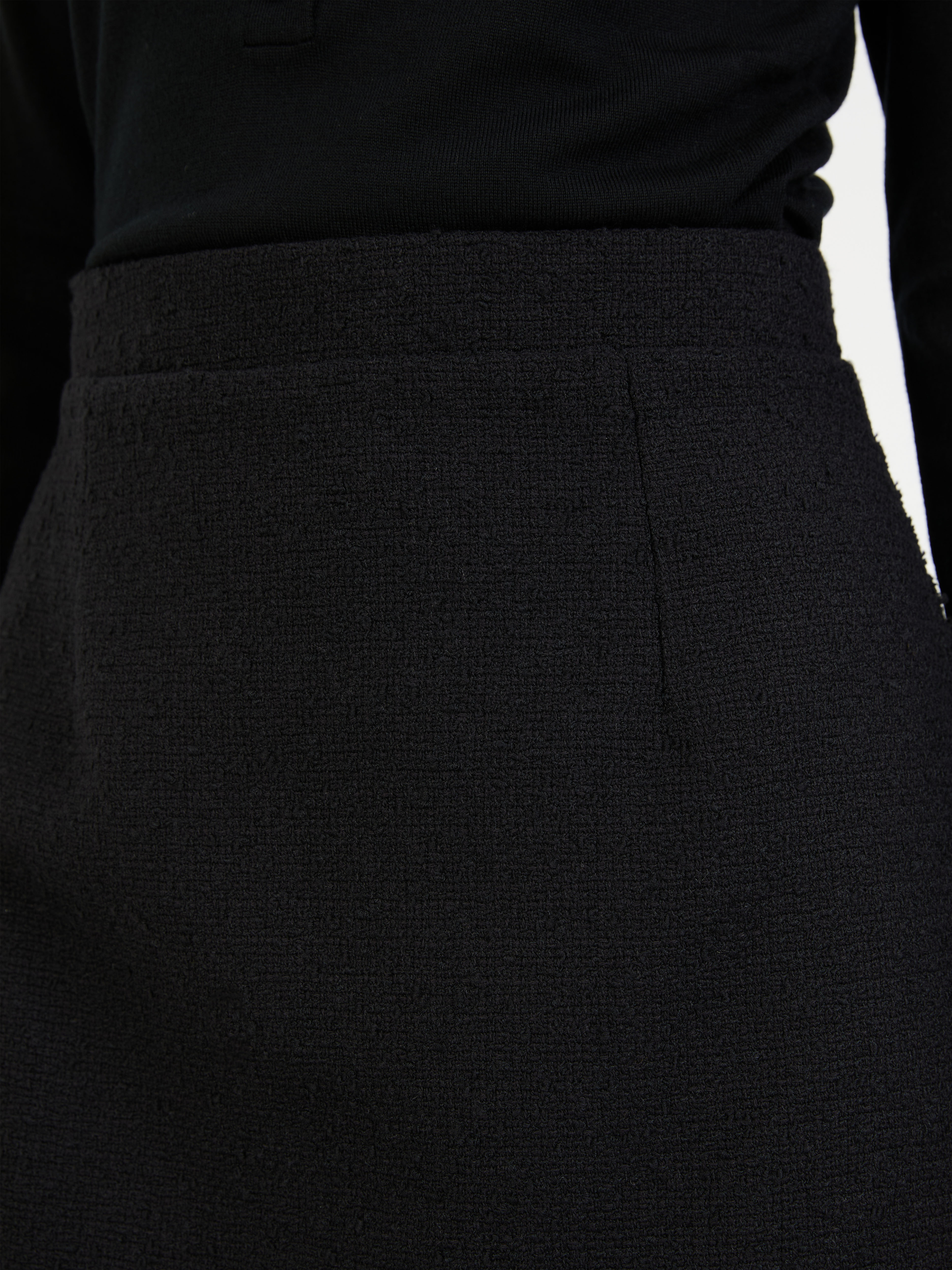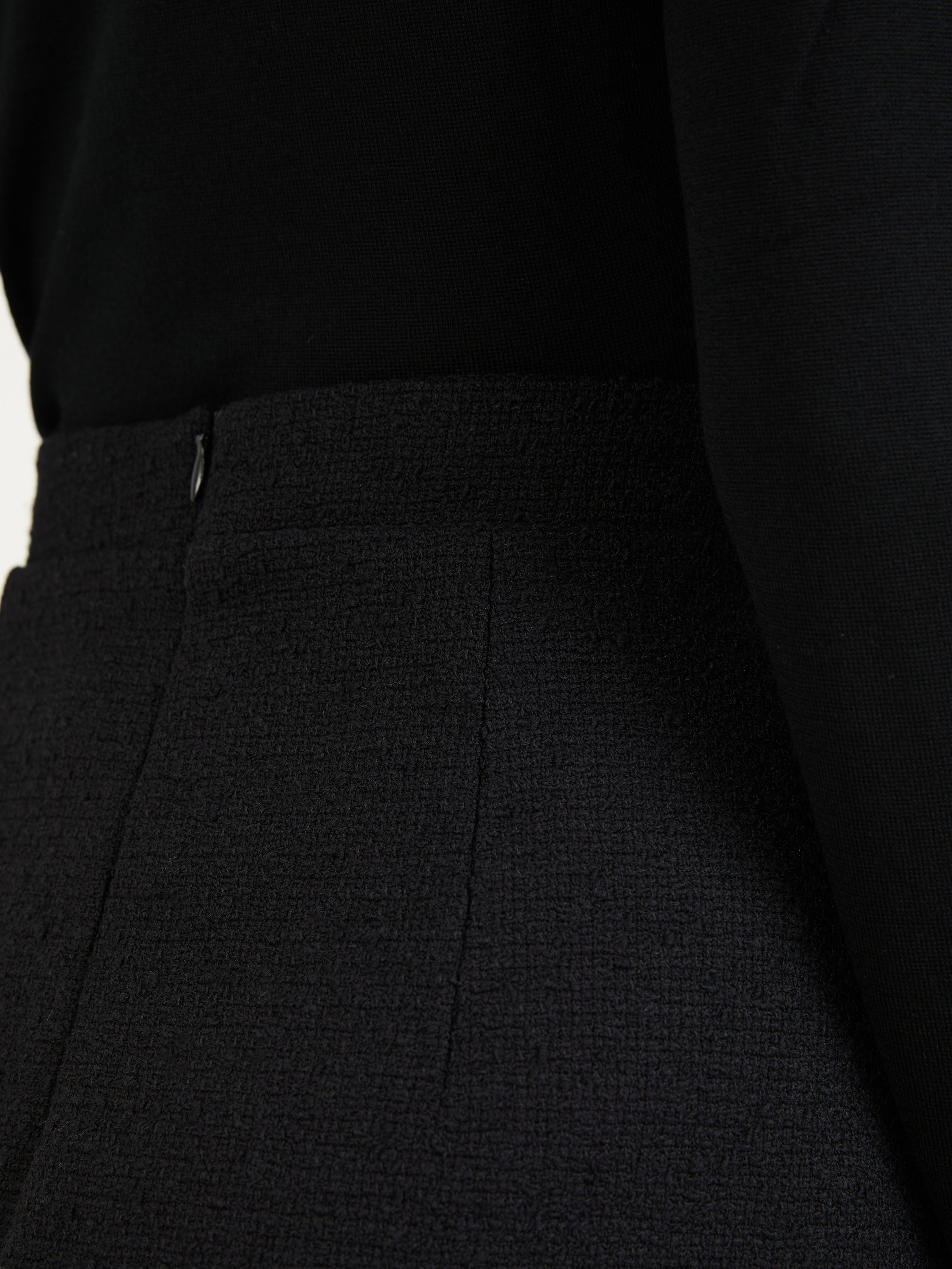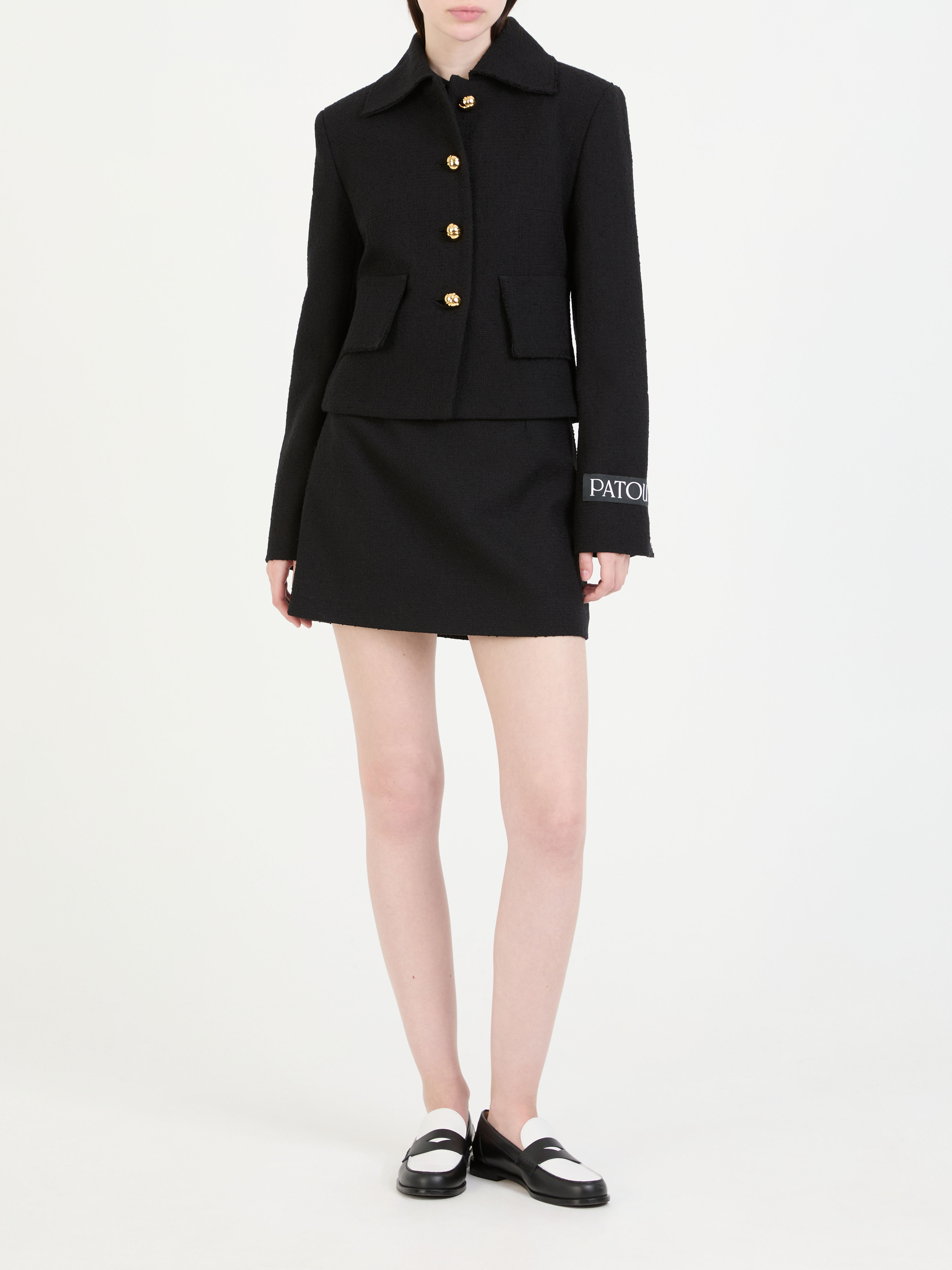 Dieser Rock in Schwarz von PATOU wurde aus nachhaltiger Wolle und Bio-Baumwolle gefertigt und besticht durch Tweed-Optik. Die Minilänge und die Abnäher vorne und hinten zeichnen dieses Modell aus.