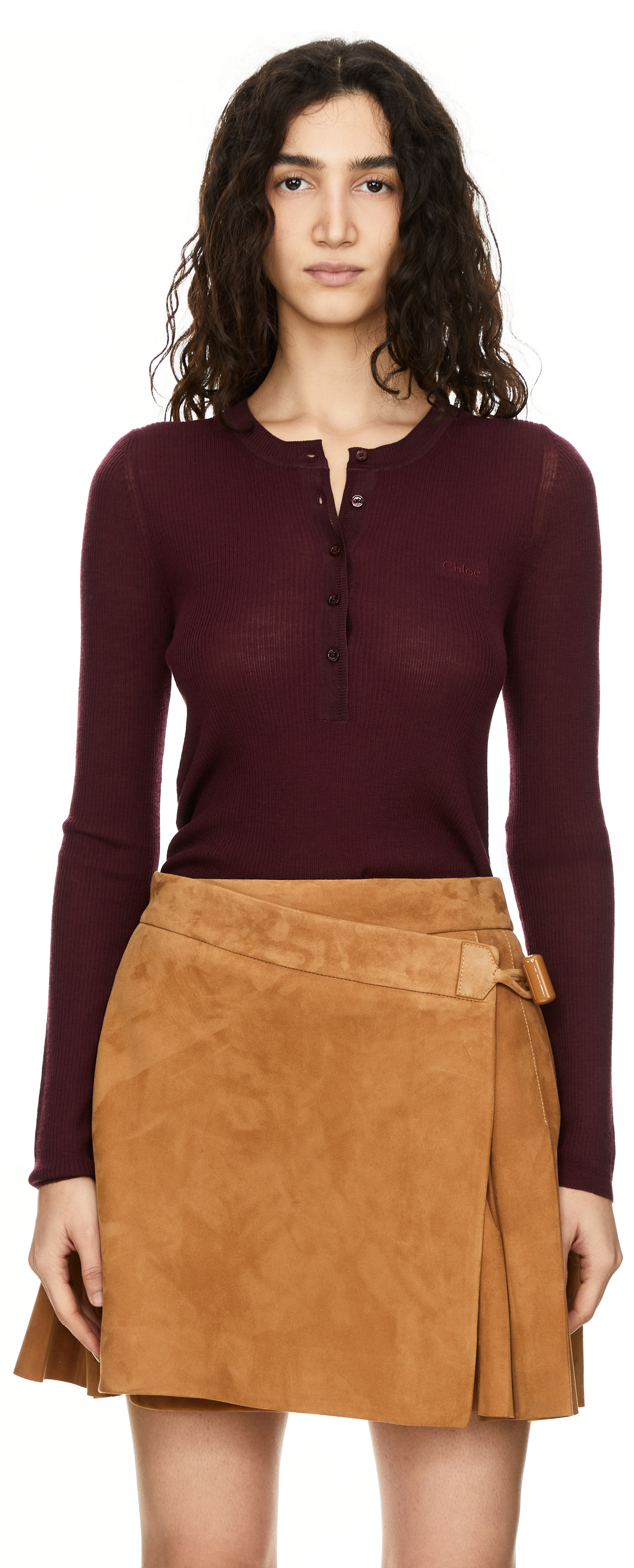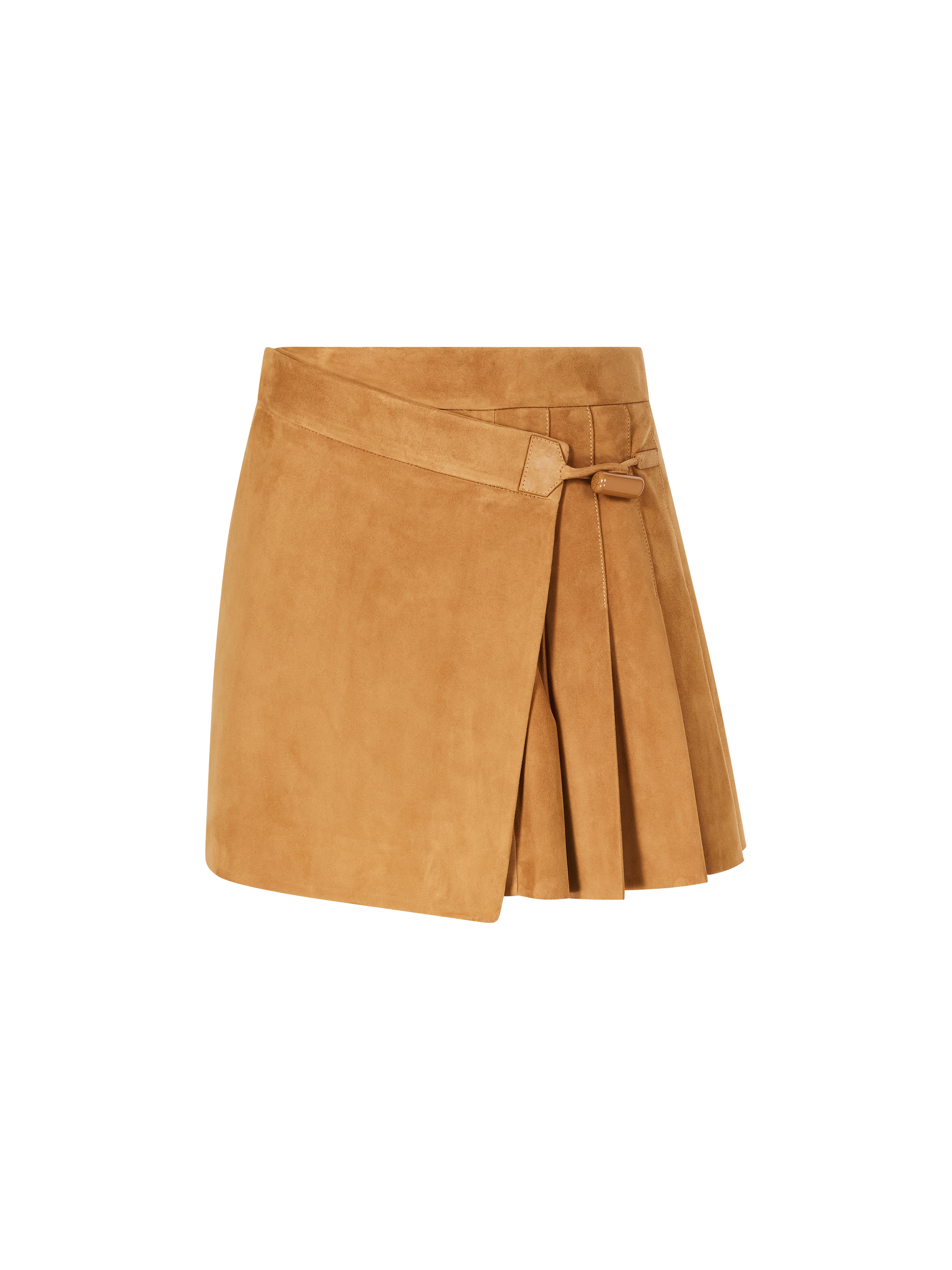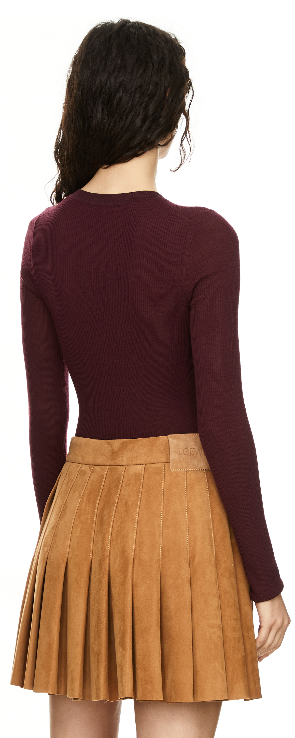 Dieser Rock in Braun von LOEWE wurde aus feinem Lammleder gefertigt und besticht durch die normale Passform. Die Wickeloptik mit Falten auf der Vorder- und Rückseite, ein gravierter Anagram-Knopf auf der Vorderseite, der verdeckte seitliche Knopfverschluss sowie der LOEWE-Lederaufnäher mit Prägung auf der Rückseite verleihen dem Modell eine elegante und moderne Ausstrahlung.