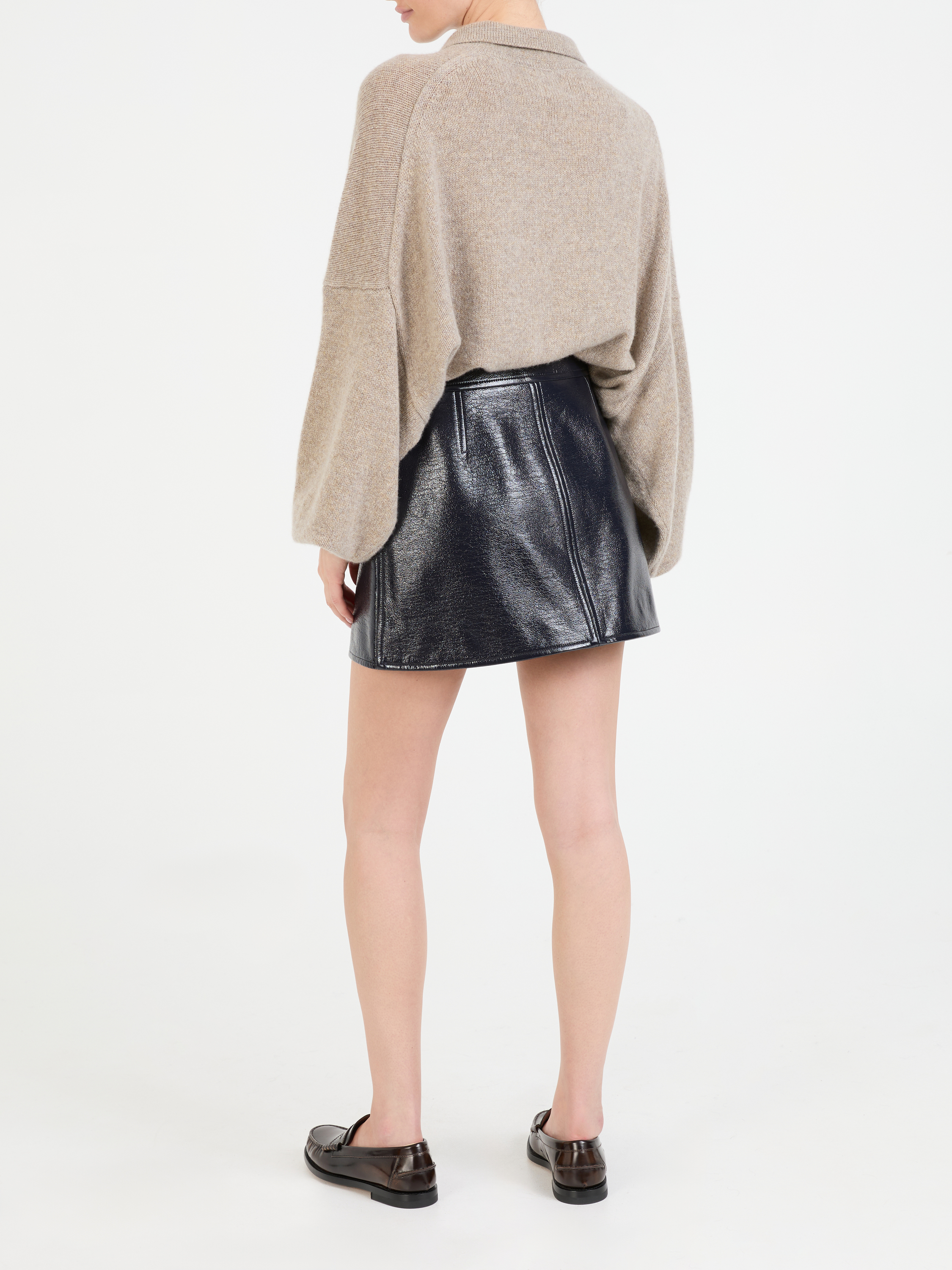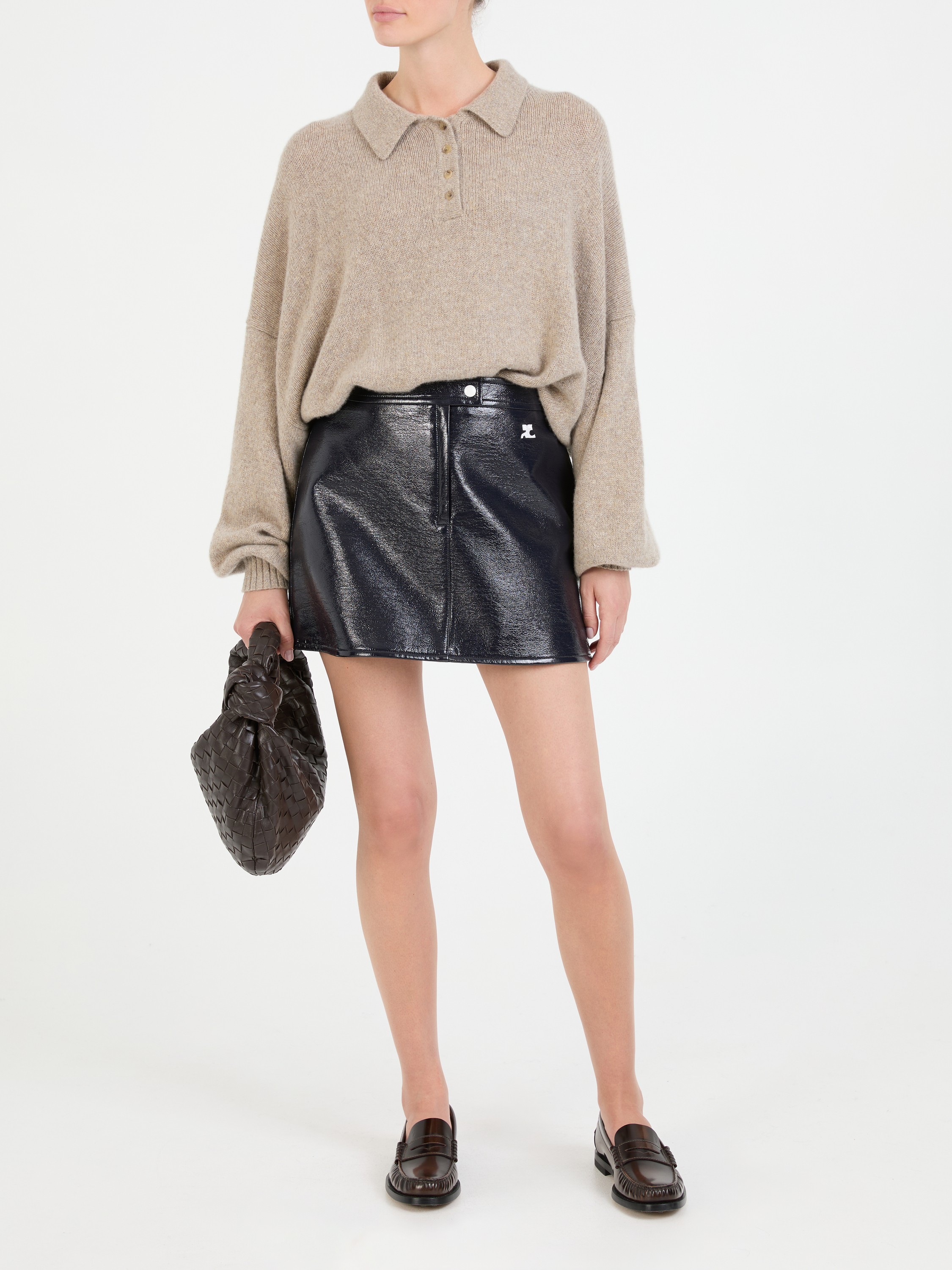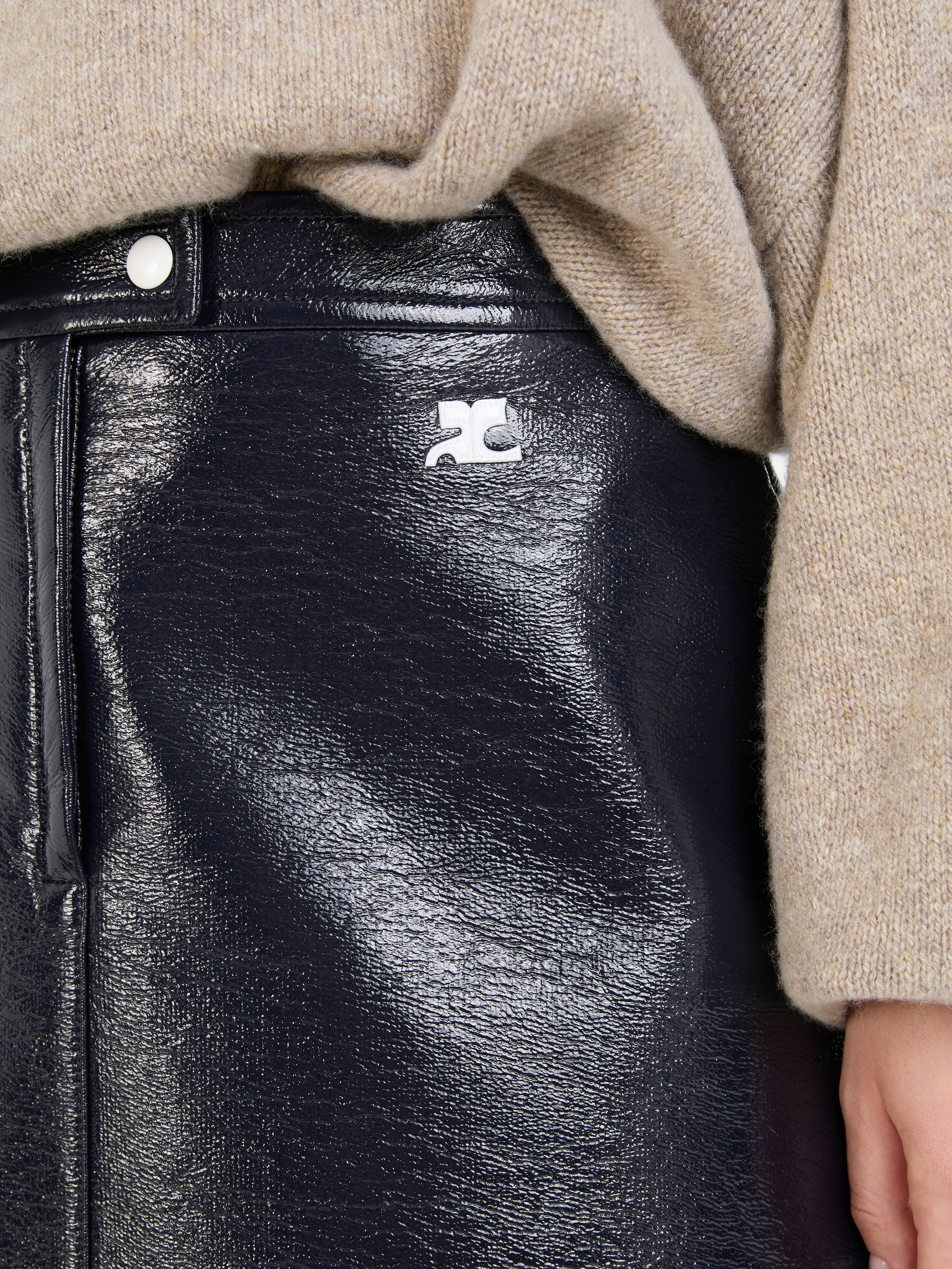 Der Rock 'Reedition' in Marineblau von courrèges wurde aus einem Baumwollgemisch gefertigt und besticht durch die Minilänge. Die mittlere Leibhöhe und die leicht ausgestellte Silhouette zeichnen dieses moderne Modell aus. Die glänzende Optik vollenden diesen Look.