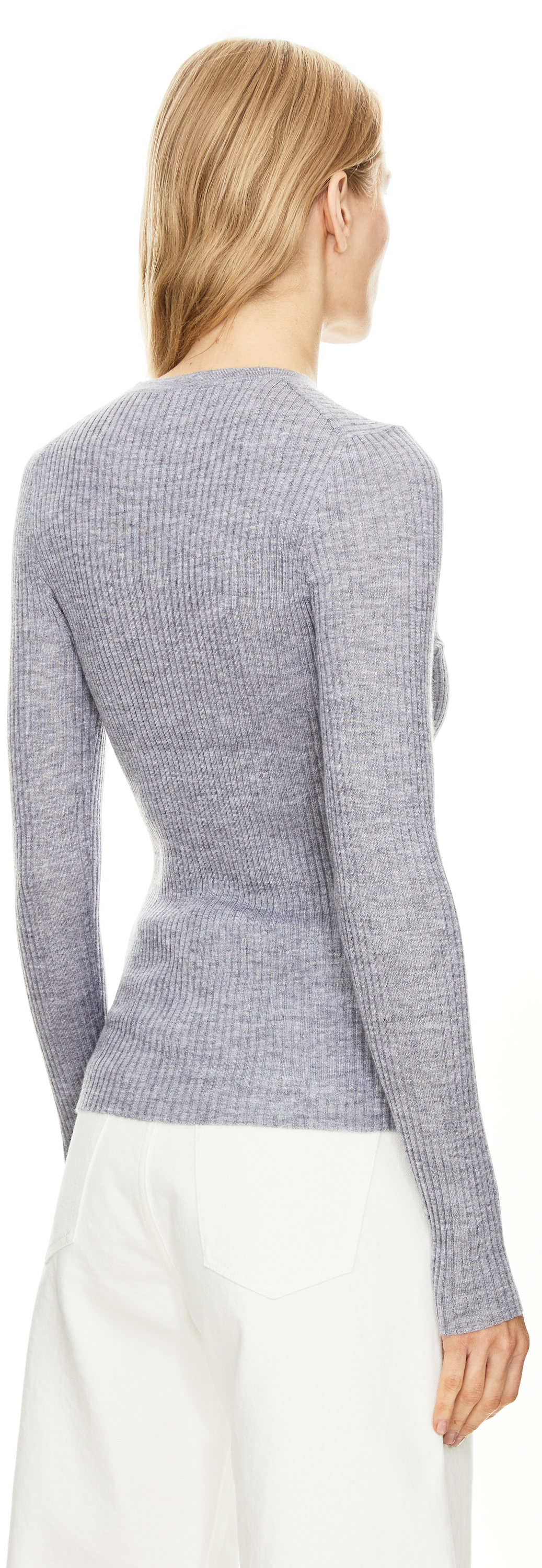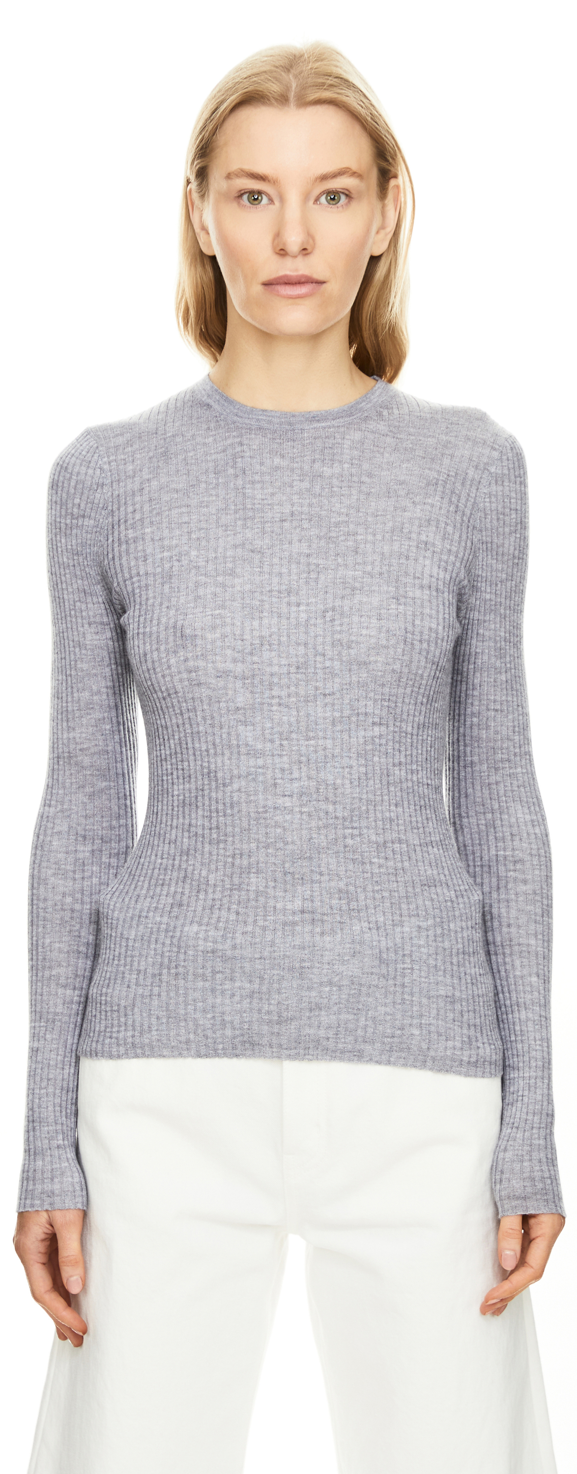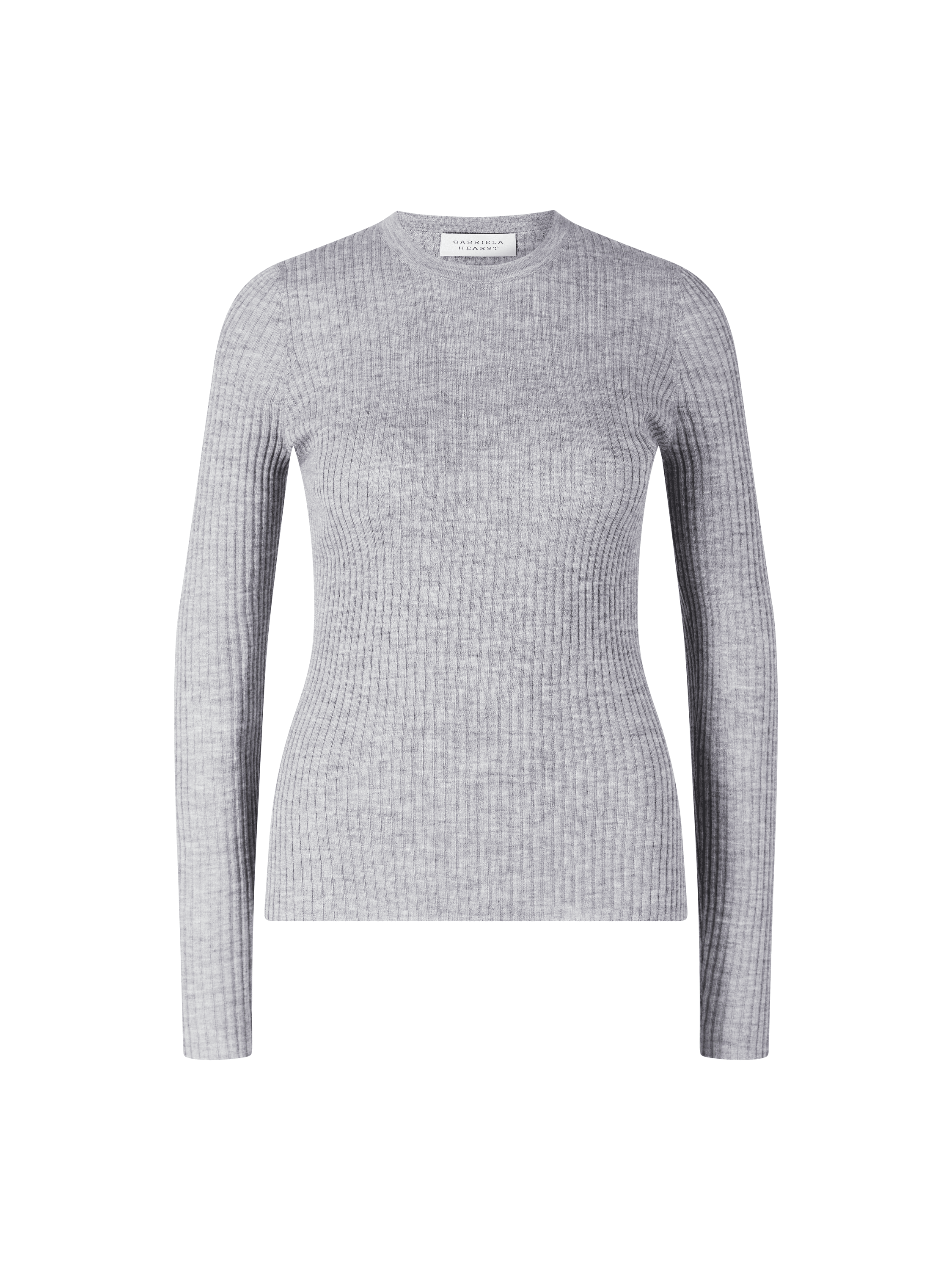 Das Shirt 'Browning' in Grau von Gabriela Hearst wurde aus einer weichen Cashmere-Seidenmischung gefertigt und besticht durch die feine Rippstruktur. Die figurbetonte Passform und der Rundhalsausschnitt unterstreichen die puristische Linie des Modells.
