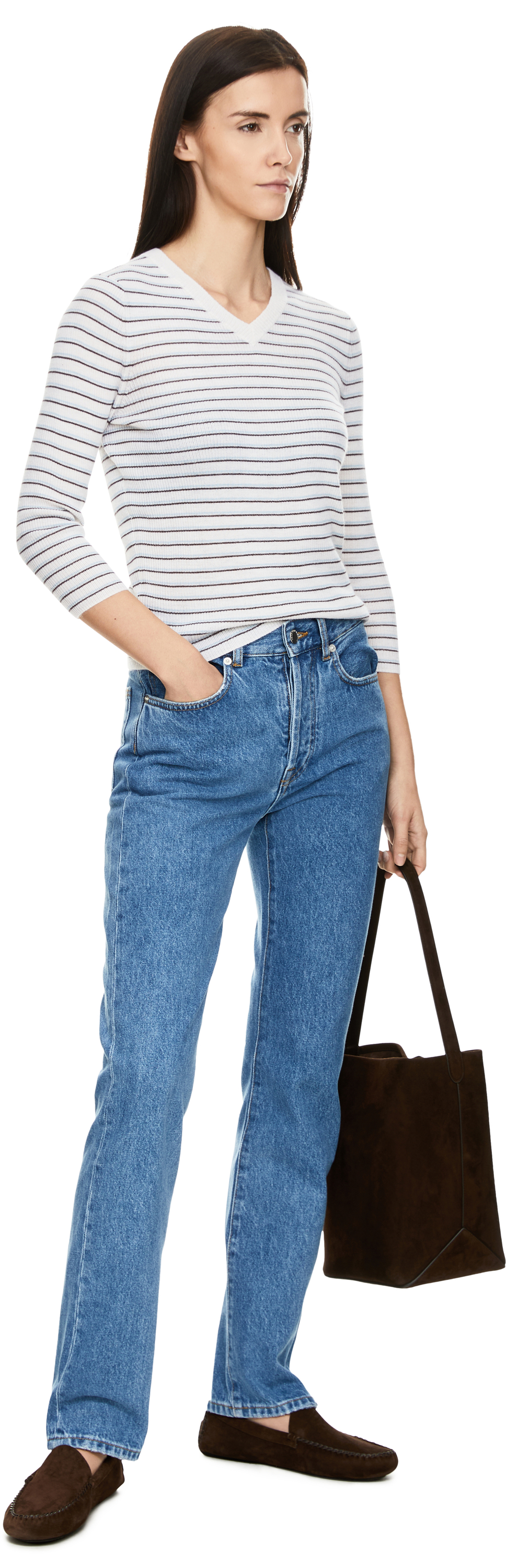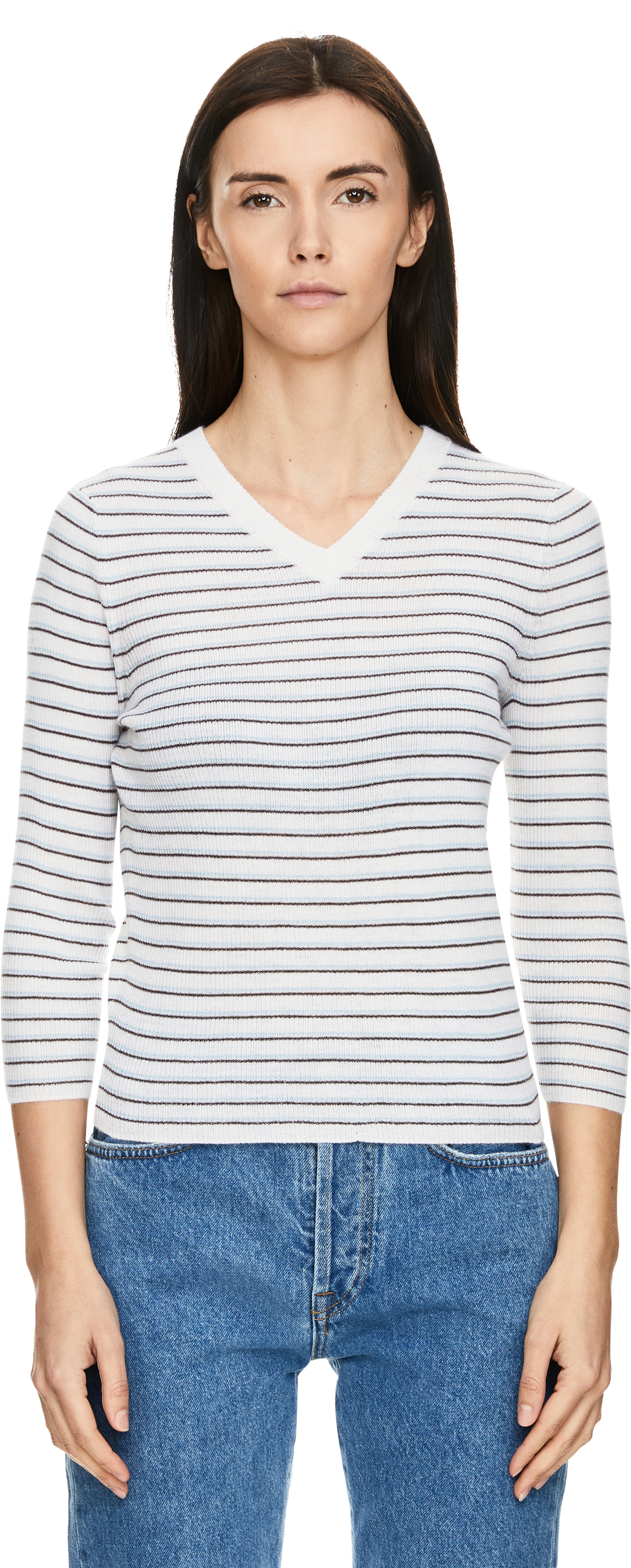 Gestreiftes Cashmere-Seidenpullover in Hellgrau
