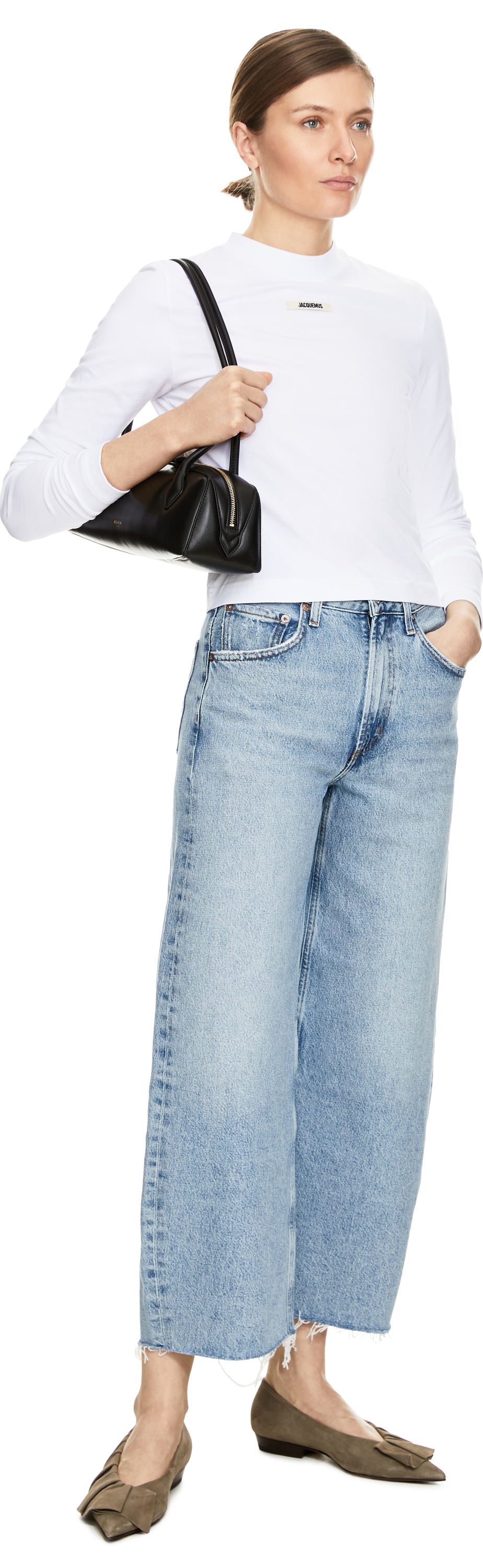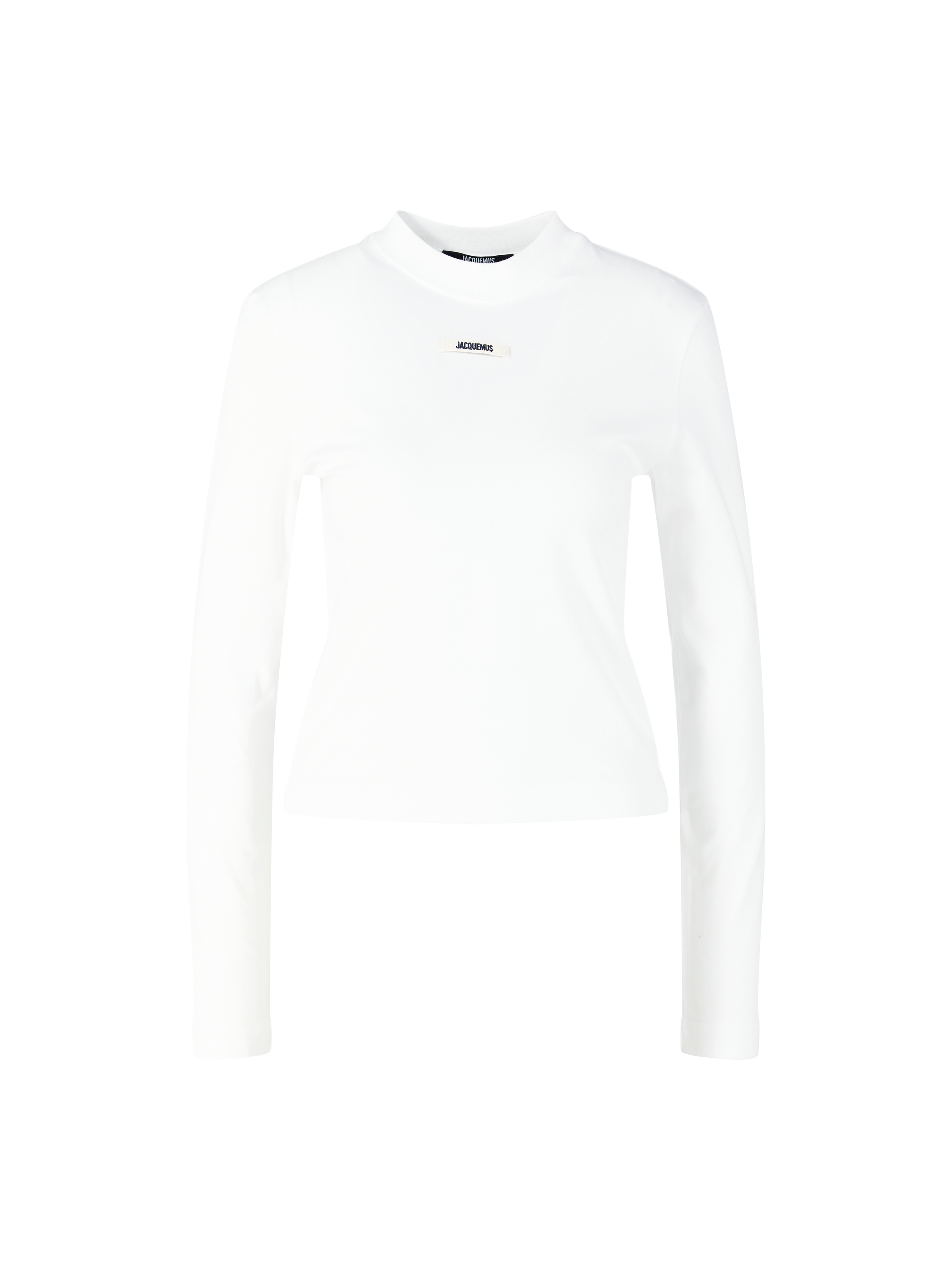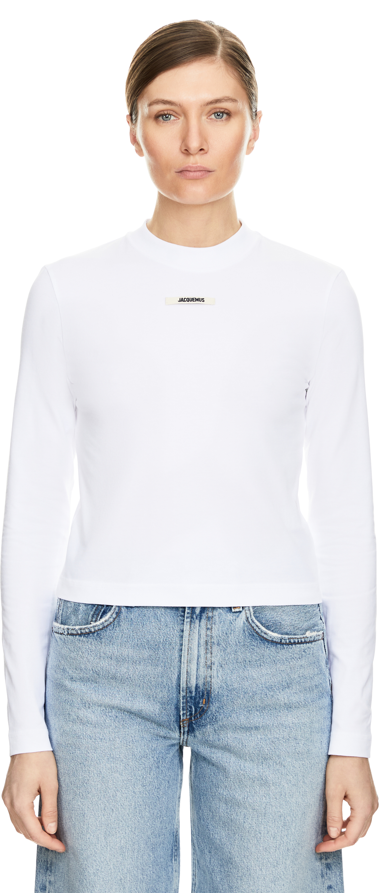 Das Langarmshirt 'Le Tshirt Gros Grain' in Weiß von JACQUEMUS wurde aus einer Baumwollmischung gefertigt und besticht durch den geraden Schnitt. Der Rundhalsausschnitt, das Label-Badge auf der Vorderseite sowie die weiche Haptik zeichnen dieses Modell aus.