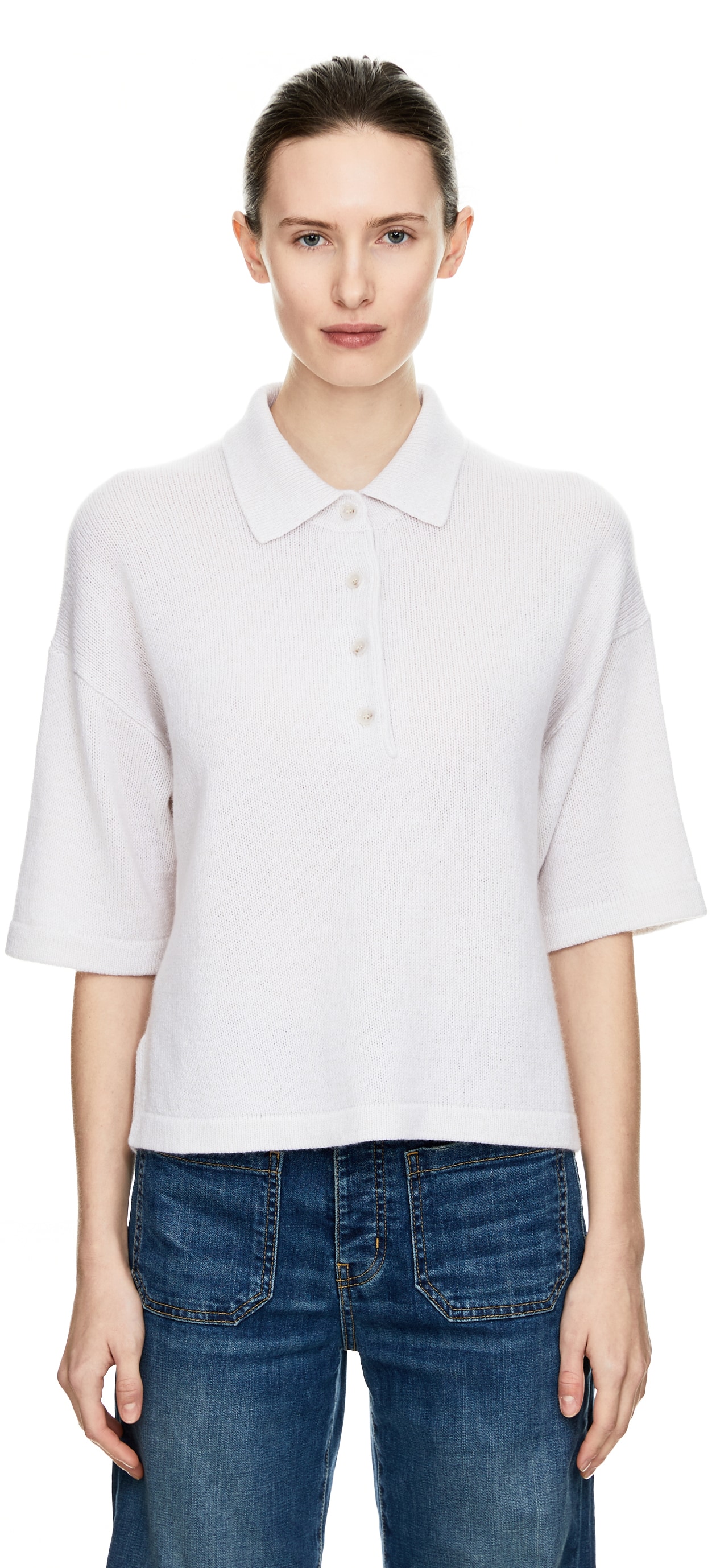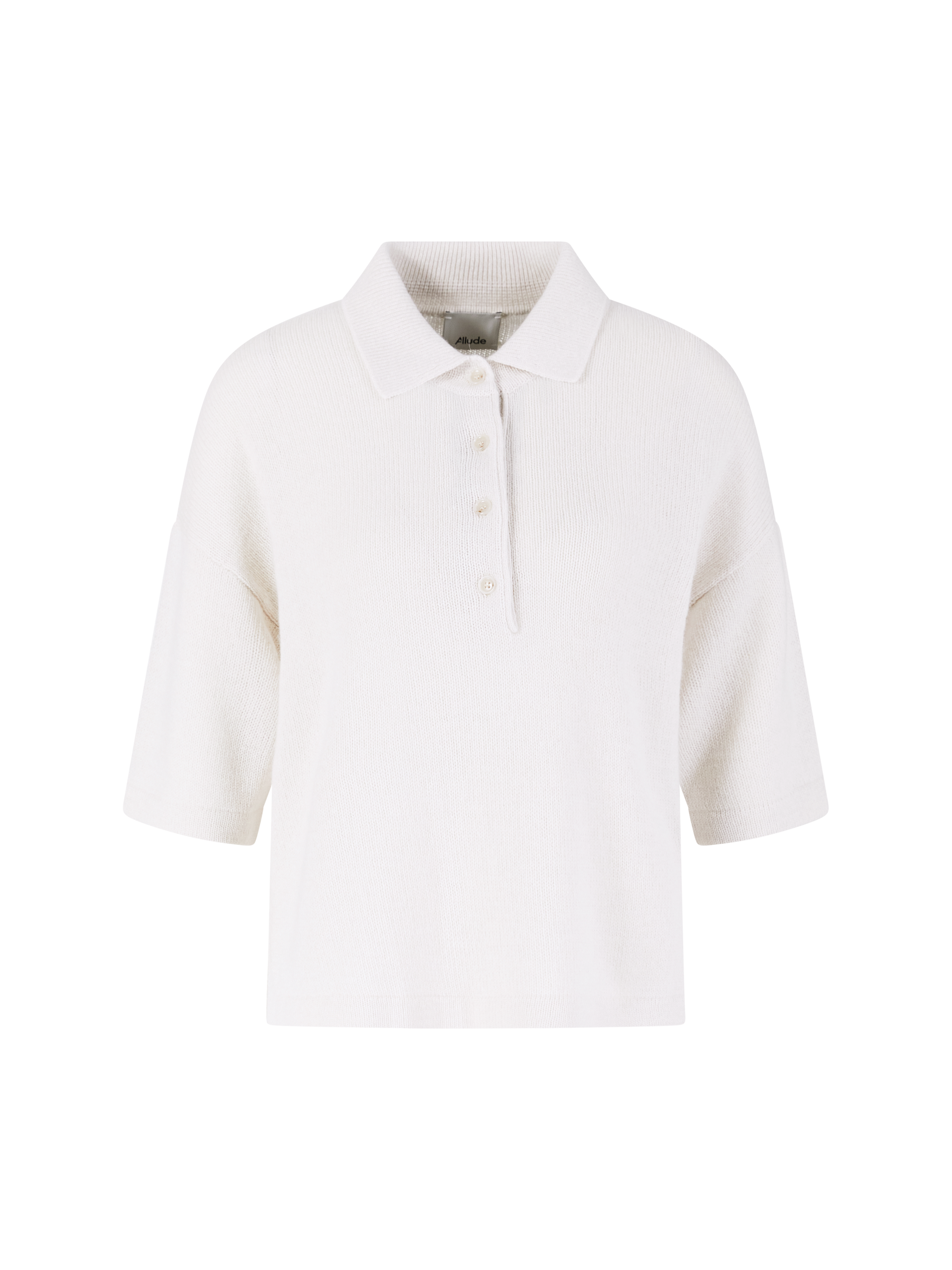 Dieser Pullover in Hellgrau von Allude wurde aus reinem Cashmere gefertigt und besticht durch die seidige Haptik. Der Polokragen, die gerade Passform und die verkürzte Knopfleiste setzten einen eleganten Akzent.
