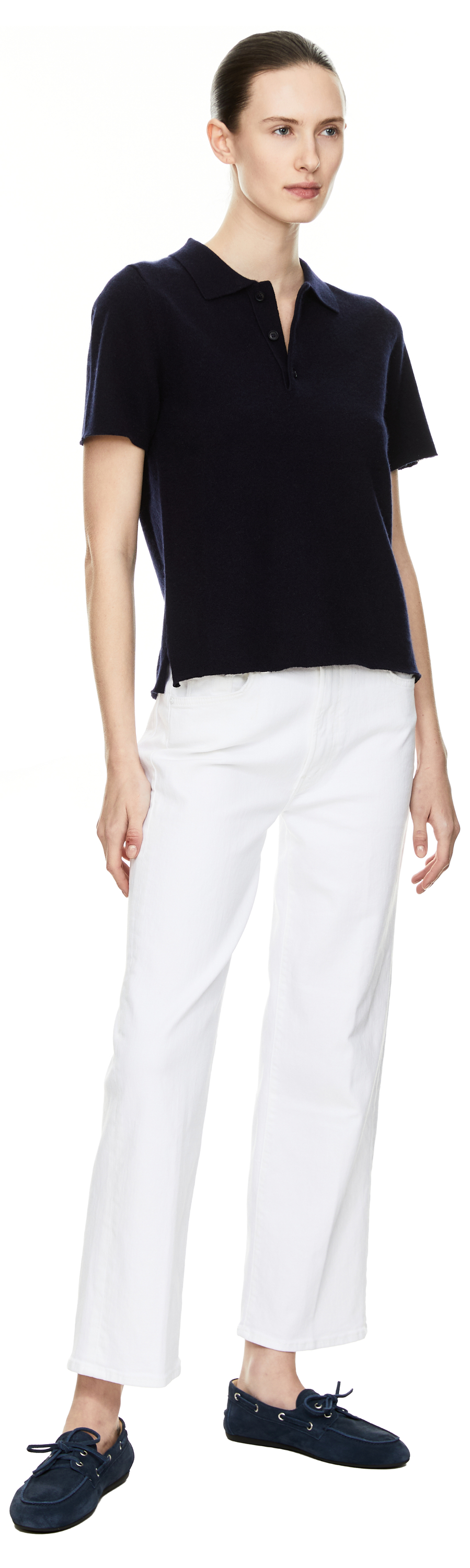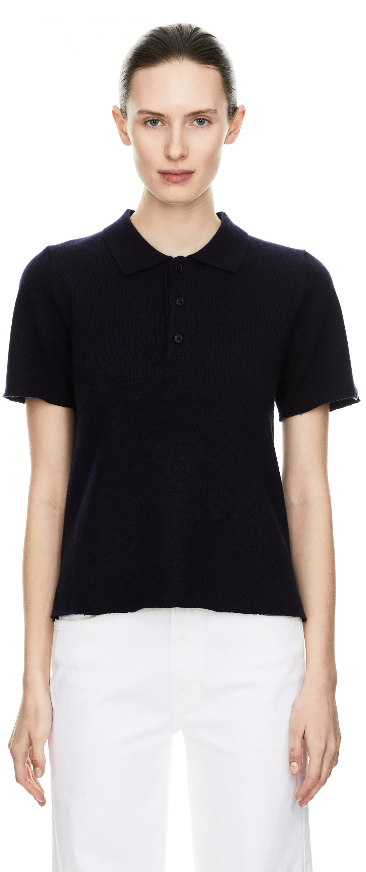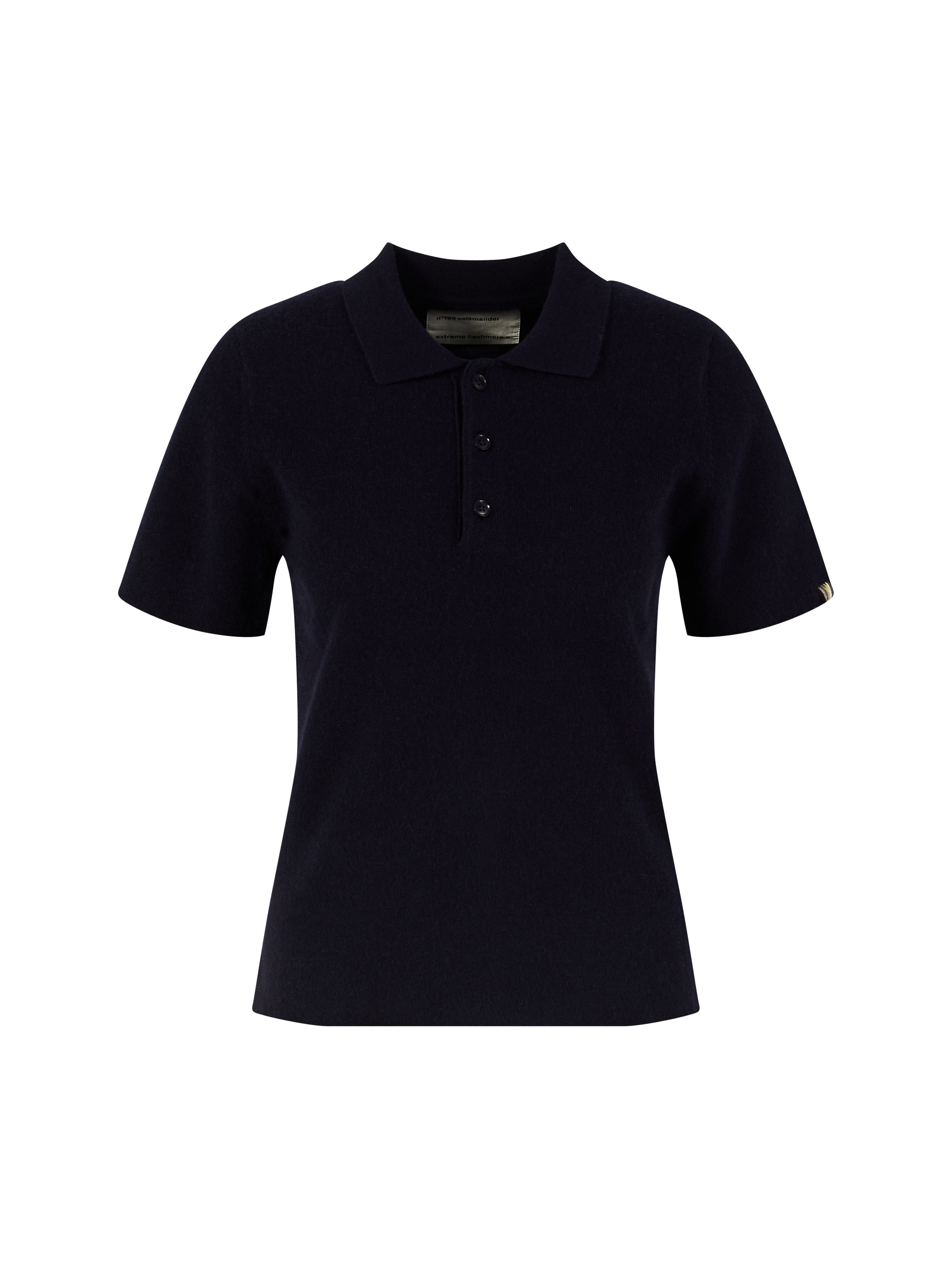 Dieser Pullover 'n°198 Salamander' in Marineblau von extreme cashmere x wurde aus einer Cashmere-Mischung gefertigt und besticht durch die weiche Haptik. Der Polokragen, die gerade Passform und die verkürzte Knopfleiste setzten einen eleganten Akzent.