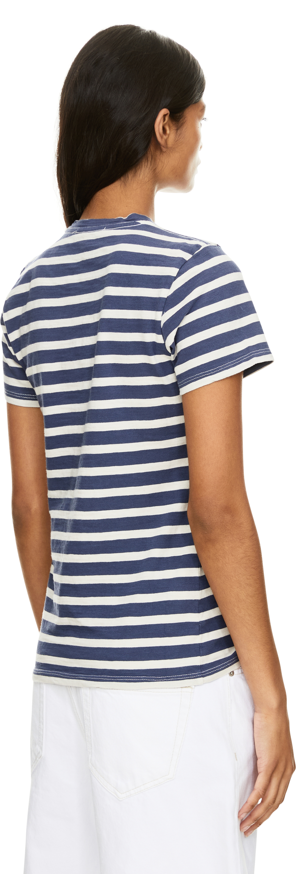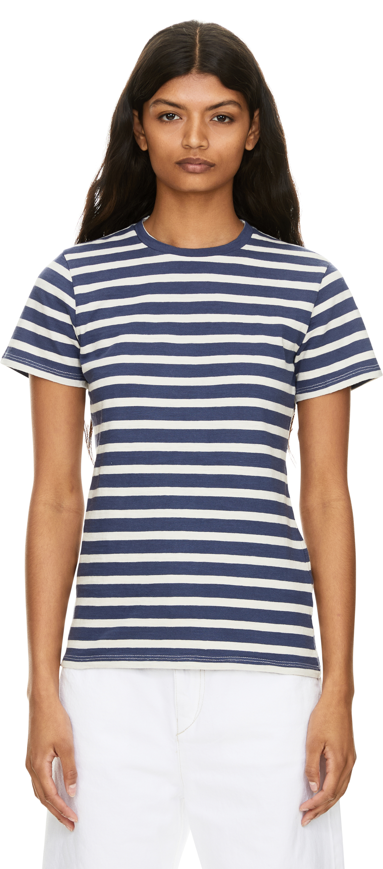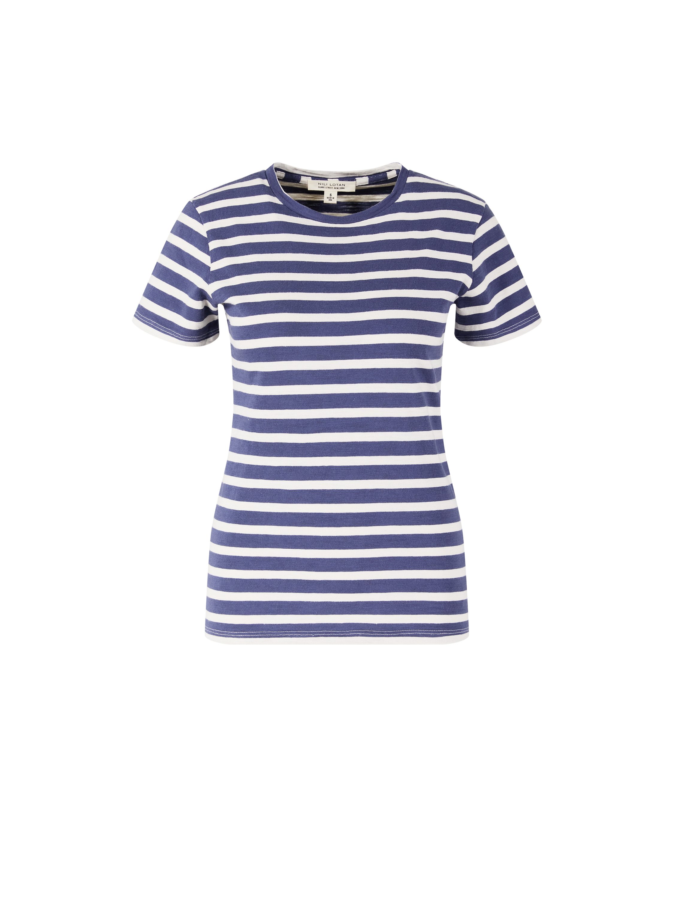Das T-Shirt 'Lana' in Indigo von NILI LOTAN wurde aus Baumwolle gefertigt und besticht durch das klassische Streifendesign. Die gerade Silhouette, der Vintage-Look sowie der Rundhalsausschnitt unterstreichen den zeitlosen Charakter des Designs. Die besonders angenehme Haptik rundet den stilvollen Look harmonisch ab.