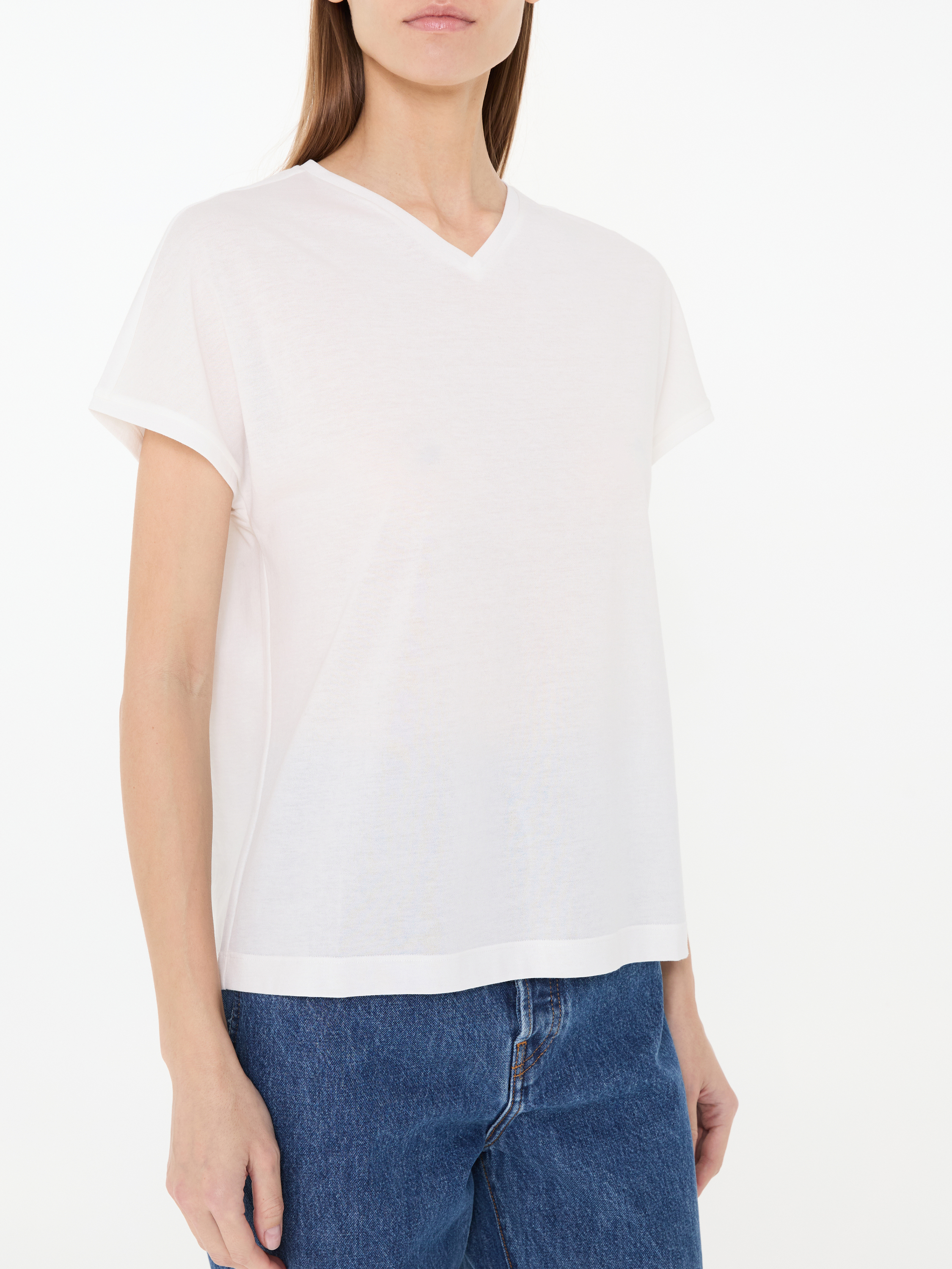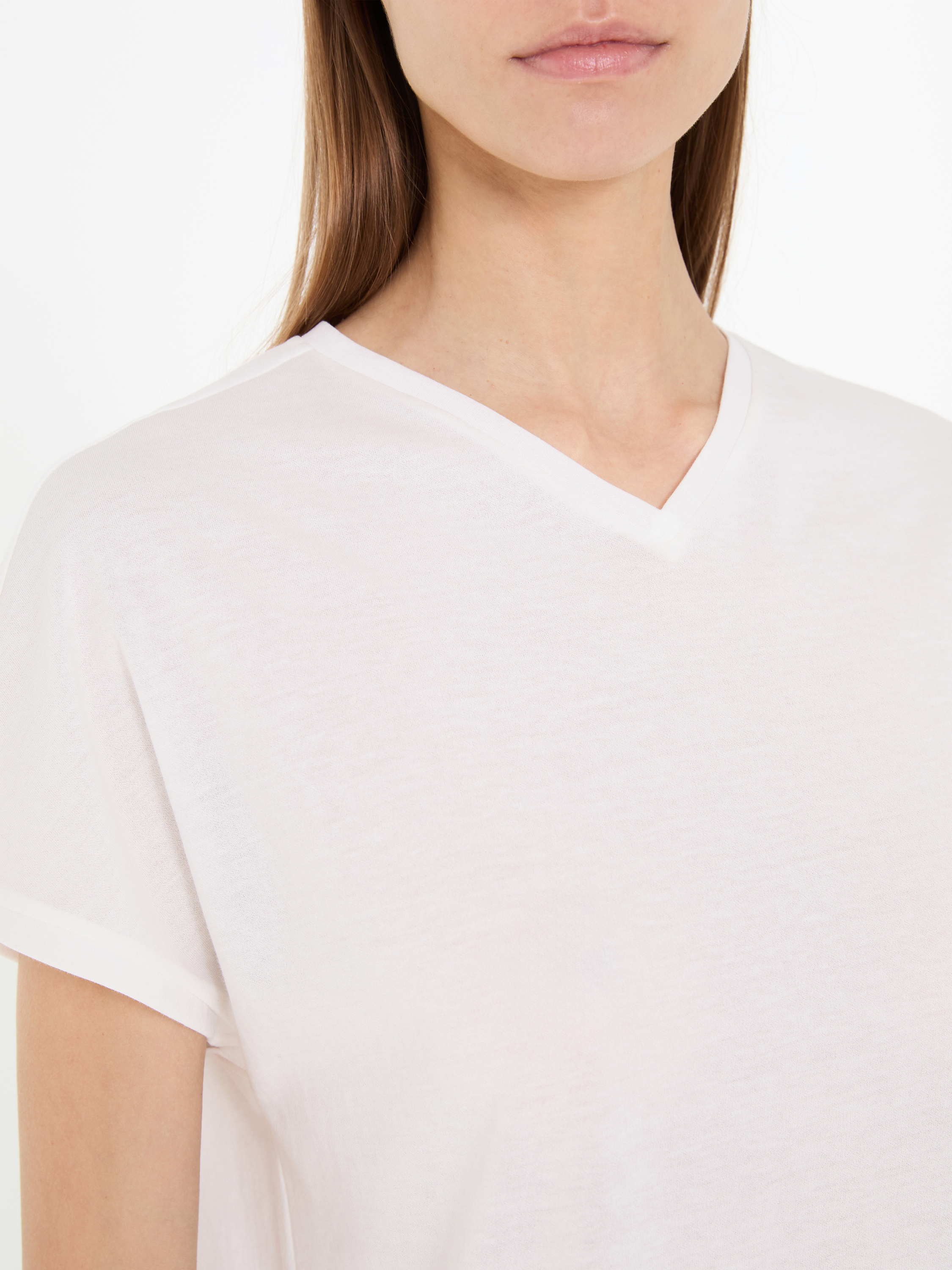 Das T-Shirt 'Devra' in Weiß von Khaite wurde aus weicher Baumwolle gefertigt und kommt mit einem Rundhalsausschnitt. Die klaren Linien, die mit sportlicher Leichtigkeit vereint werden, zeichnen dieses Design aus.