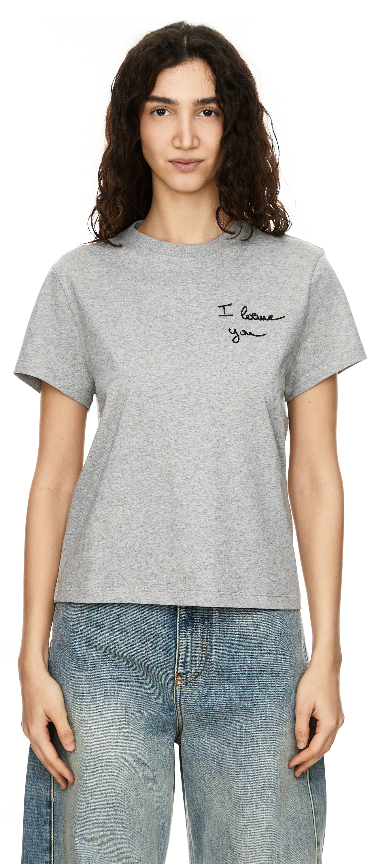 Dieses T-Shirt 'I Loewe You' in Grau von LOEWE wurde aus leichter Baumwolle gefertigt und besticht durch die Stickerei. Die normale Passform, der Rundhalsausschnitt und die Anagram-Stickerei auf der Rückseite verleihen dem Modell einen modernen Touch.