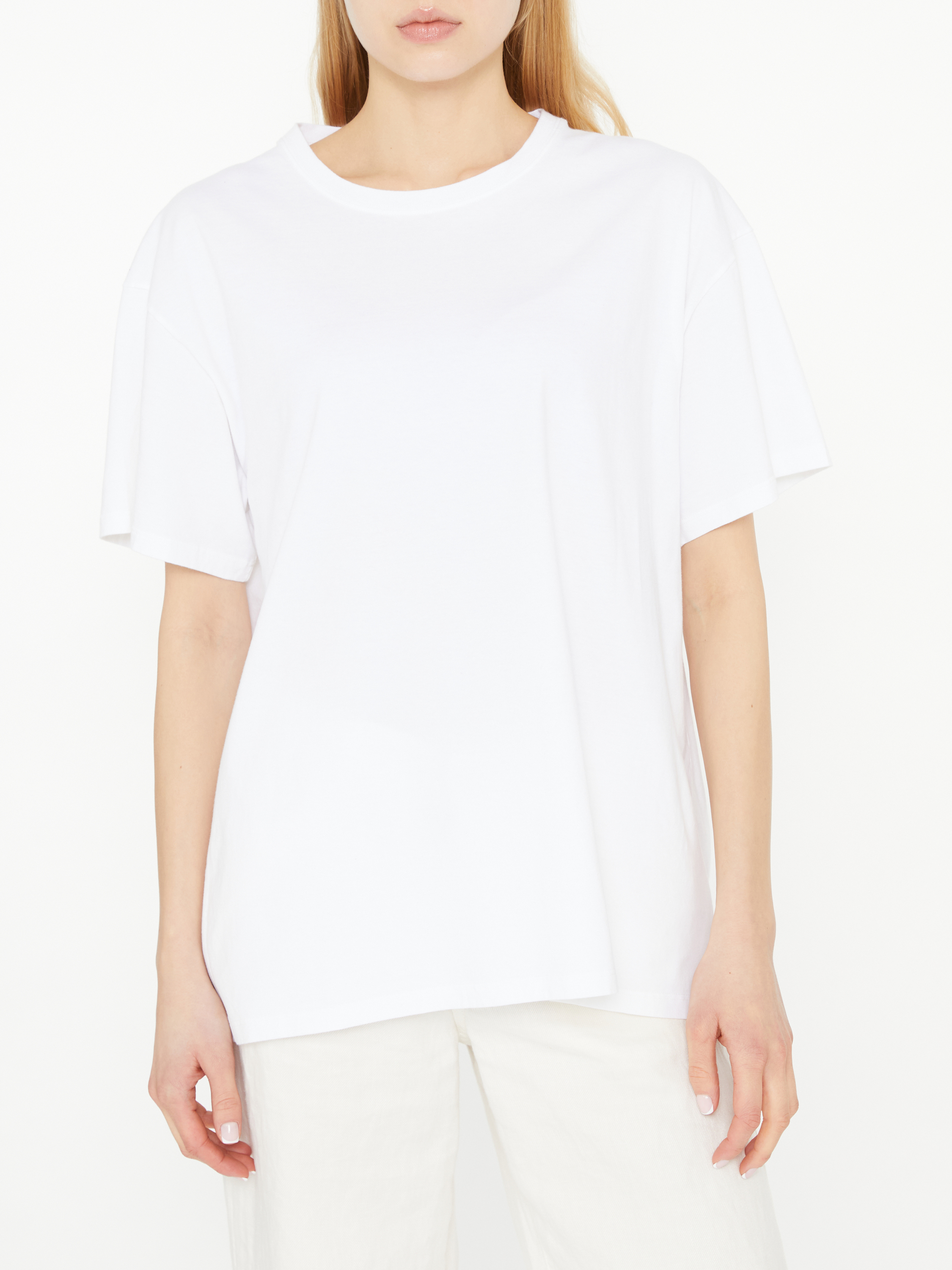 Das T-Shirt 'Nadina' in Weiß von The Row wurde aus hochwertiger Baumwolle gefertigt und besticht durch ein minimalistisches Design. Die gerade Passform und der Rundhalsausschnitt zeichnen dieses zeitlose Modell aus.