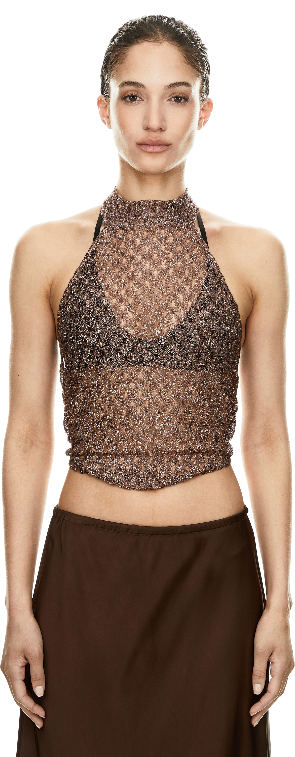 Schimmerndes Top mit Spinnennetz-Motiv Braun