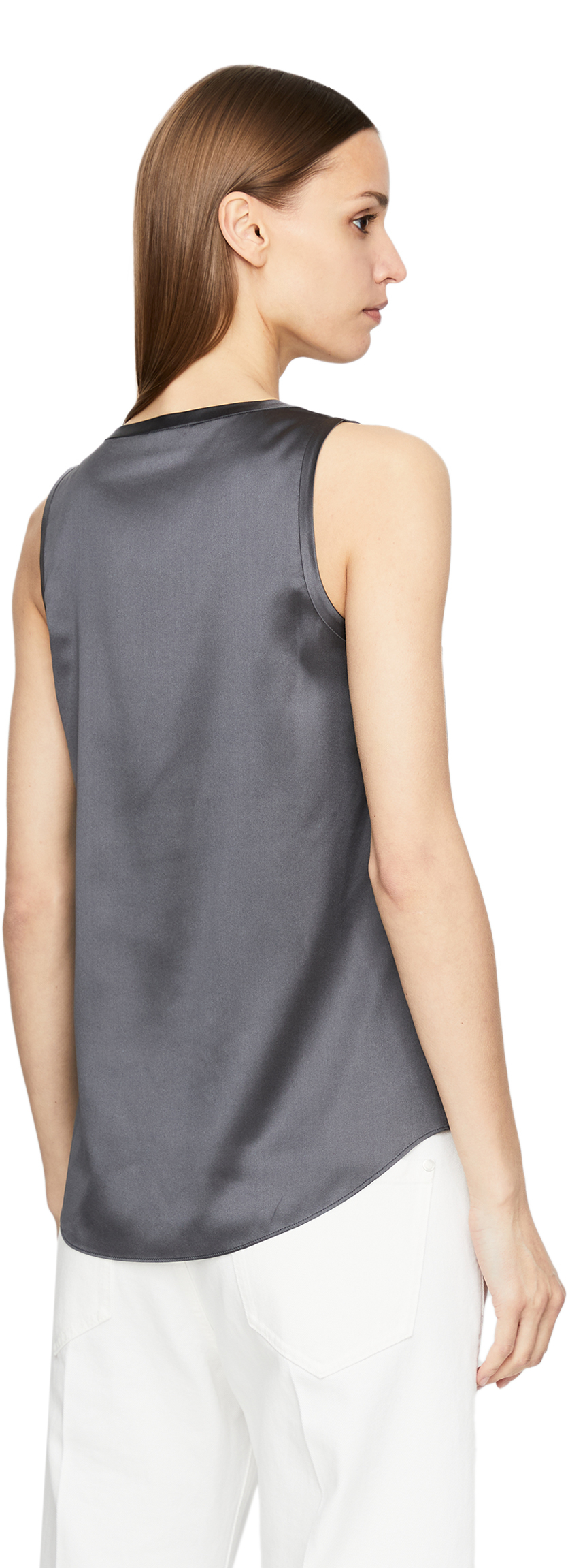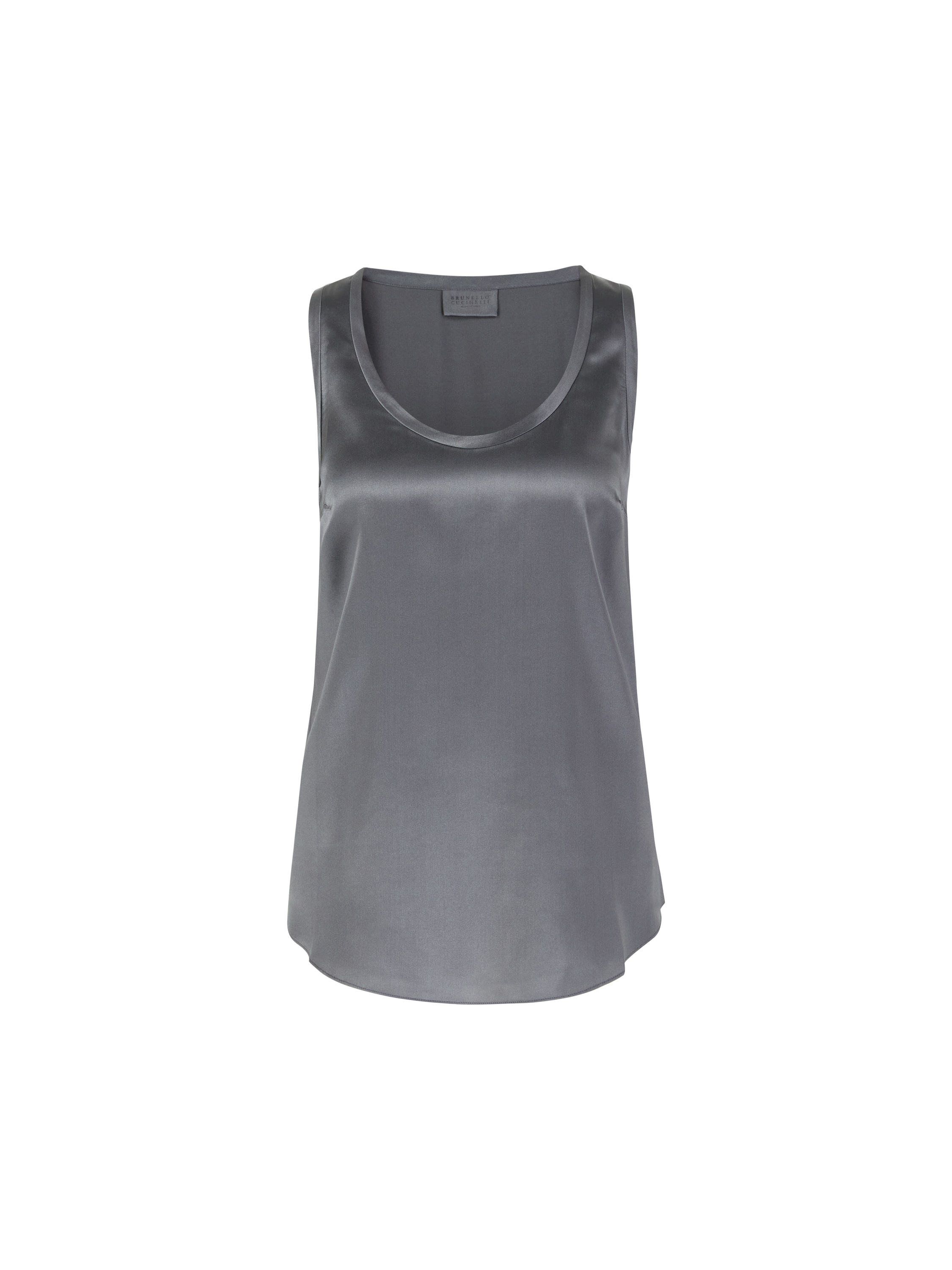 Dieses Top in Dunkelgrau von Brunello Cucinelli wurde aus reiner Seide gefertigt und besticht durch die glänzende Optik. Die schmalen Träger und der weite, runde Ausschnitt zeichnet dieses moderne Modell aus.