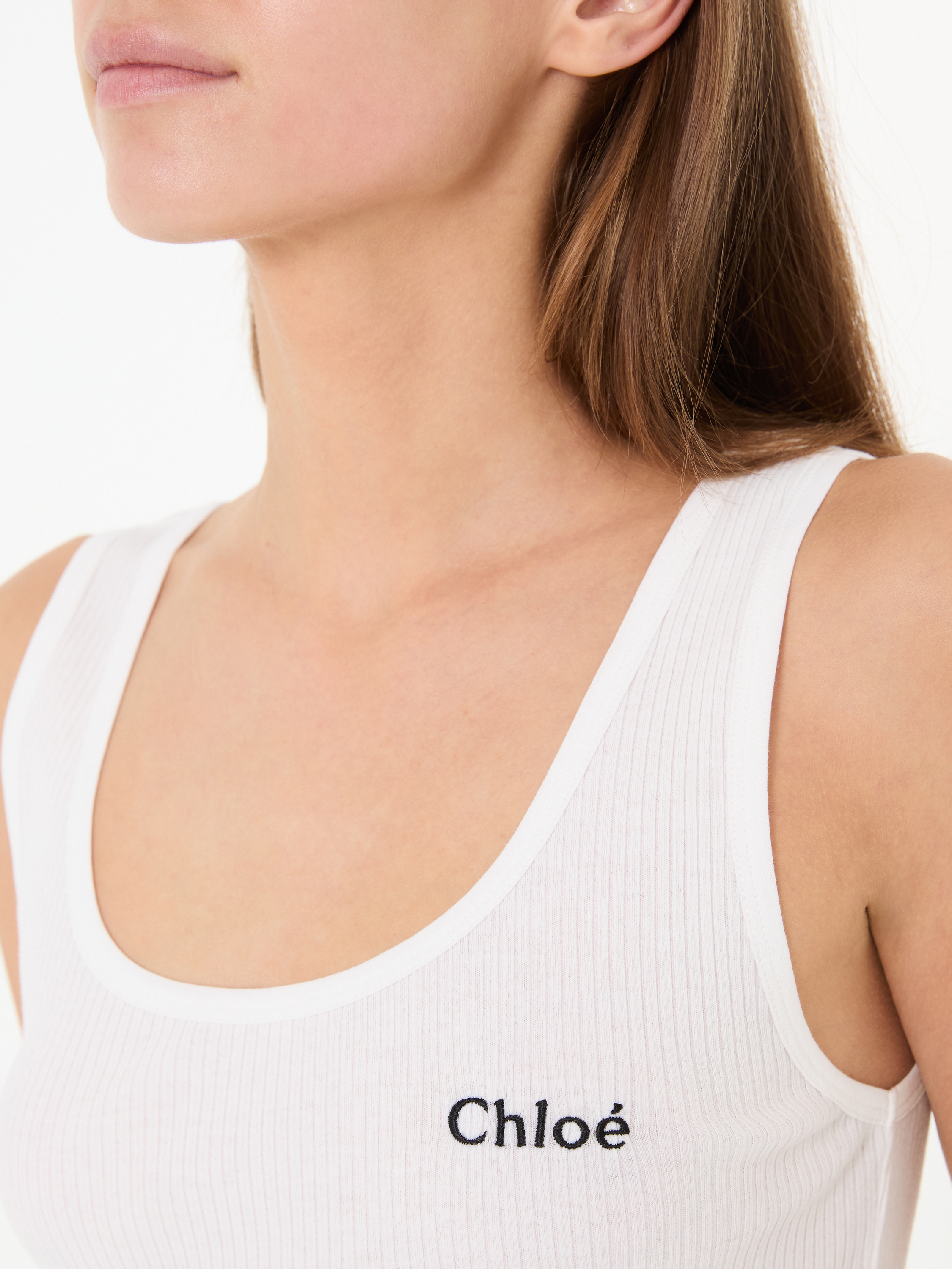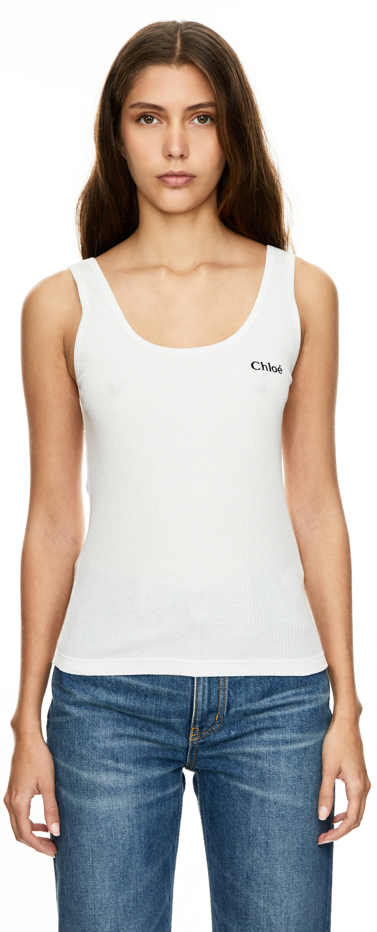 Dieses Tanktop in Weiß von Chloé wurde aus reiner Baumwolle gefertigt und besticht durch das minimalistische Design mit kleinem Logo-Detail auf der Brust. Die schmale Silhouette wird durch die gerippte Optik betont, während der Rundhalsausschnitt das zeitlose Design harmonisch abrundet.