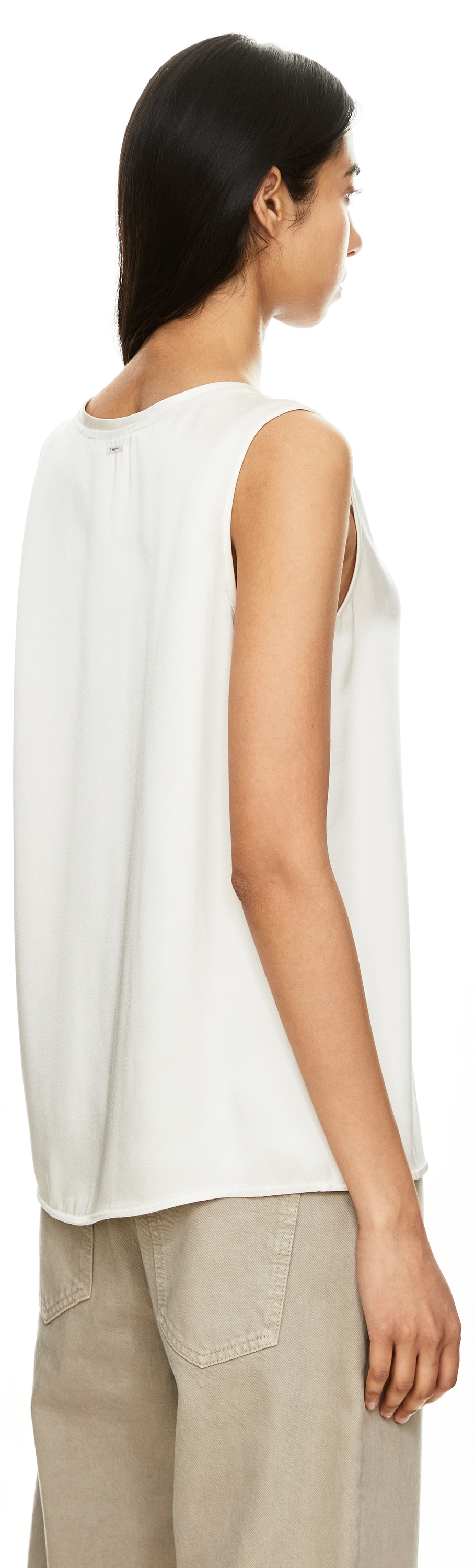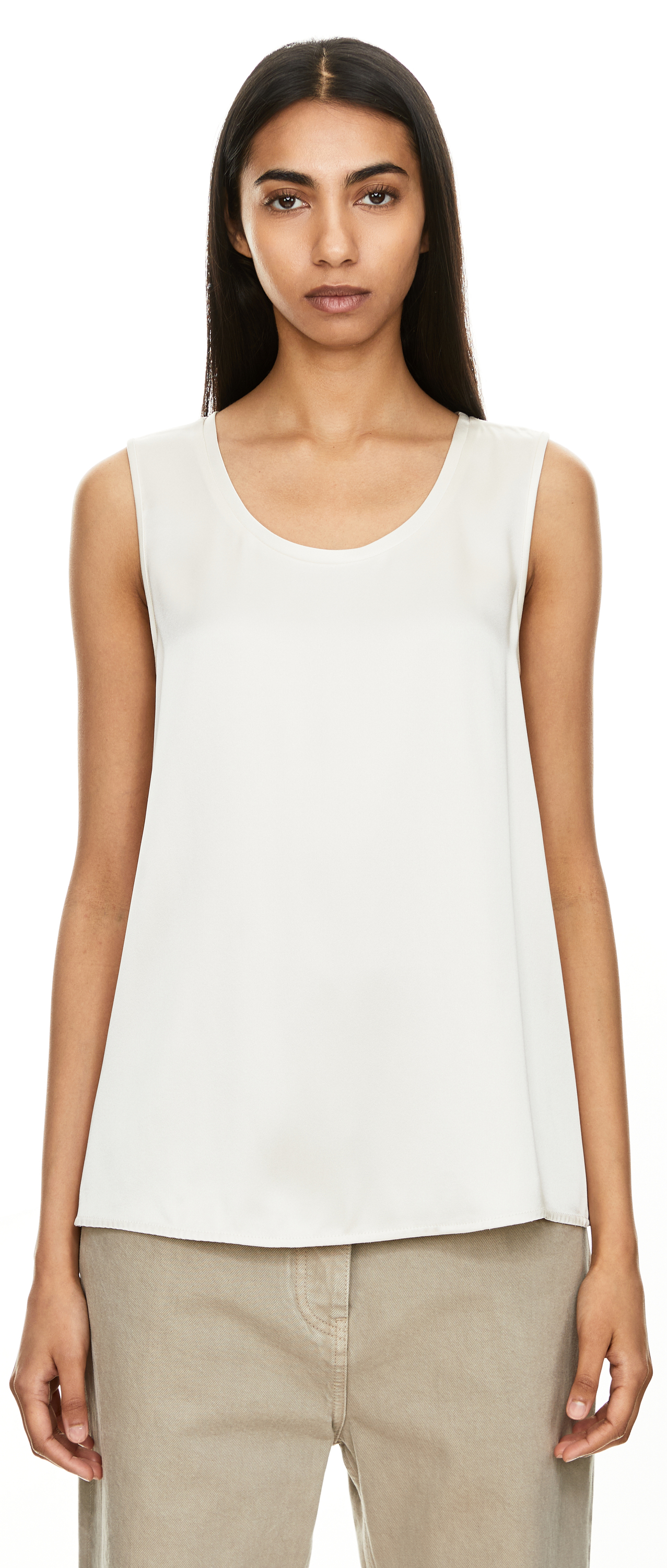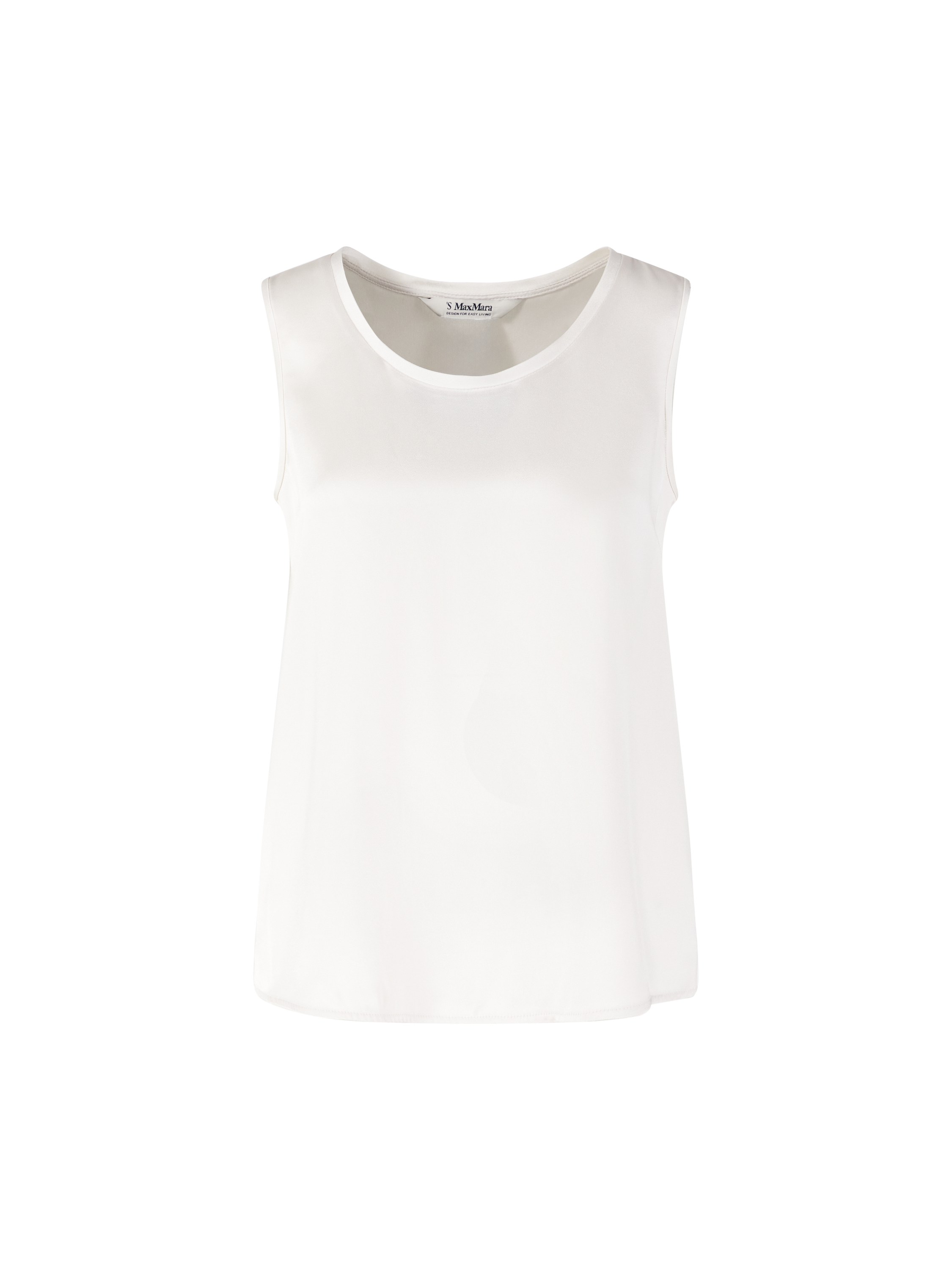 Das Top 'Estri' in Crème von 'S Max Mara wurde aus einer Materialmischung gefertigt und besticht durch die elegante Satin-Optik. Die gerade Silhouette mit U-Ausschnitt verleiht dem Design klare Linien, während die angenehme Haptik für komfortables Tragegefühl sorgt. Ein dezentes Logo-Patch ziert die Rückseite am Nacken und setzt einen feinen Akzent.