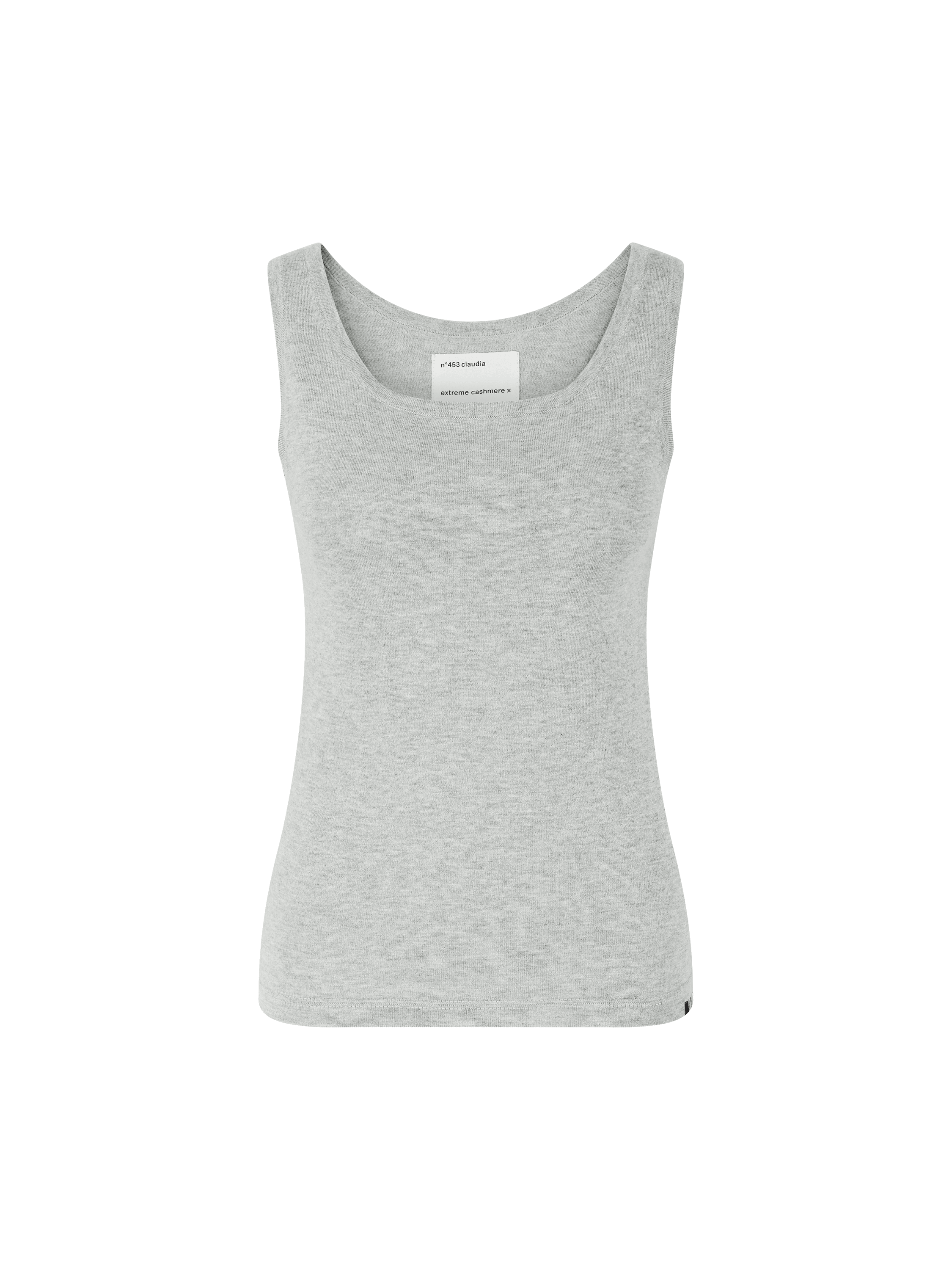Das Top 'n° 453 Claudia' in Grau von extreme cashmere x wurde aus einer Baumwoll-Cashmere-Mischung gefertigt und besticht durch die taillierte Passform. Die weiche Haptik sowie die markentypische Stickerei unten am Saum zeichnen dieses Modell aus.