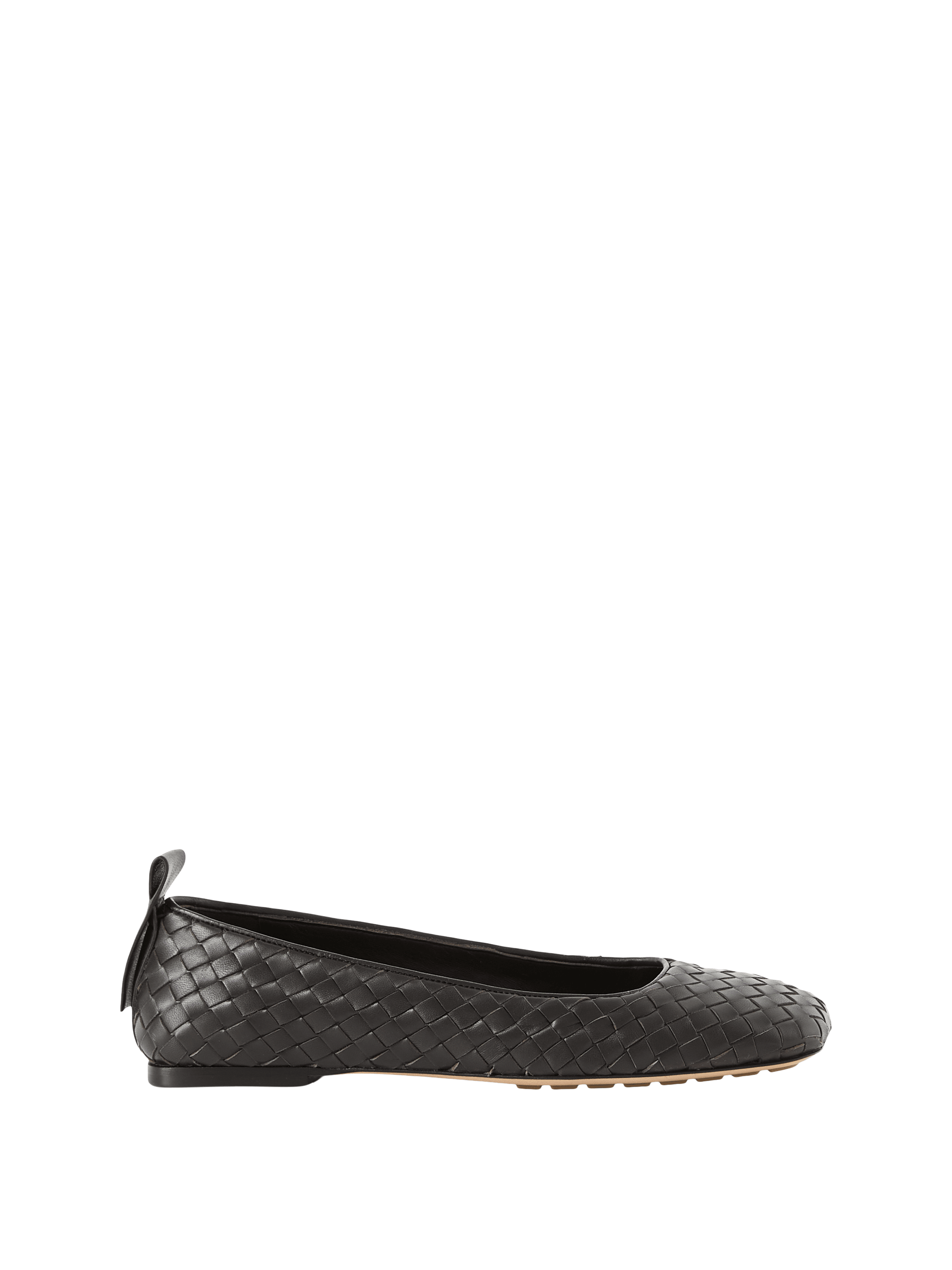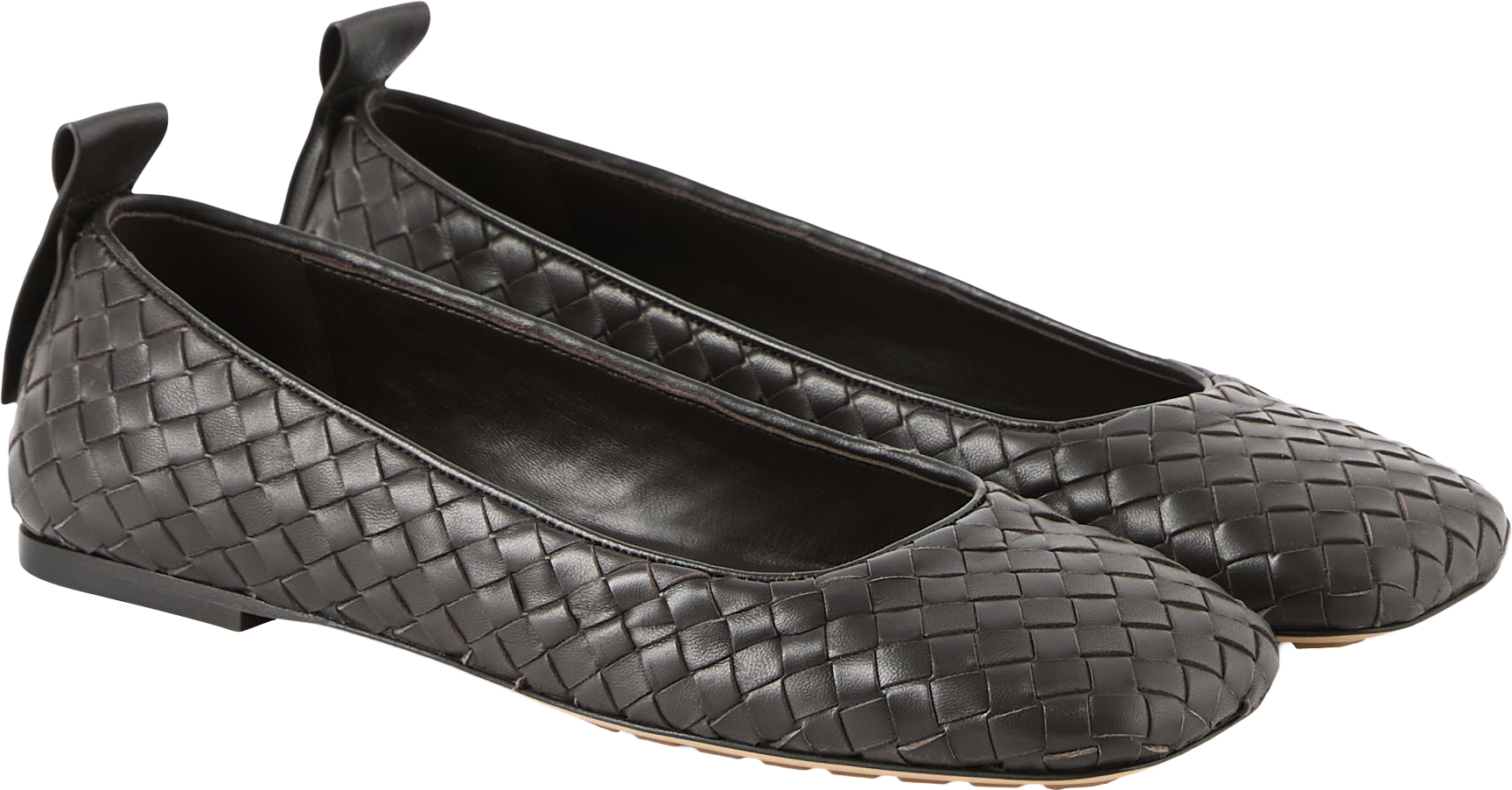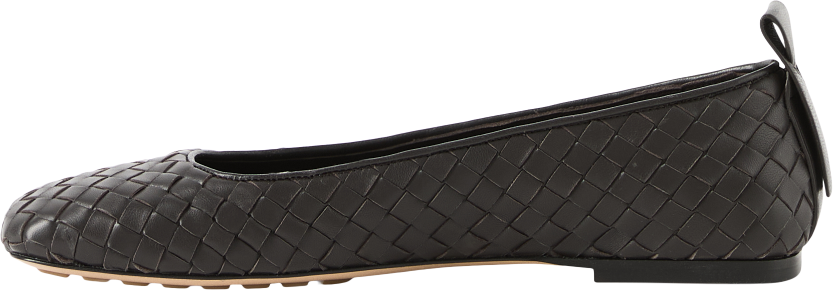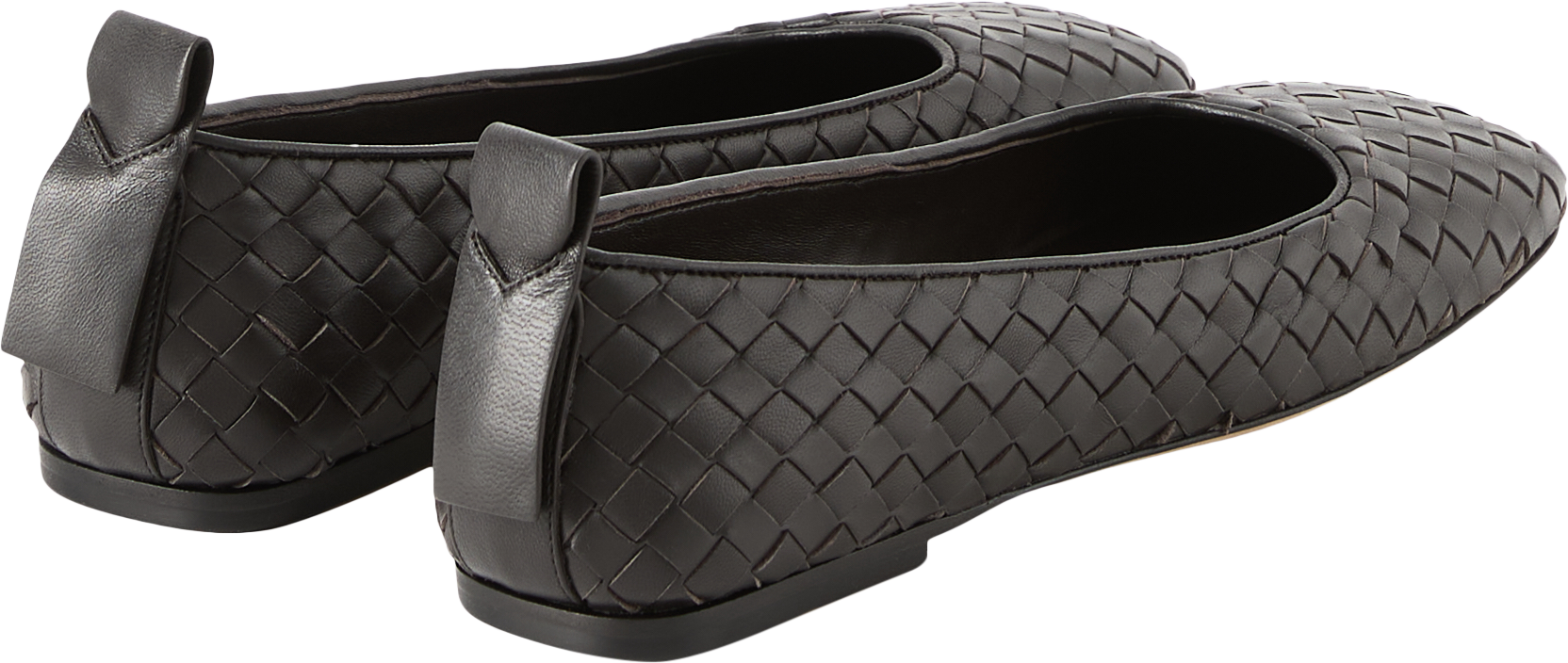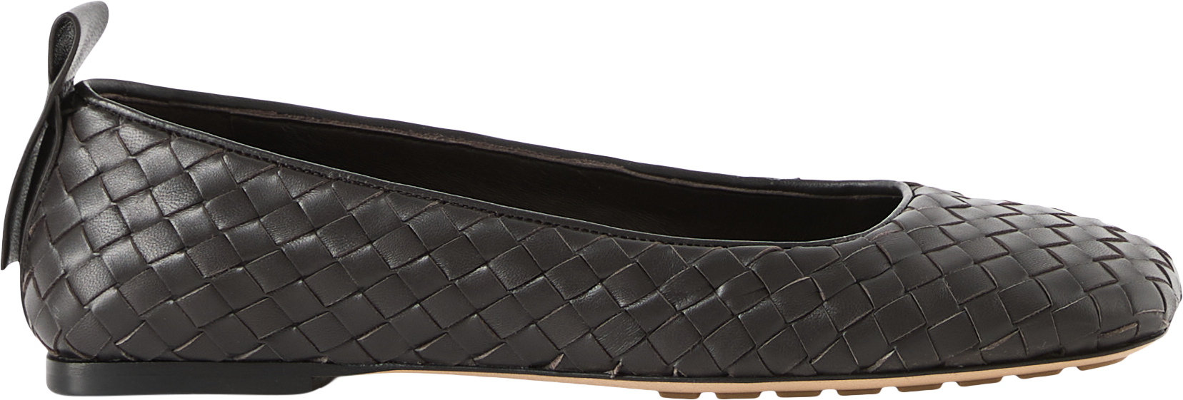 Der Ballerina 'Lucy' in Espresso von Bottega Veneta wurde aus Lammleder gefertigt und besticht durch die markentypische Intrecciato-Flechttechnik. Die quadratische Zehenpartie, die Lederschlaufe an der Rückseite sowie das Futter aus Lammleder runden das Design ab.