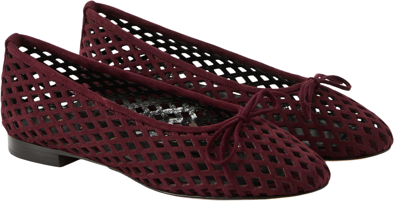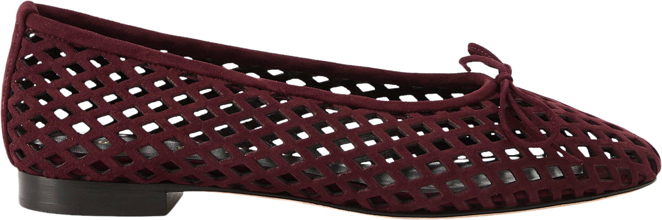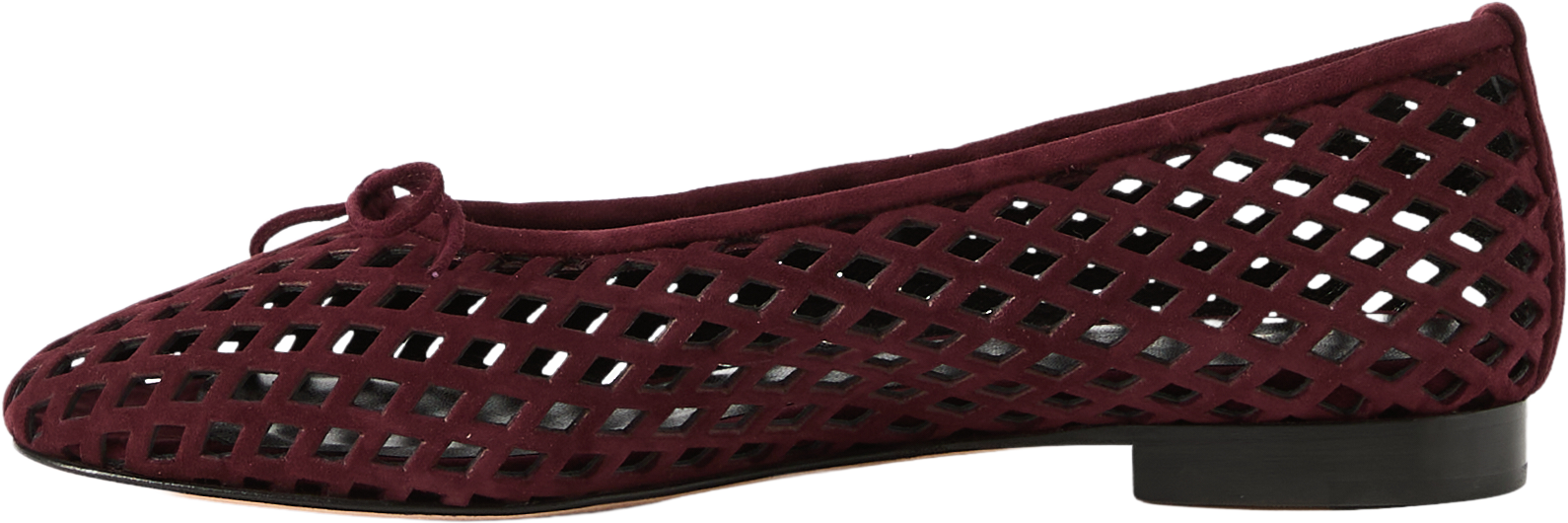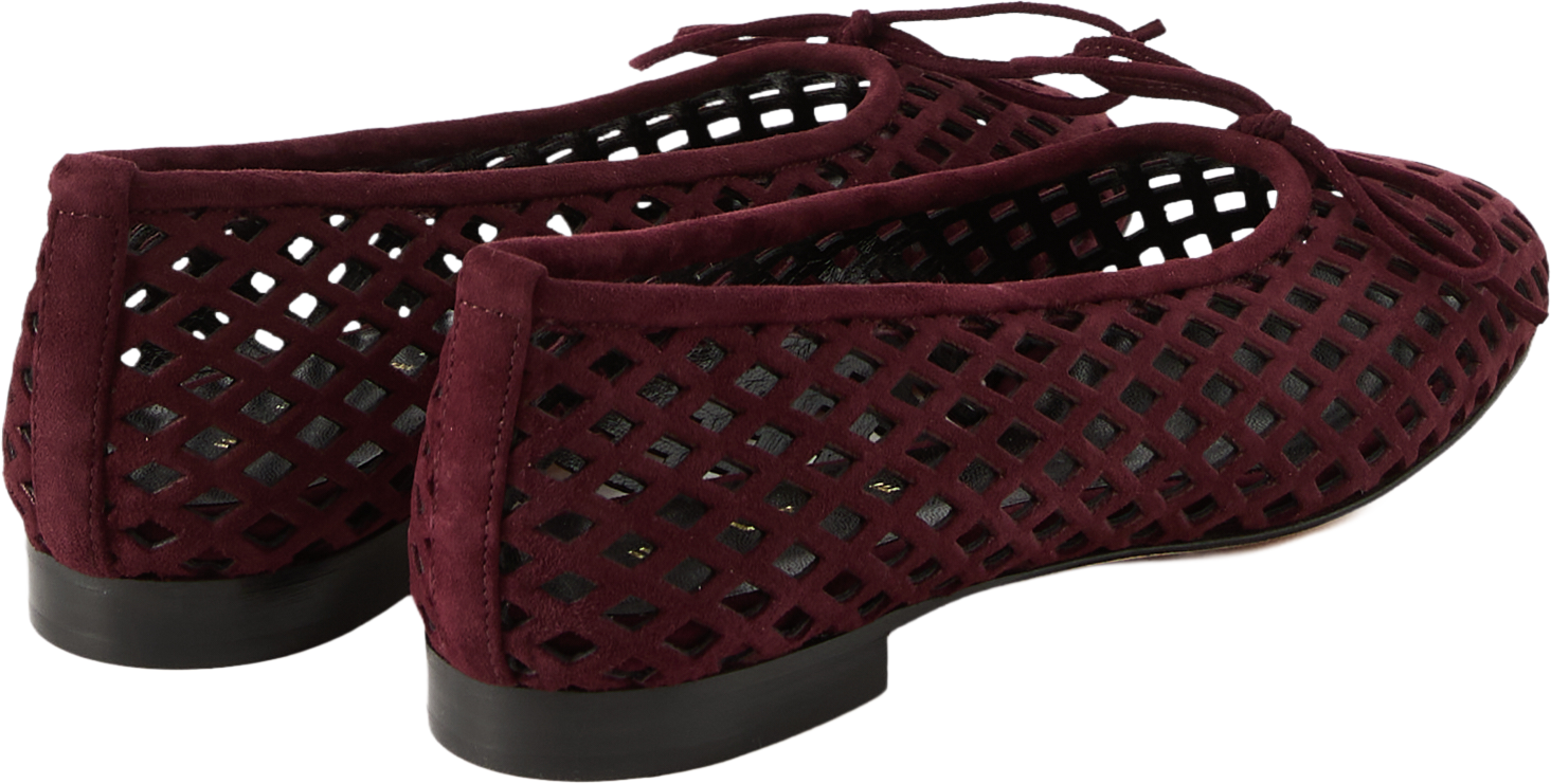 Der Ballerina 'Mesh' in Plum von Unützer wurde aus hochwertigem Veloursleder gefertigt und besticht durch das raffinierte Cut-Out-Design. Die runde Zehenpartie, die filigrane Zierschleife sowie ein dezenter Absatz machen dieses Modell zu einem stilvollen und zugleich komfortablen Schuh.
