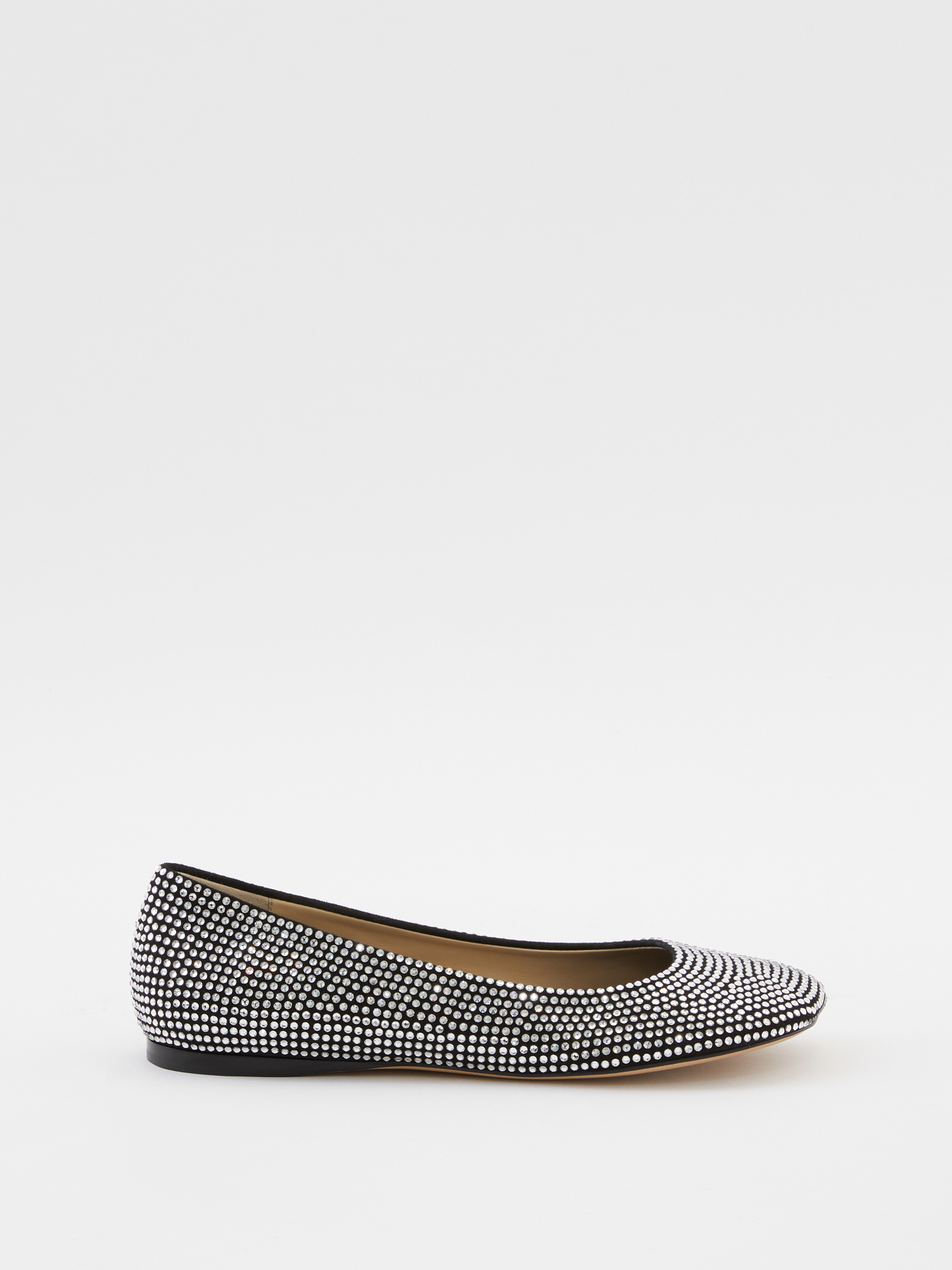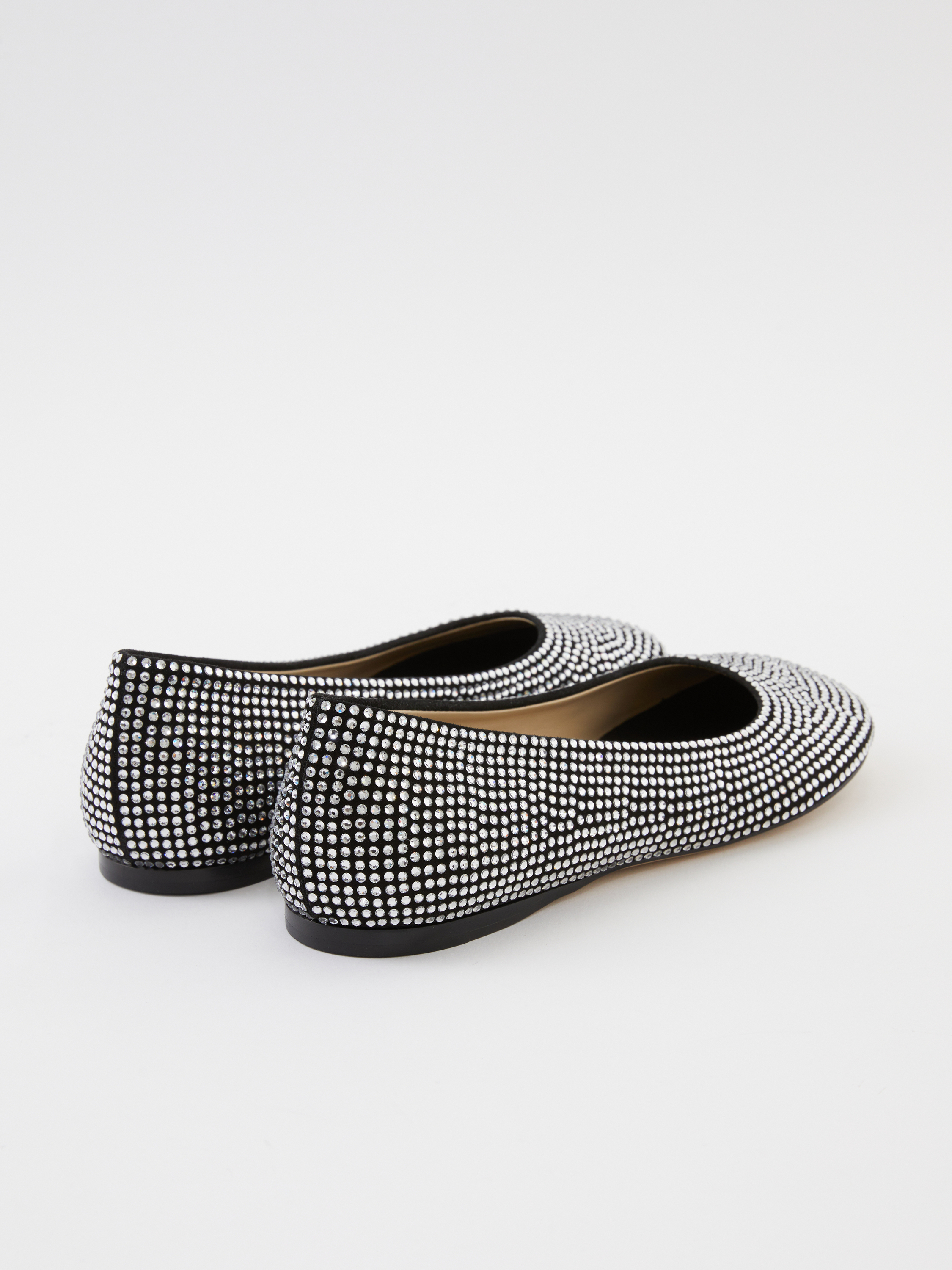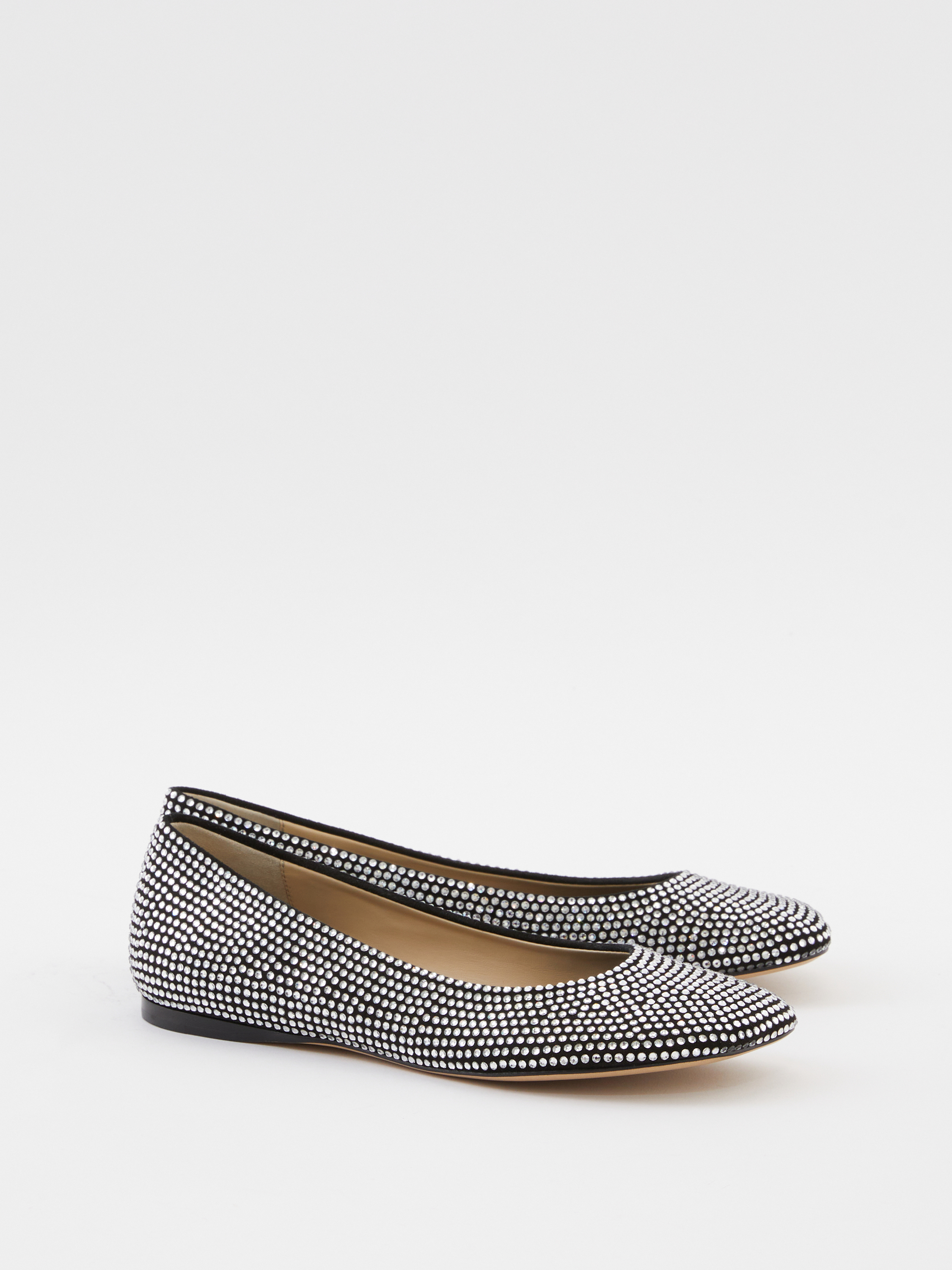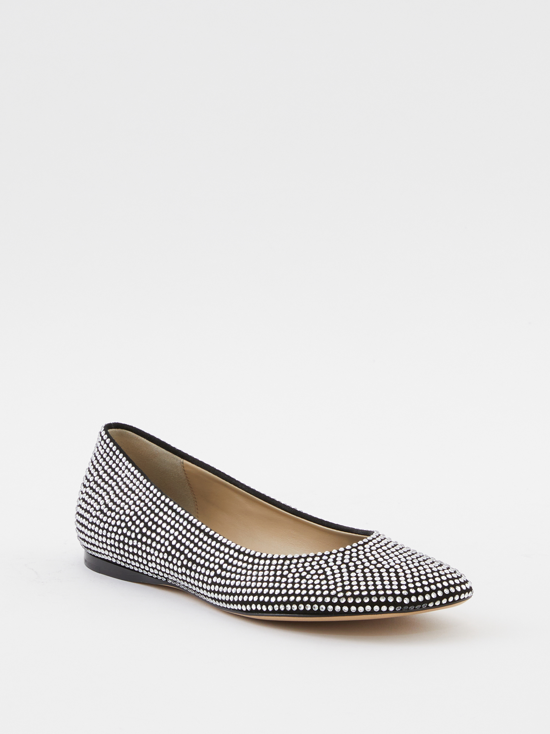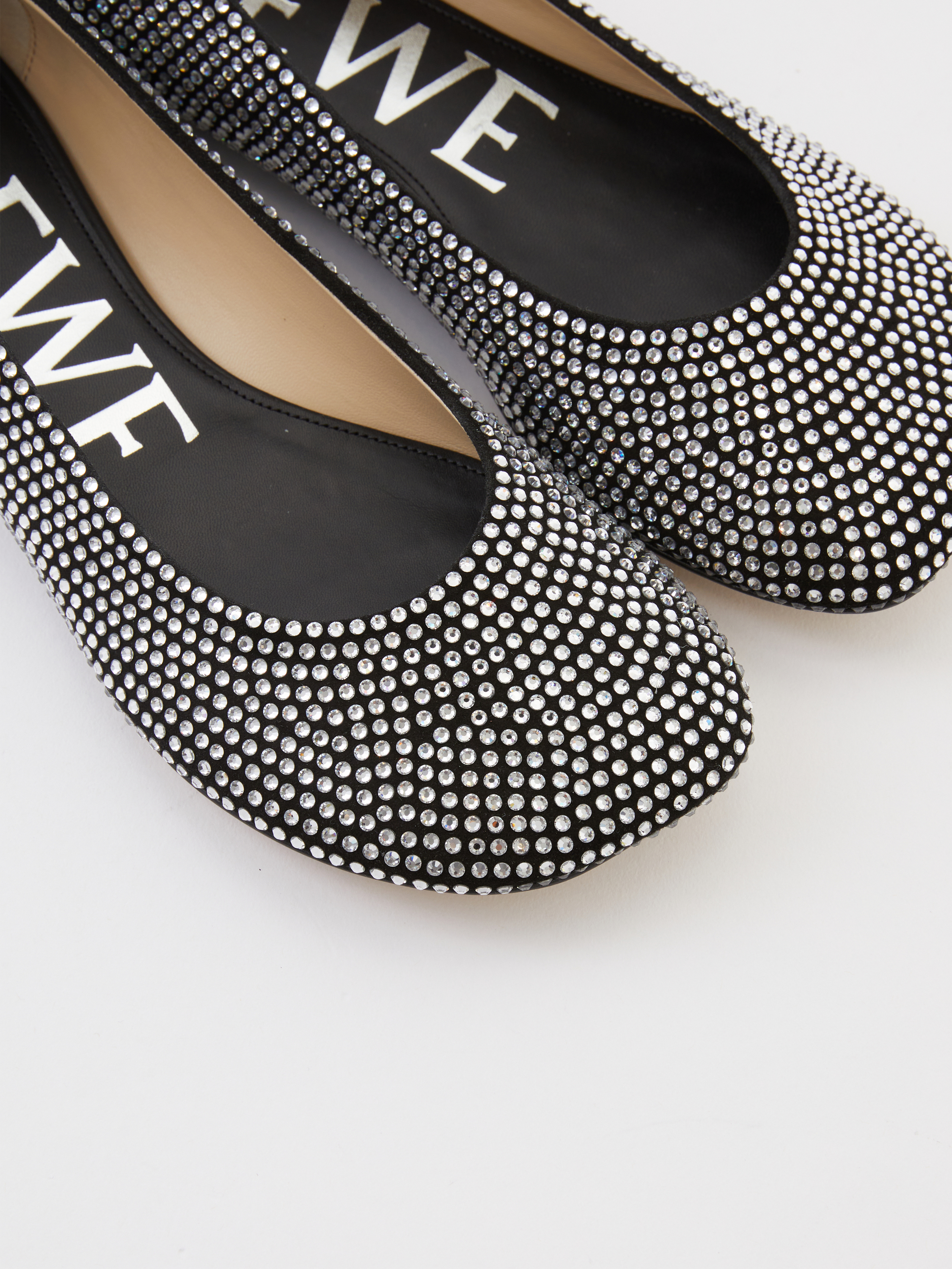 Die Ballerina 'Toy' von LOEWE in Schwarz wurde aus Ziegenveloursleder gefertigt und besticht durch die charakteristische LOEWE-Blütenblatt-Zehenform. Die dekorativen Strasssteinen runden dieses moderne Modell gekonnt ab.